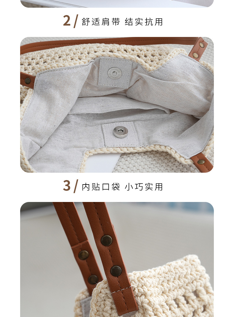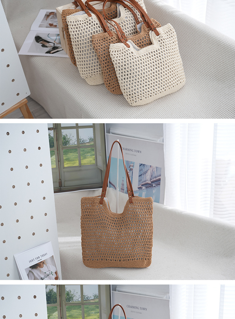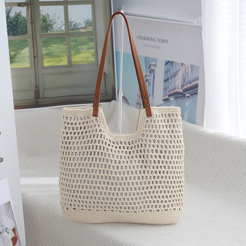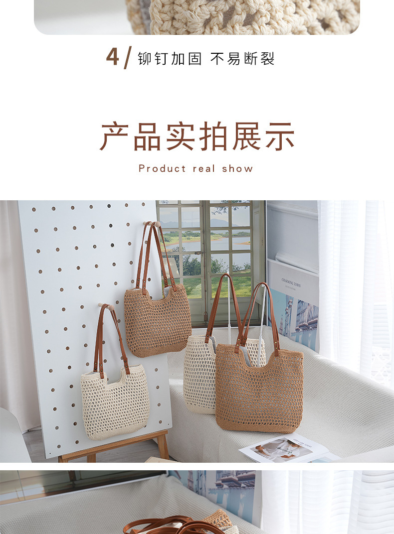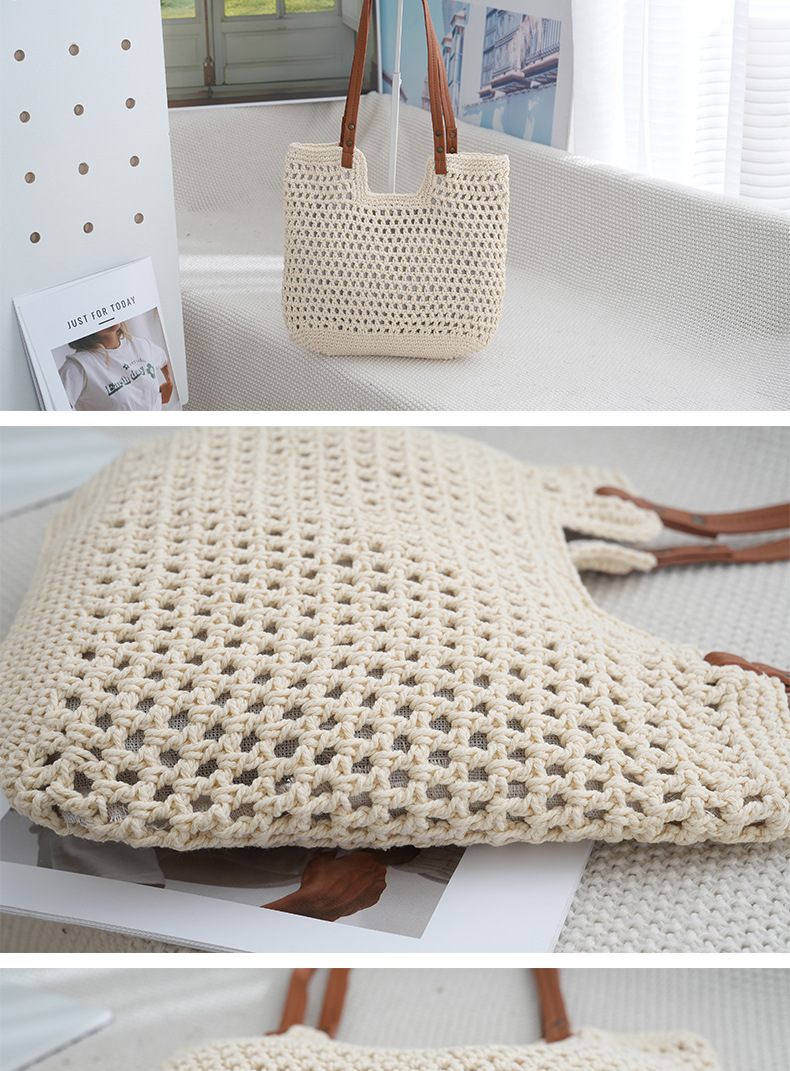 예술적 휴일 스타일 할로우 코튼 코드 짠 가방 해변 휴일 게으른 스타일 짠 가방 대용량 어깨 가방