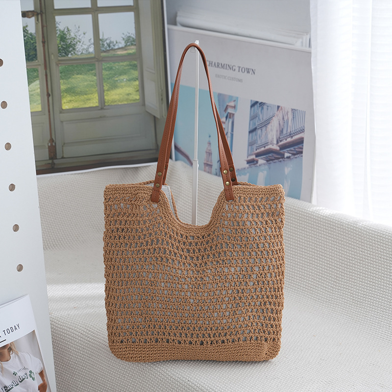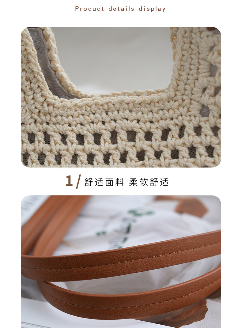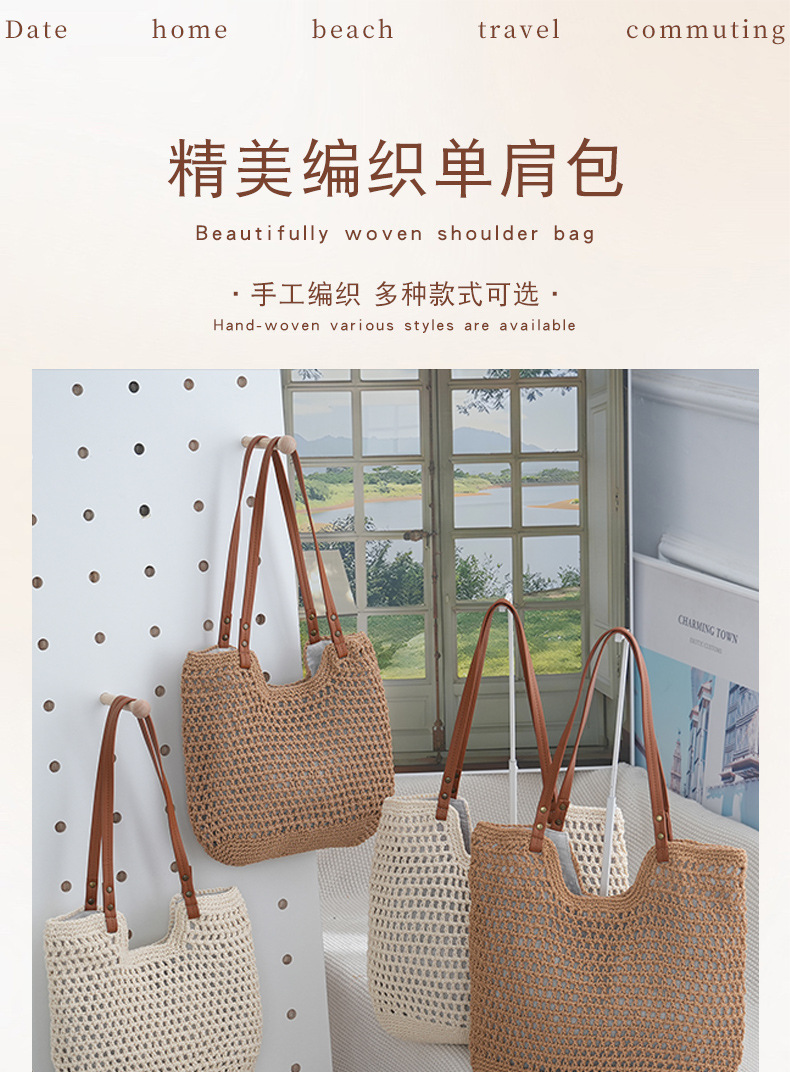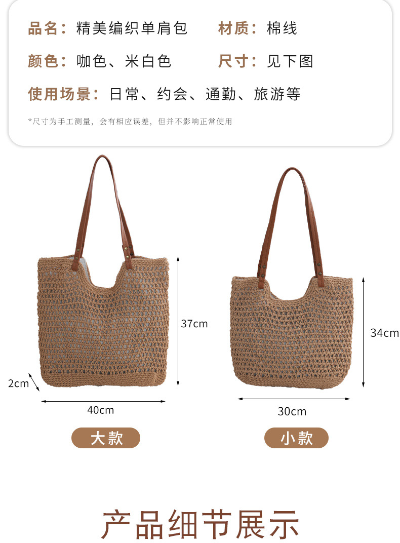 예술적 휴일 스타일 할로우 코튼 코드 짠 가방 해변 휴일 게으른 스타일 짠 가방 대용량 어깨 가방스토어 가기