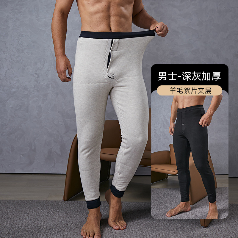 양모 보온 바지 남성용 캐시미어 바지 플러스 벨벳 고탄력 보온 바지 동북 방한 중노년 겨울용 베이스 코튼 바지