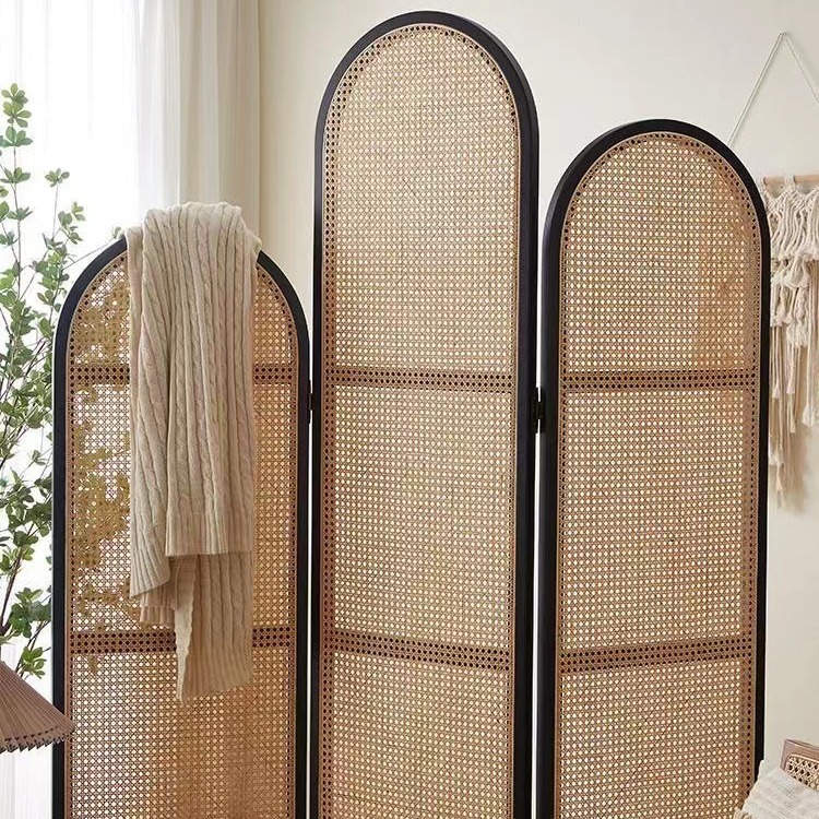 새로운 단단한 나무 등나무 스크린 홈 침실 보호소 장식 파티션 바닥 입구 접이식 스크린 장식