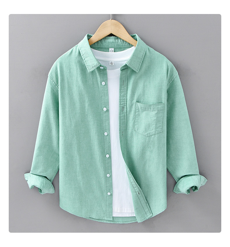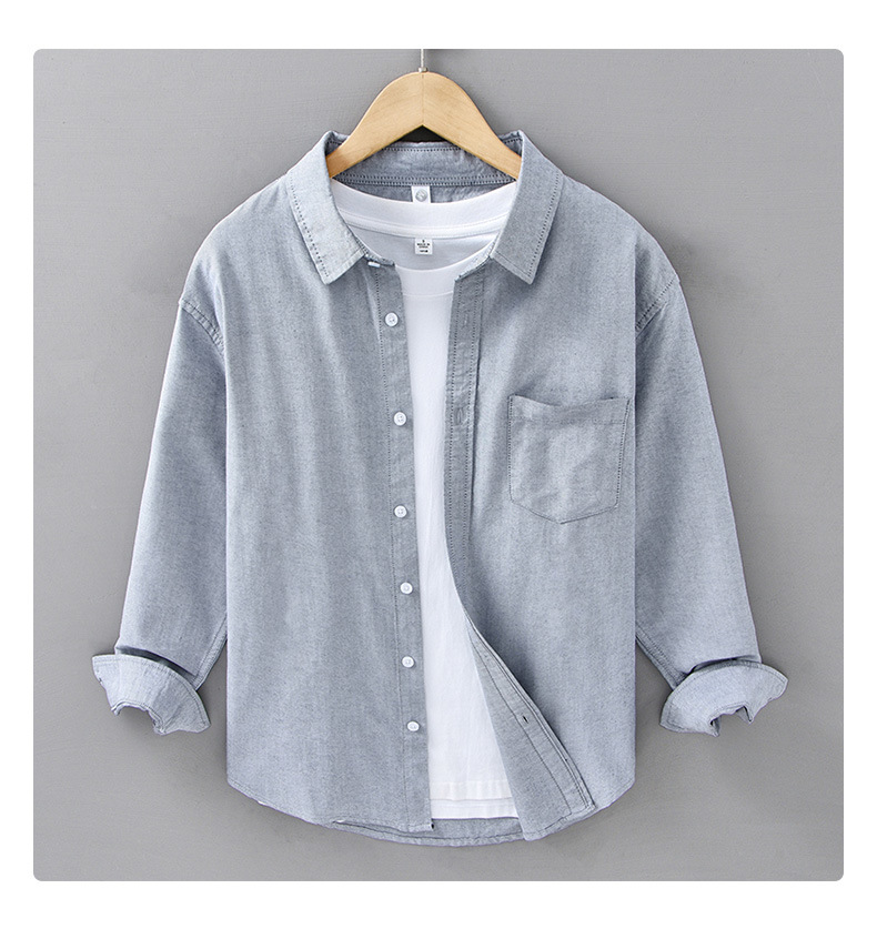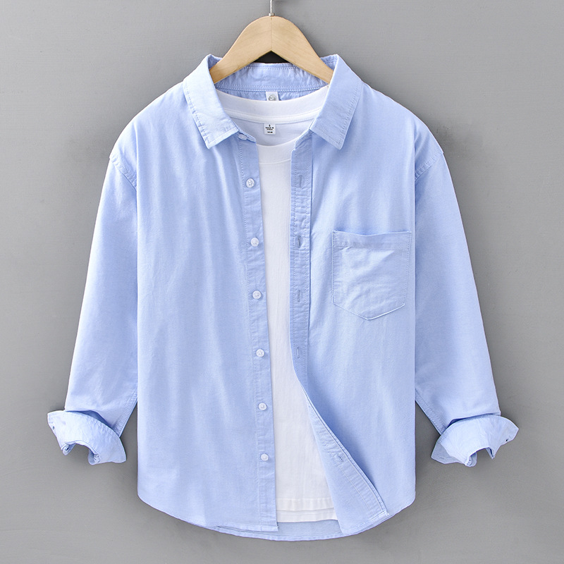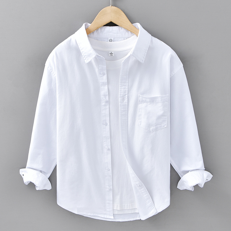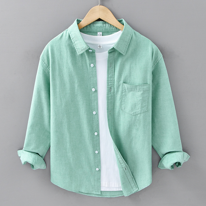 봄과 가을 새로운 일본 옥스포드 천 셔츠 남자의 씻은 순면 예술적 캐주얼 느슨한 긴팔 남자의 680 셔츠