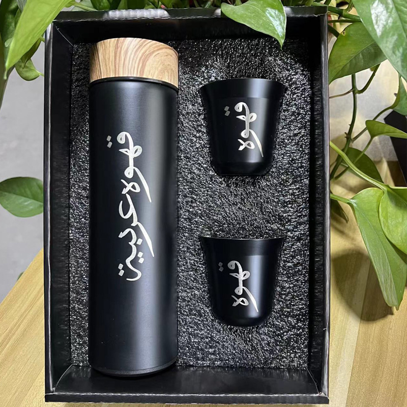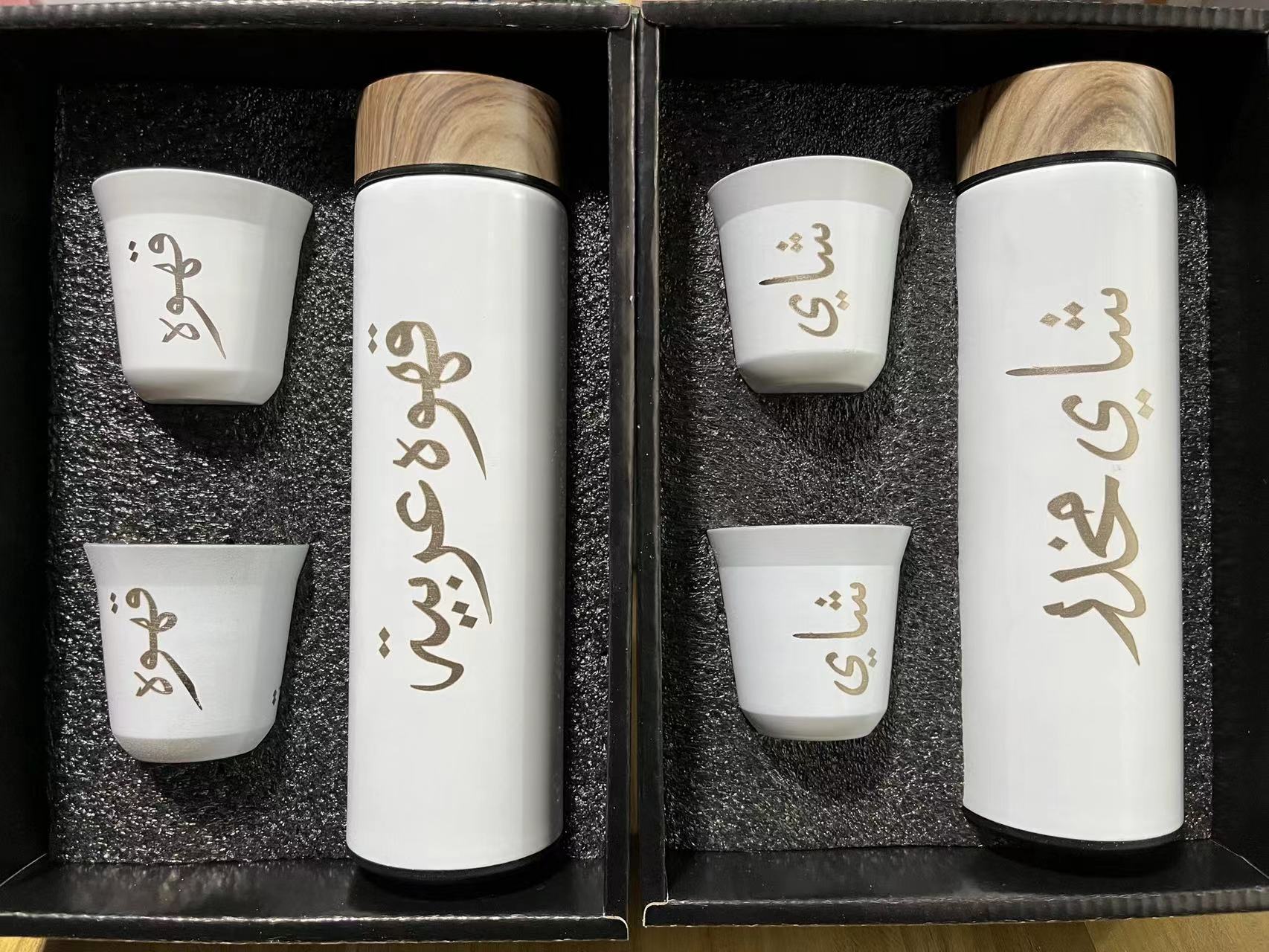 外贸中东热销阿拉伯文304不锈钢双层保温杯礼盒套装礼品杯子