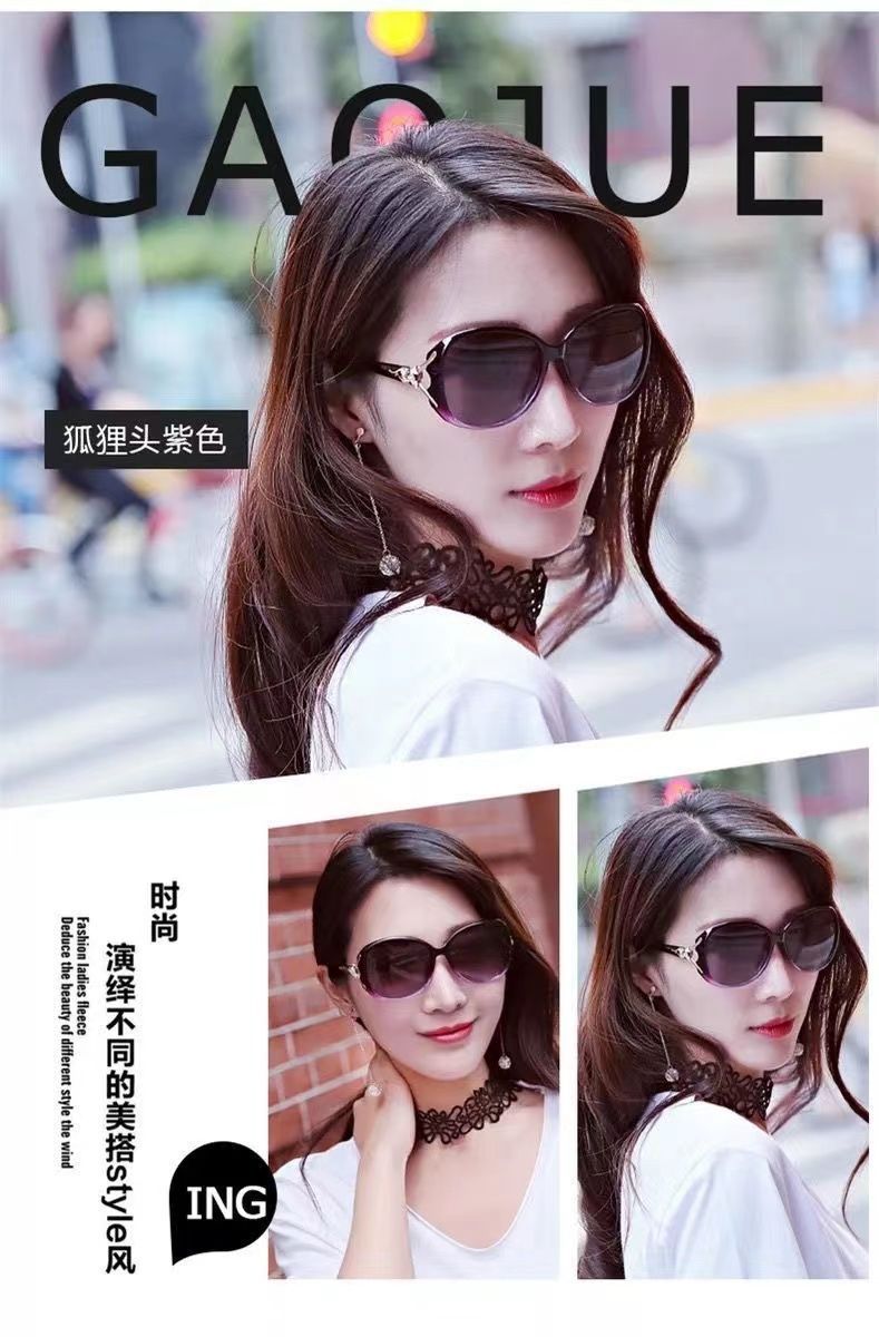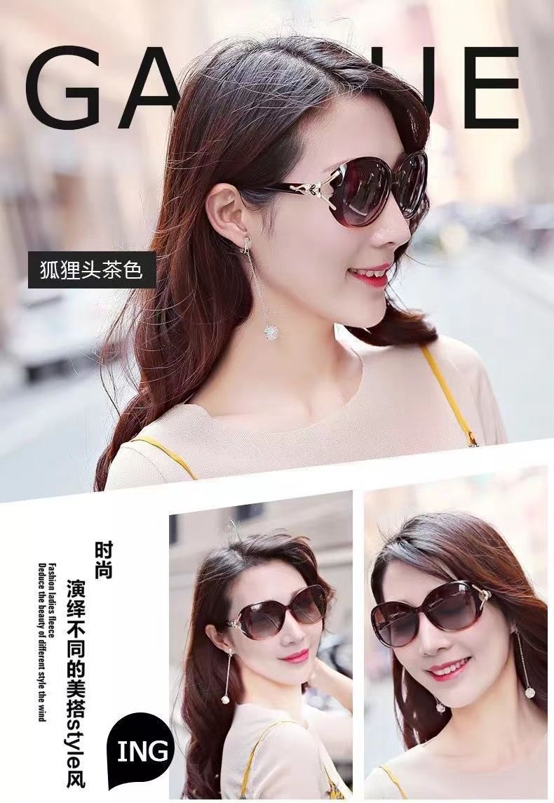 여우 머리 선글라스 자외선 차단 여성용 안경 여성 스타 선글라스 둥근 얼굴 선글라스 여성용 자외선 차단