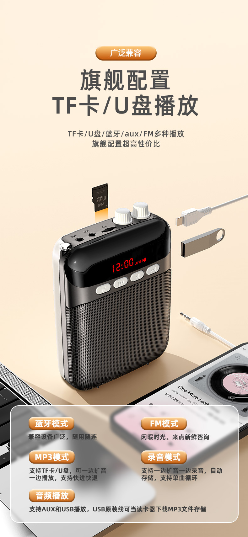 S26 작은 꿀벌 휴대용 확성기 블루투스 카드 삽입형 U디스크 녹음 교사 가이드 교육용 확성기 플레이어스토어 가기