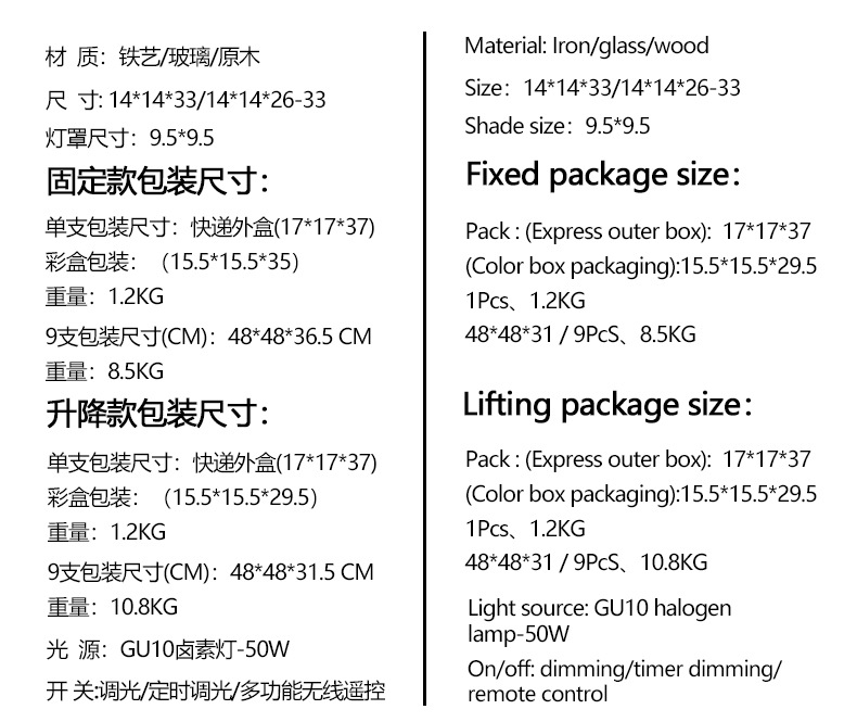 • 샴페인 커버 + 통나무 베이스 + 리프팅 스타일 + 조광기 스위치 + 전구 2개