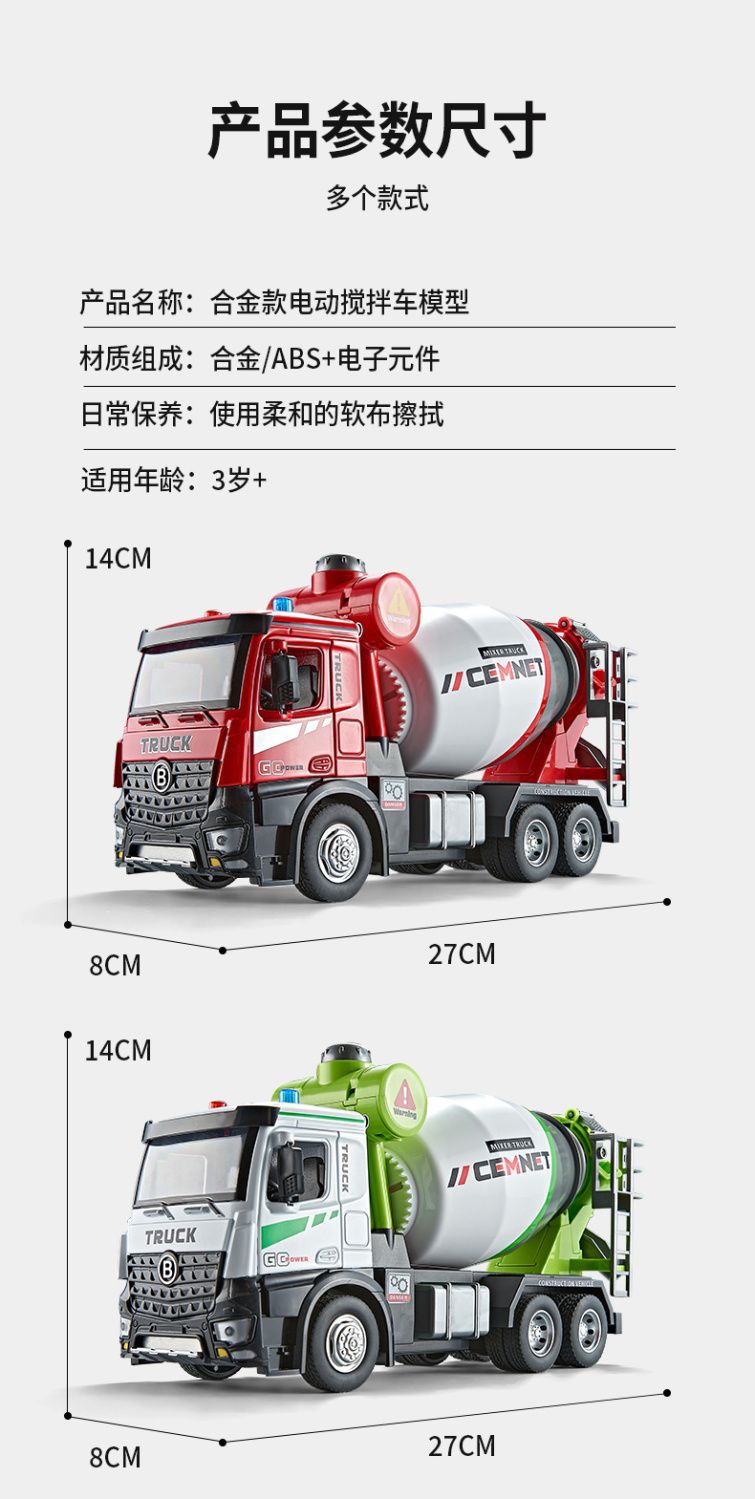 전기 대형 합금 믹서 장난감 어린이 대형 토양 엔지니어링 트럭 소년 시뮬레이션 자동차 모델 도매스토어 가기