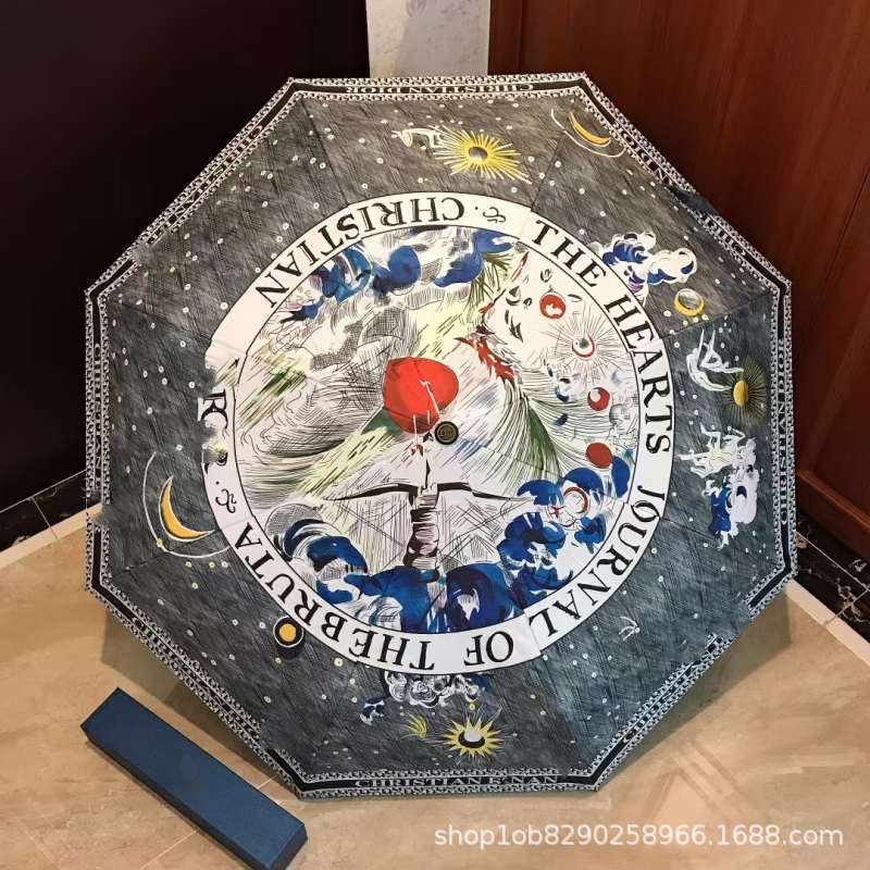 차오 저우 브랜드 D 홈 이중 목적 완전 자동 우산 클래식 풍경 그림 검은 고무 자외선 차양 선물 태양 우산스토어 가기