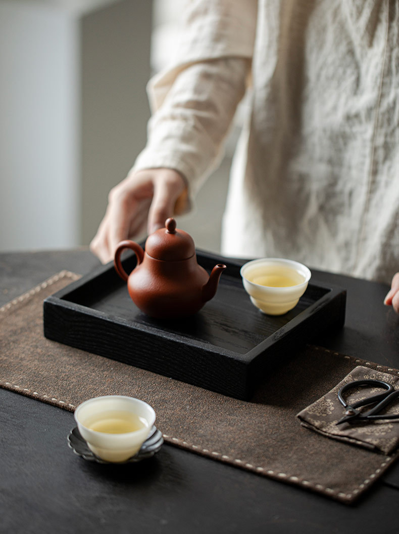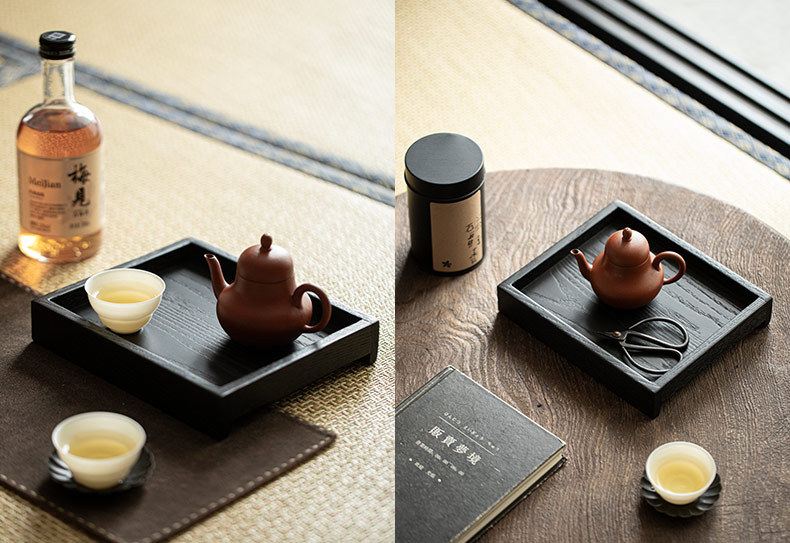 잔디 사원 화이트 왁스 숯불 검은 냄비 단단한 나무 작은 차 테이블 일본 스타일 부드러운 공기 건조 냄비 차 트레이 차 바다스토어 가기