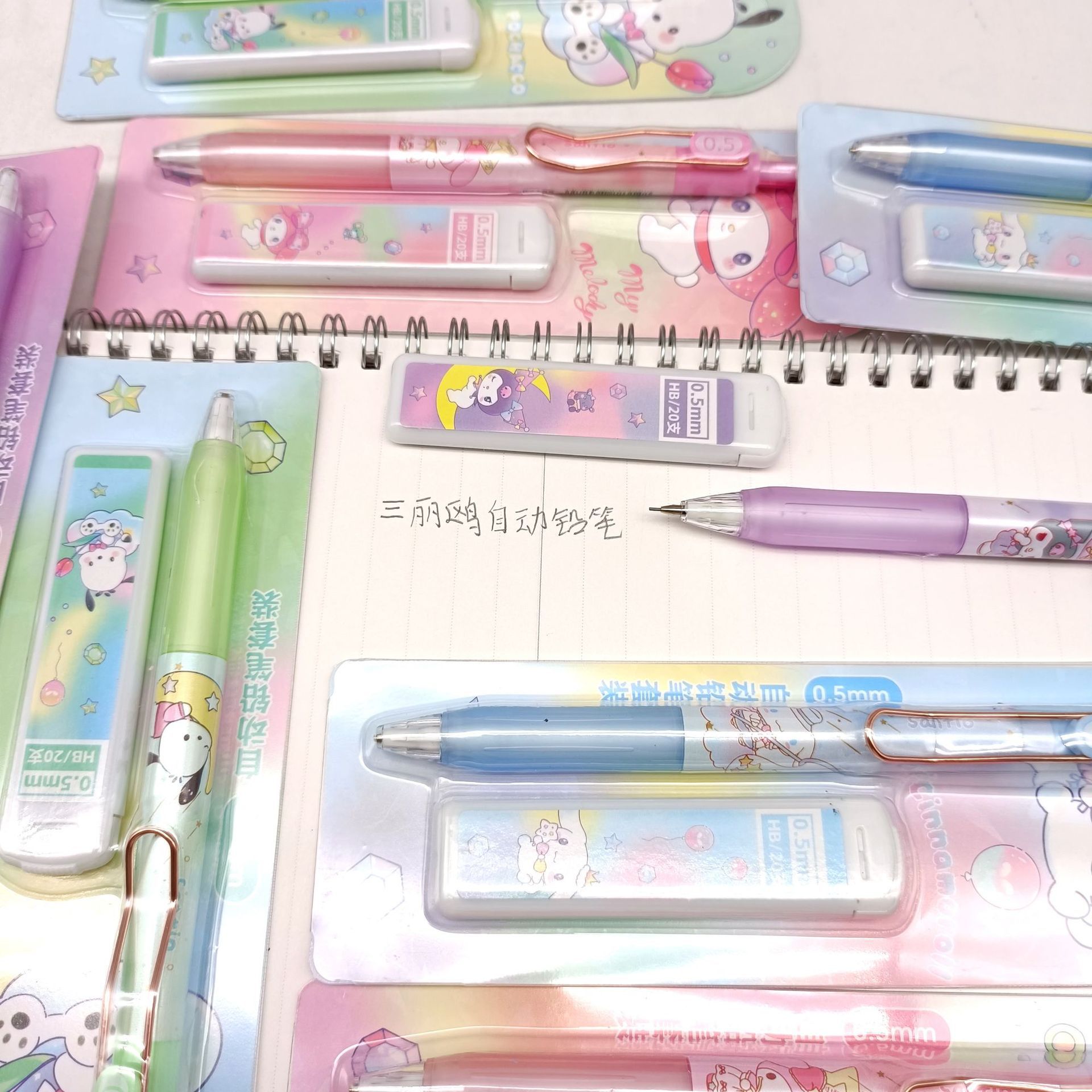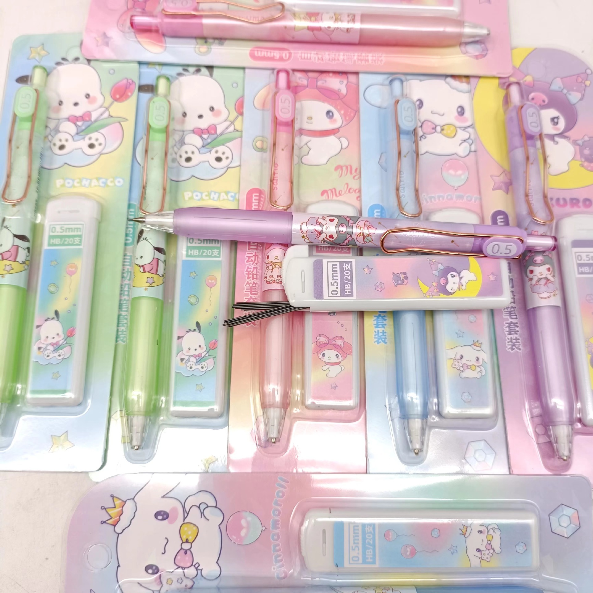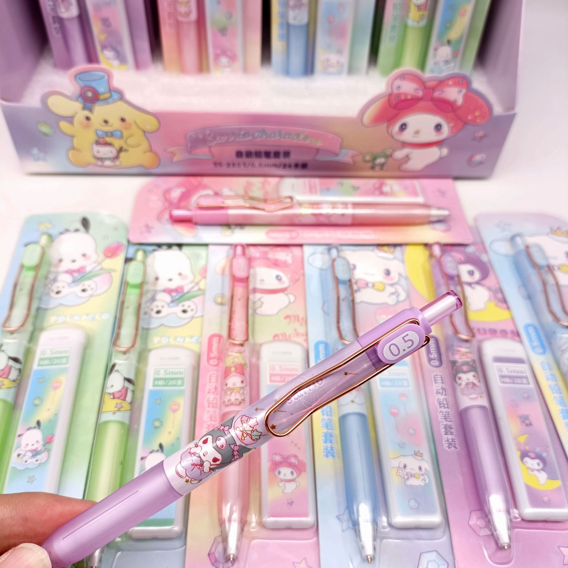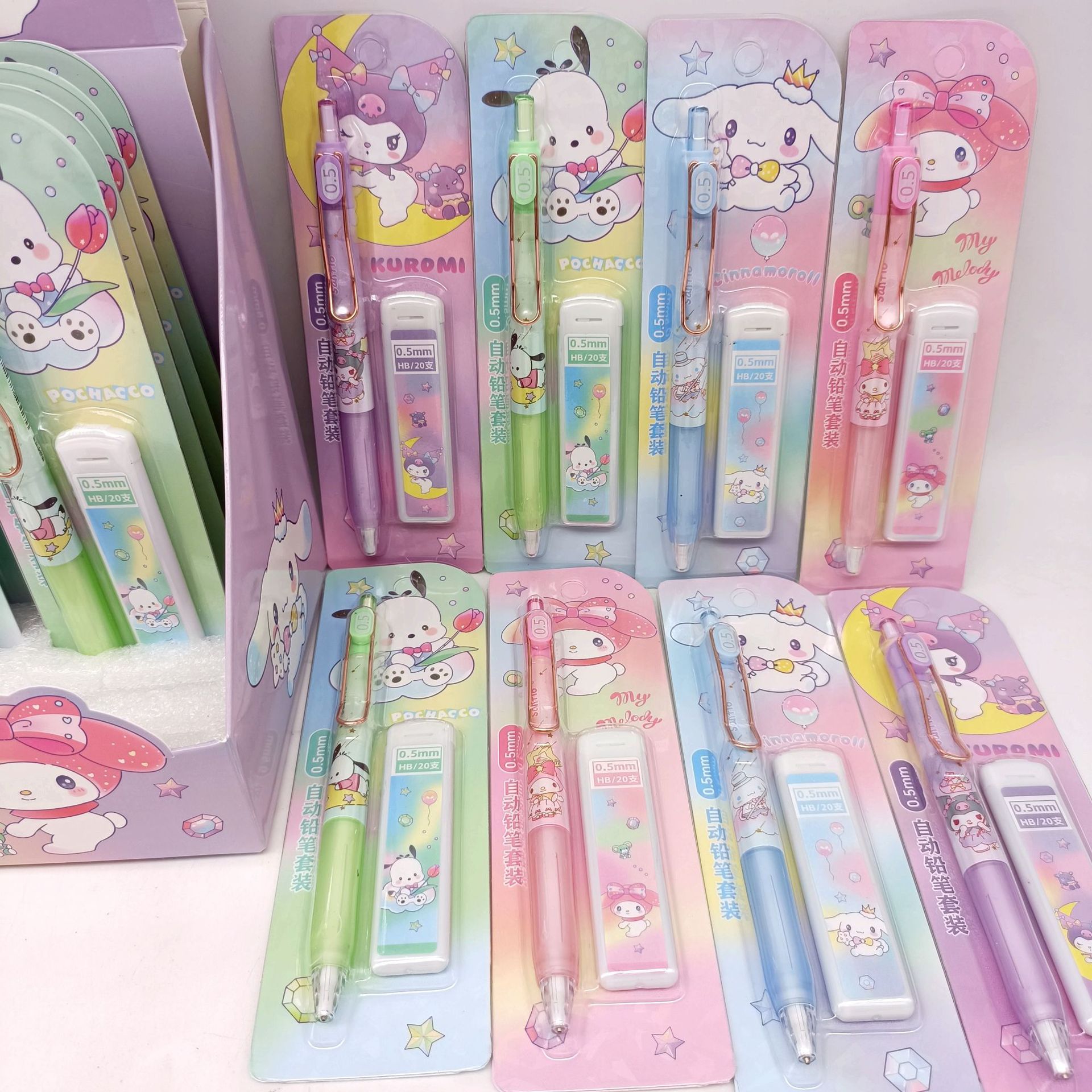 만화 산리오 자동 연필 세트 초등 및 중등 학교 학생들은 편안한 활동 연필 리드 조합 도매 브러시스토어 가기