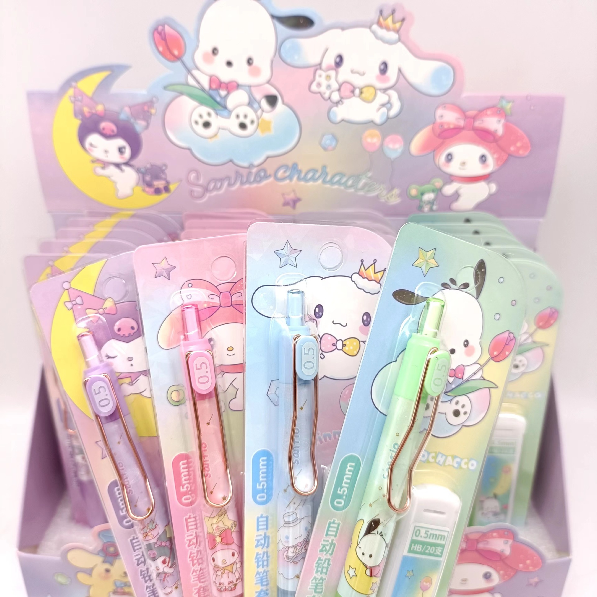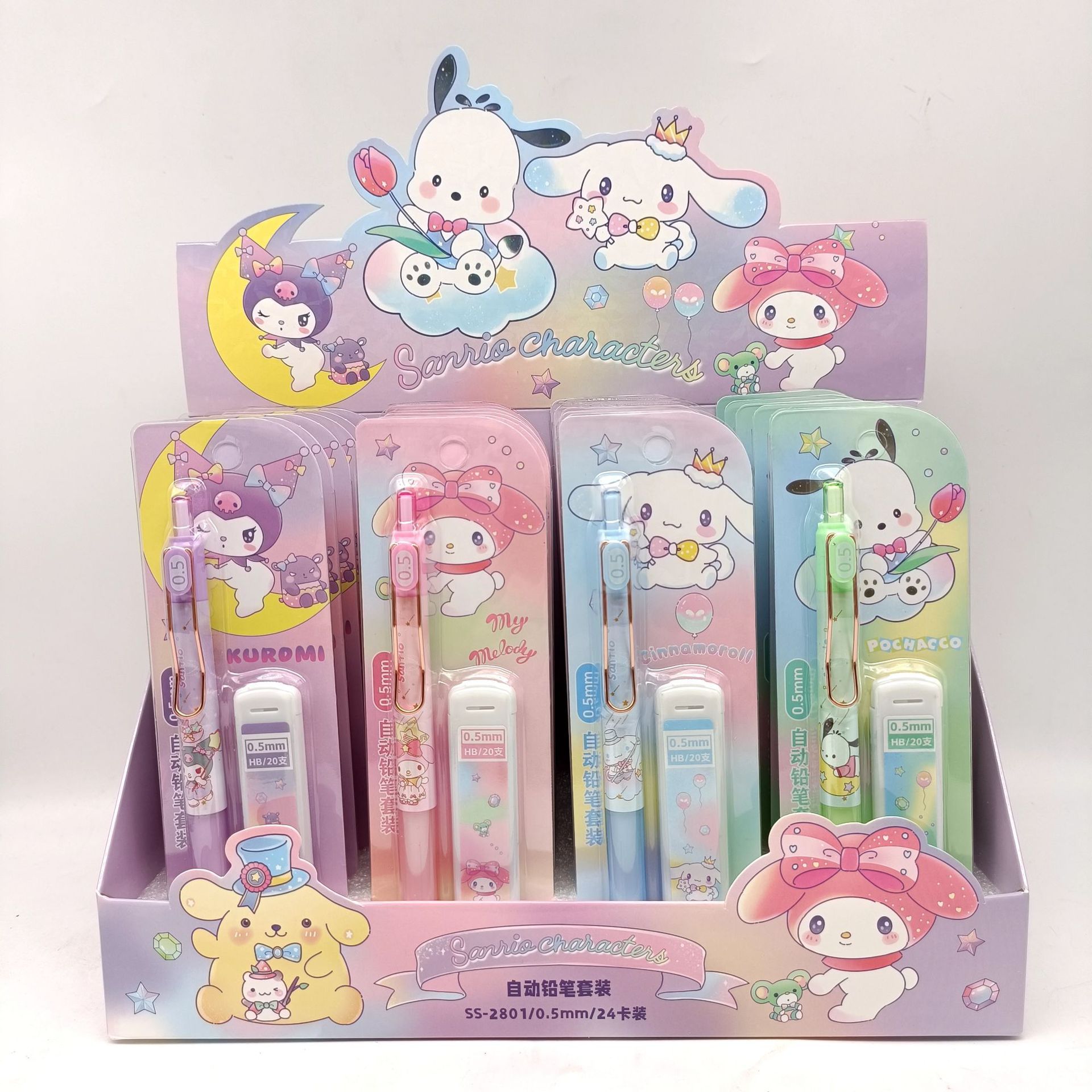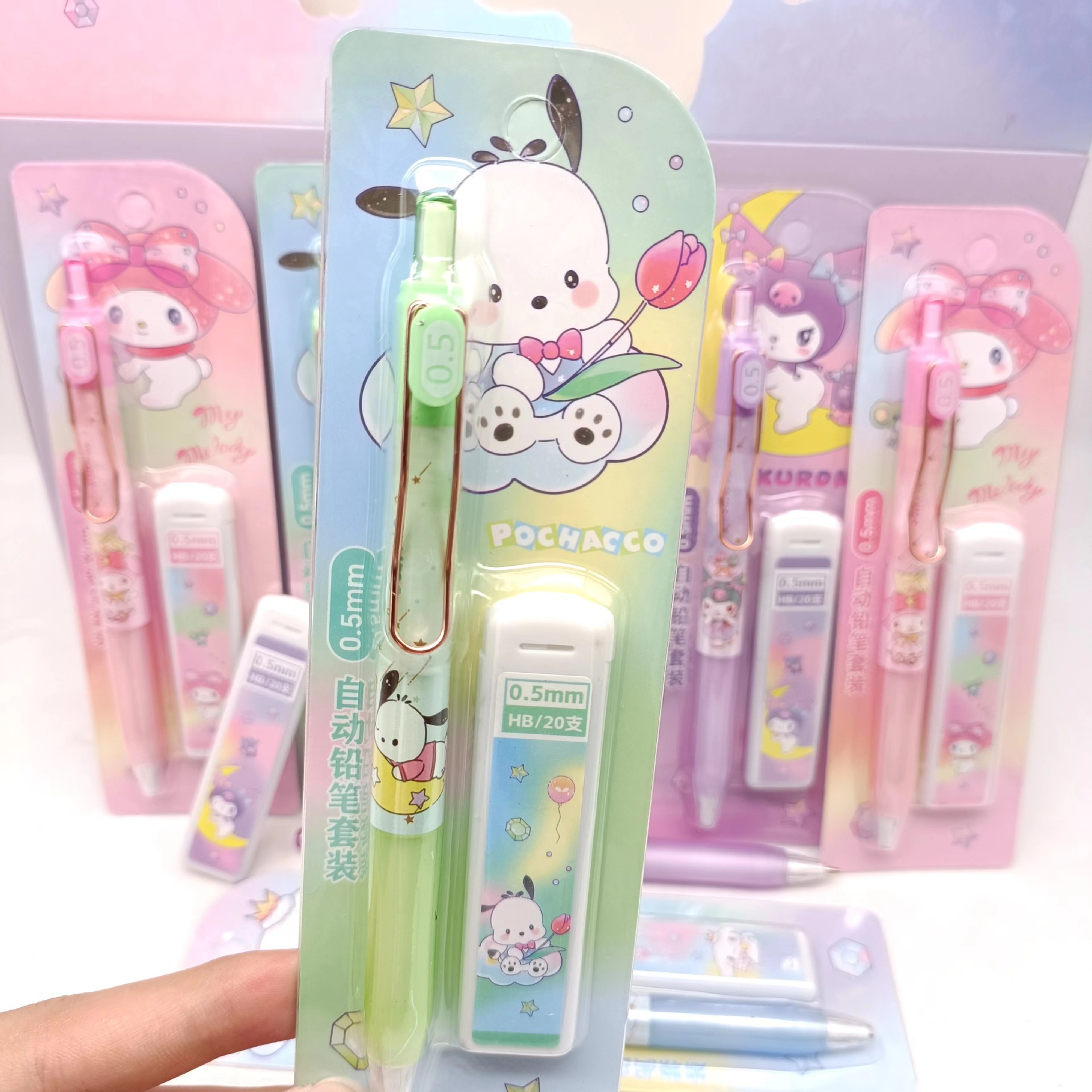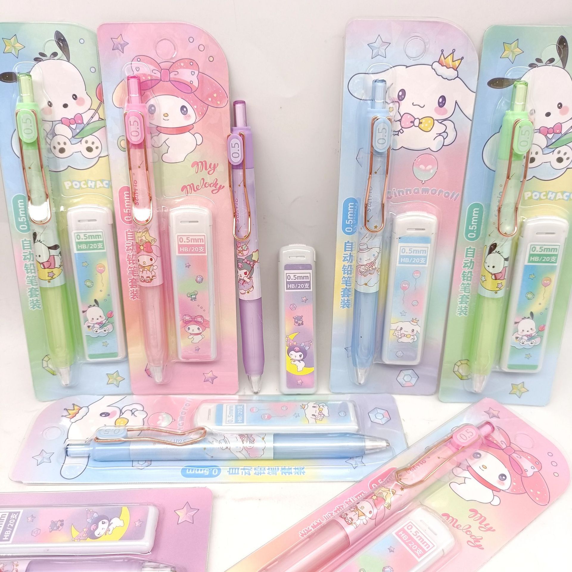 만화 산리오 자동 연필 세트 초등 및 중등 학교 학생들은 편안한 활동 연필 리드 조합 도매 브러시스토어 가기