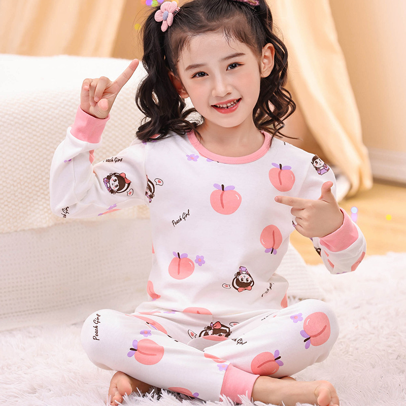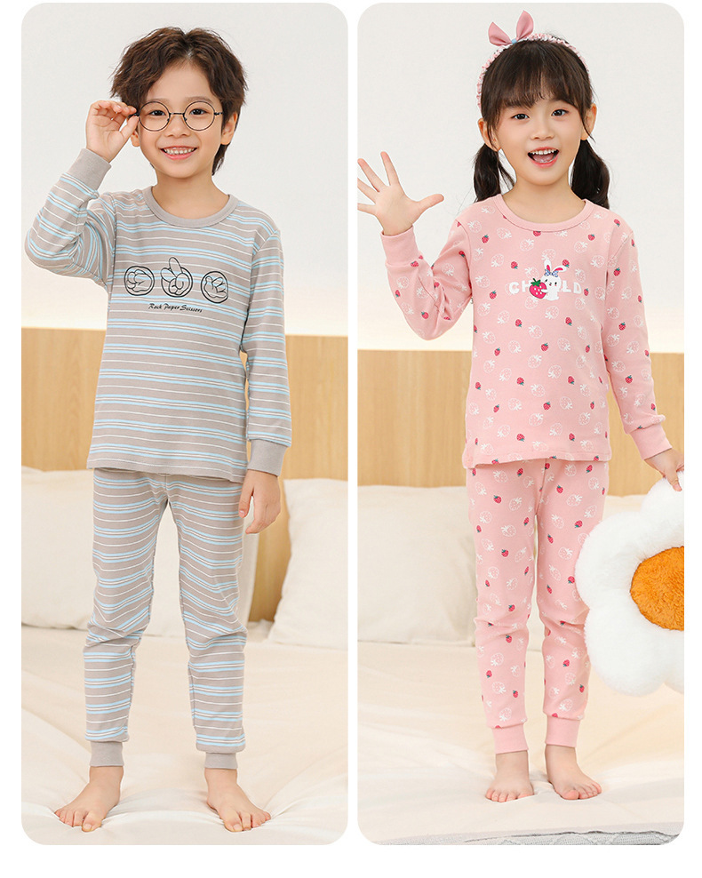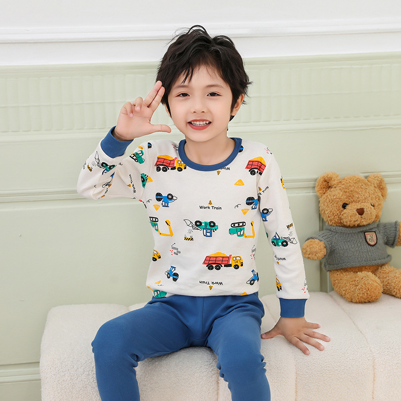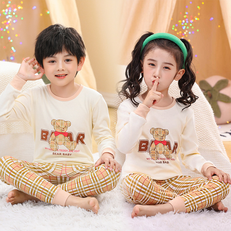 어린이 가을 옷과 바지 면화 세트 여자 속옷 소년 면화 스웨터 따뜻한 중대형 어린이 가을 겨울 잠옷스토어 가기