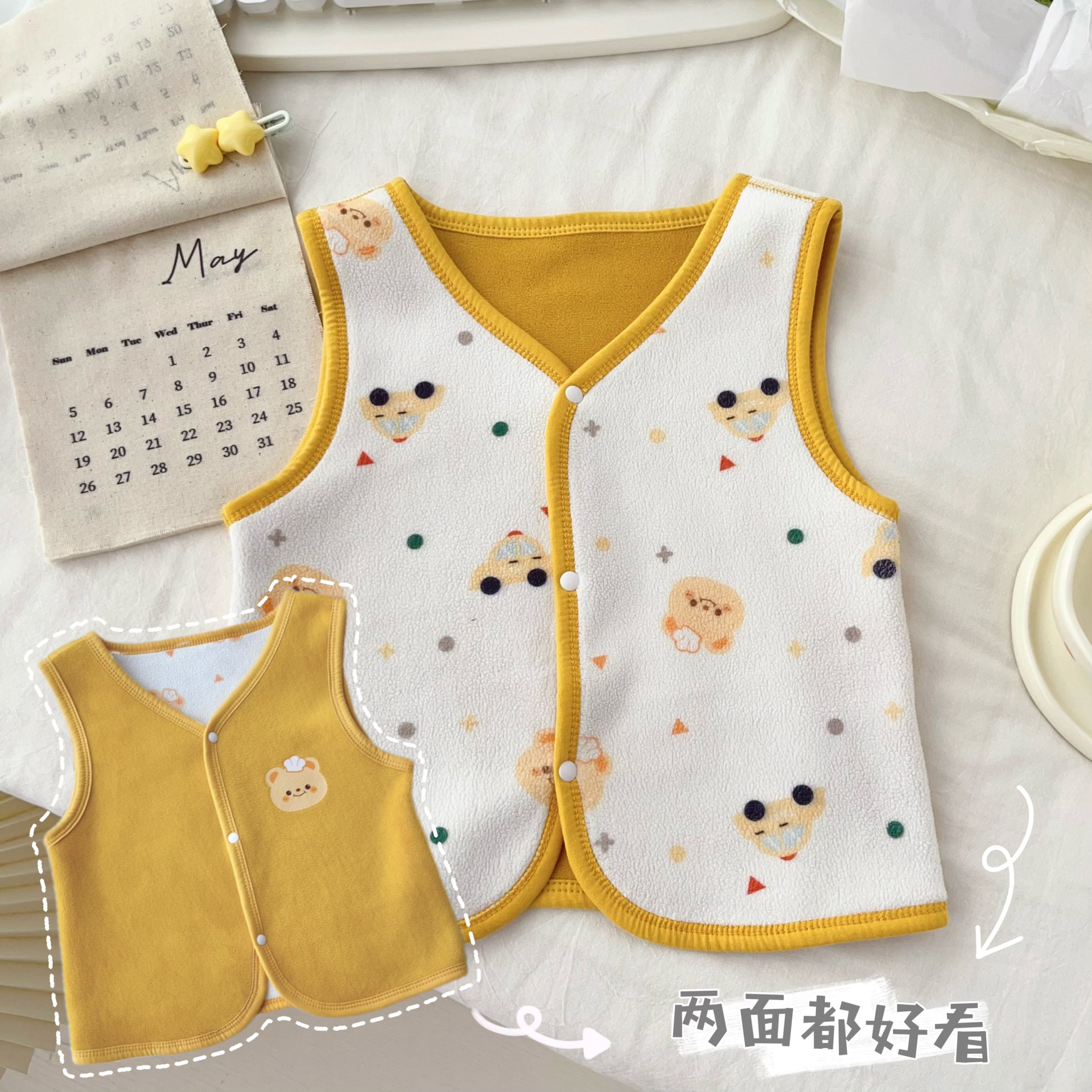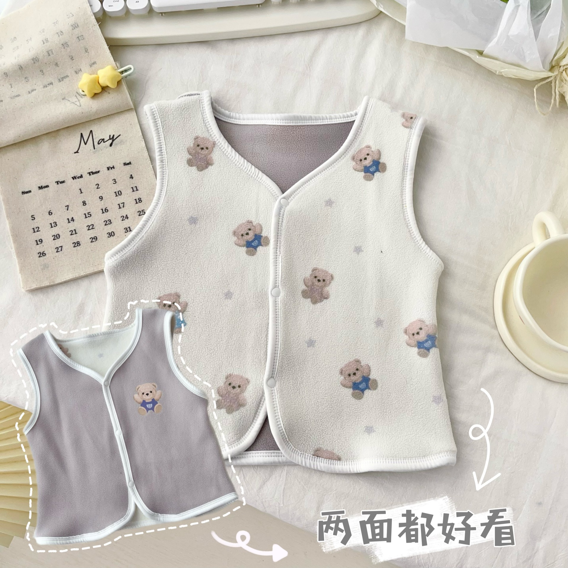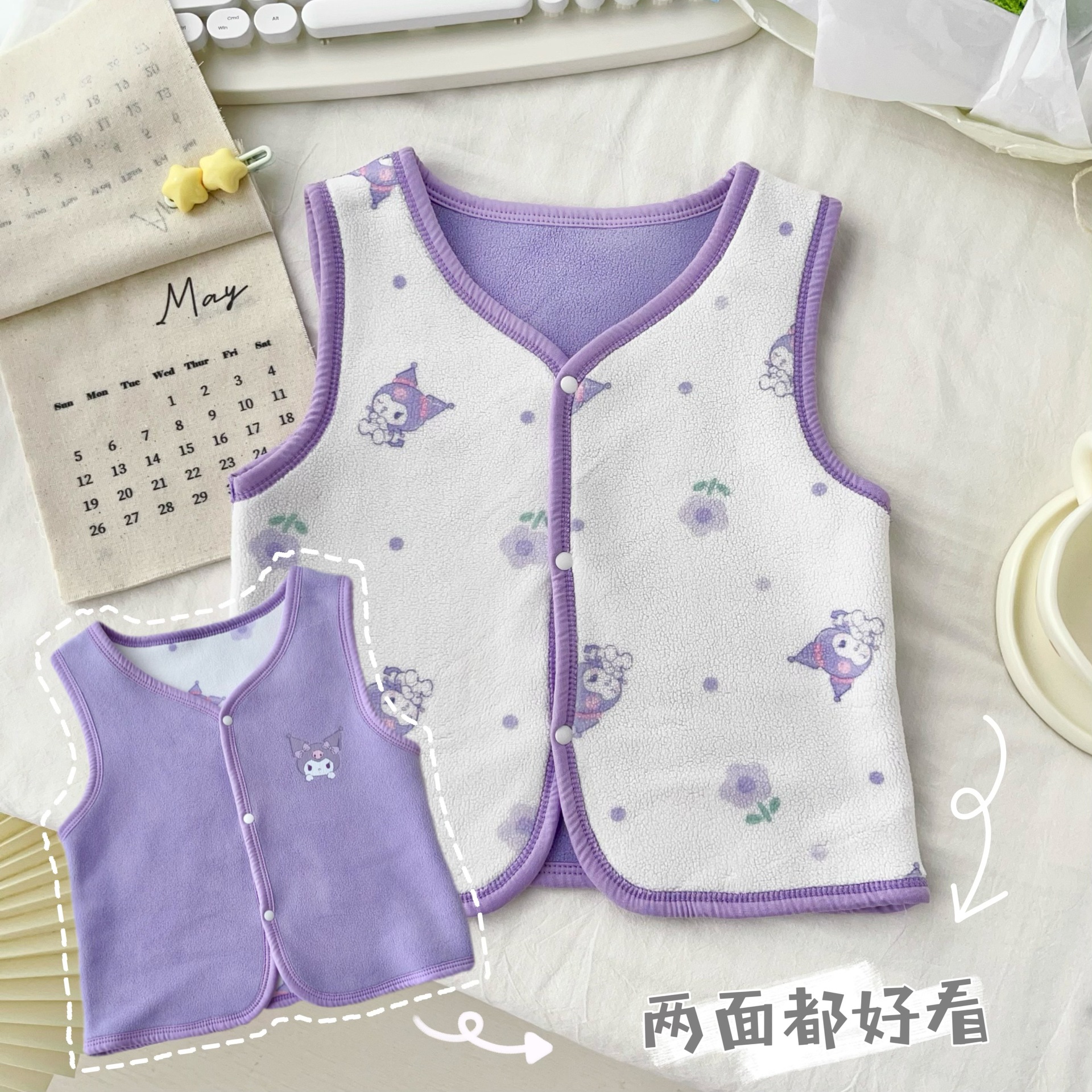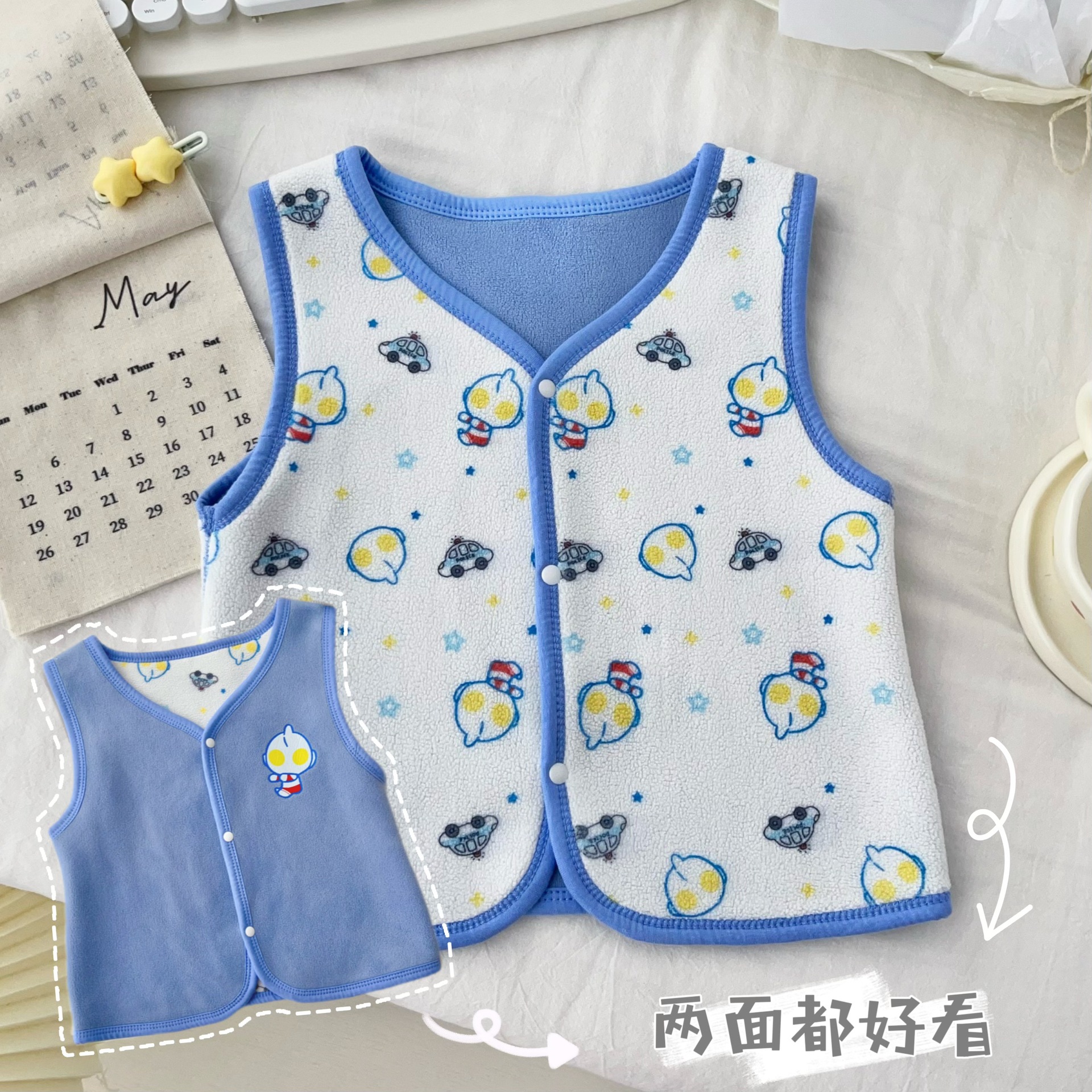 24 가을 새 어린이 조끼 오스트리아 벨벳 조끼 양면 따뜻한 봉제 조끼 가을 올 매치 조끼 착용