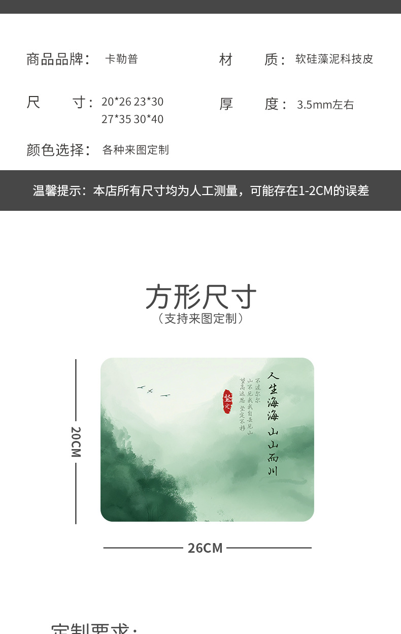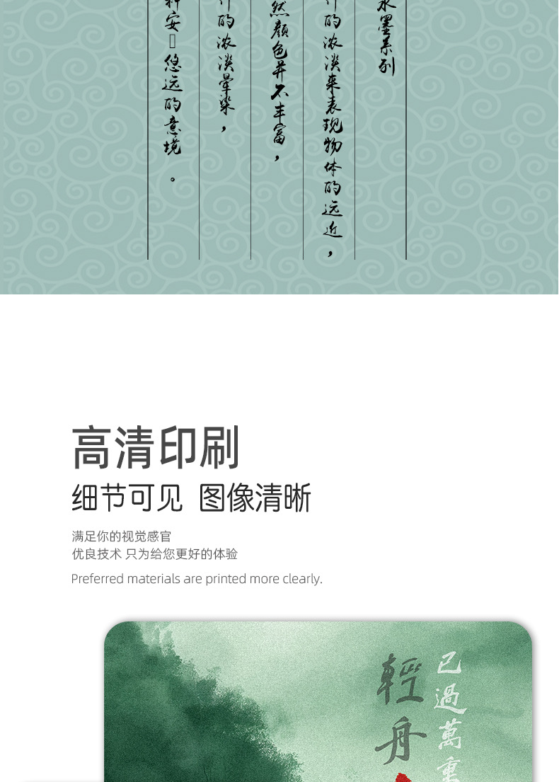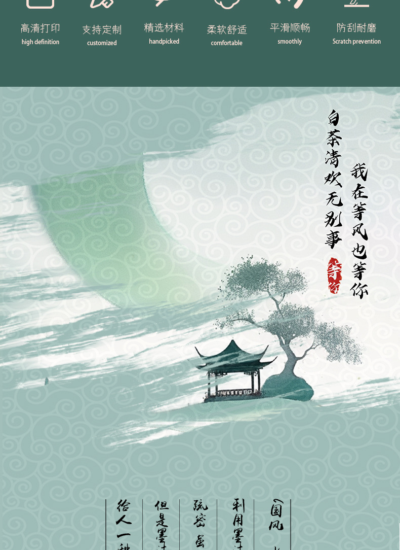 창조적 인 Guofeng 마우스 패드 컴퓨터 키보드 책상 패드 풍경 그림 간단한 사무실 마우스 패드 비 슬립 휴대용스토어 가기