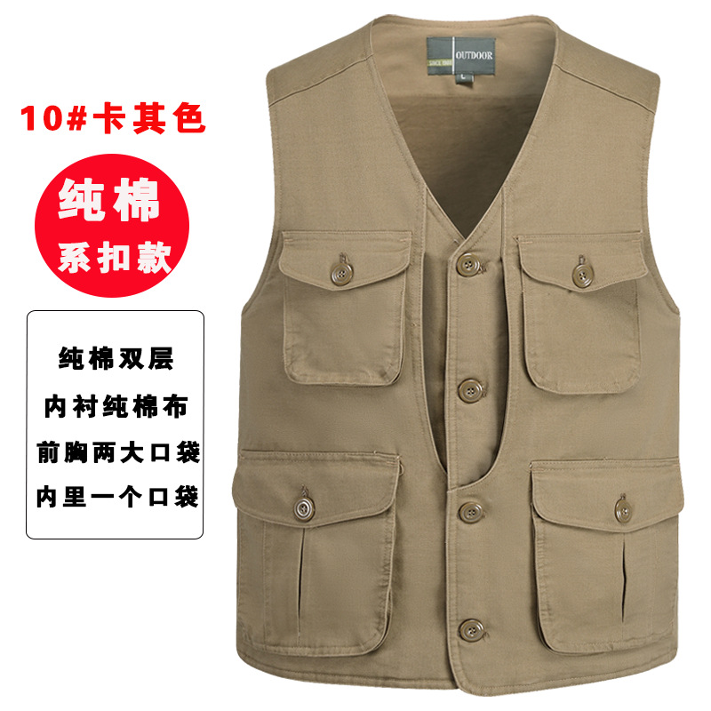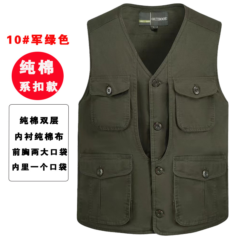중년 및 노인을위한 가을과 겨울 기모 두꺼운 면화 조끼 남자 순면 단추 조끼와 어깨 멀티 포켓 플러스 사이즈 아빠스토어 가기