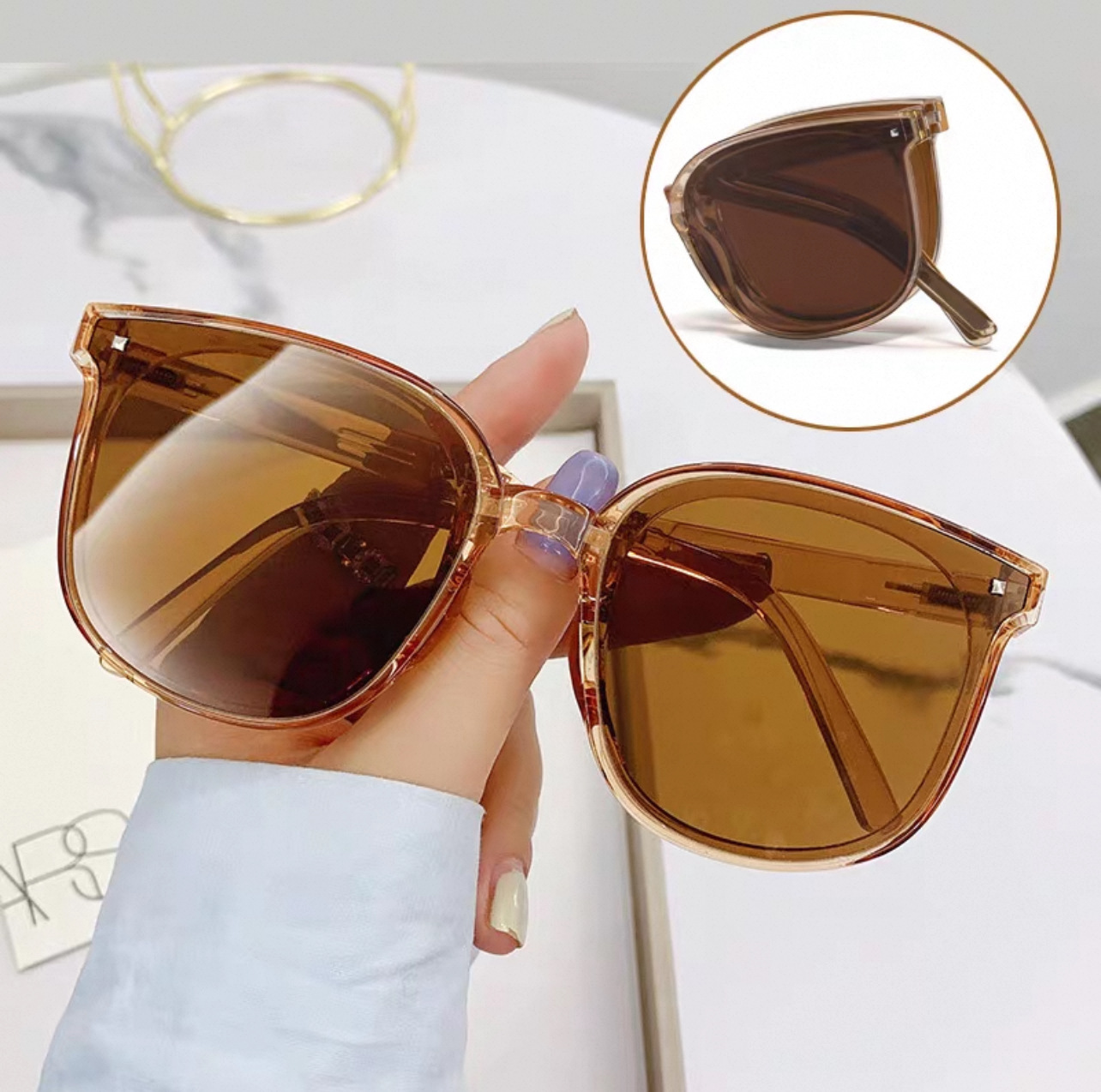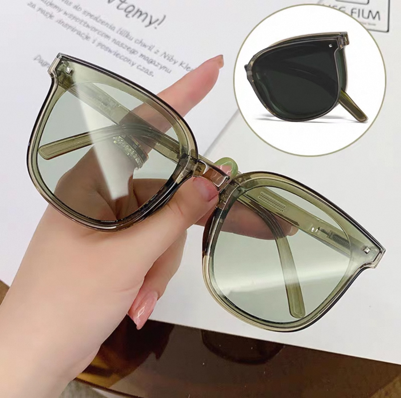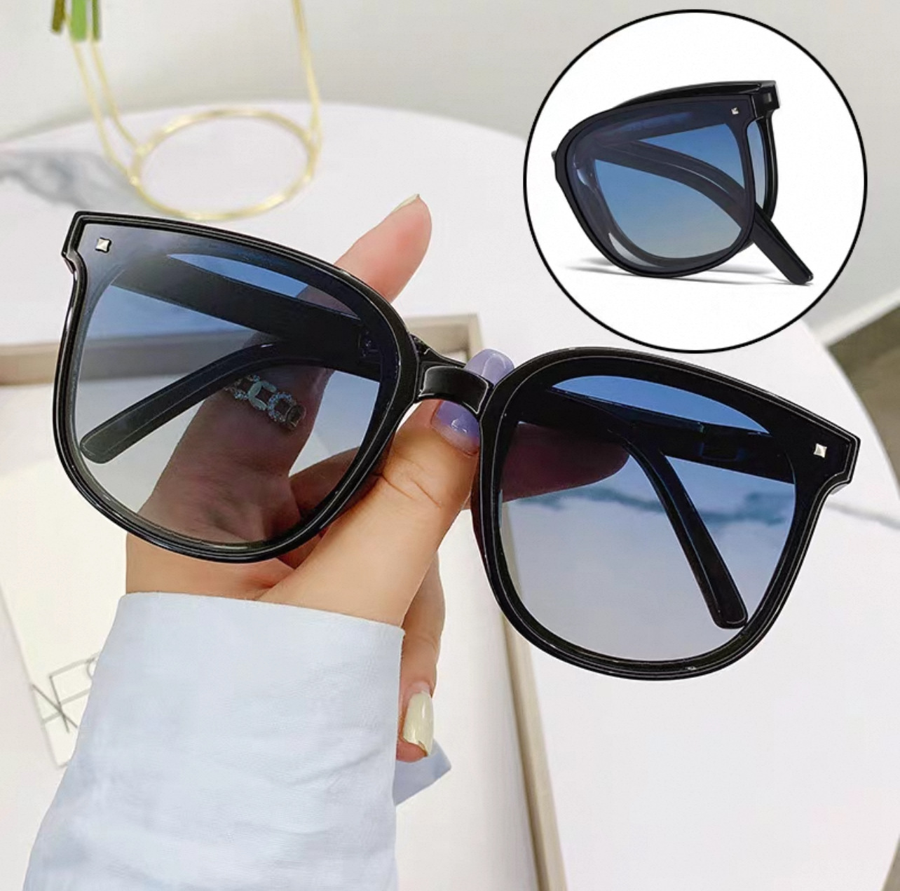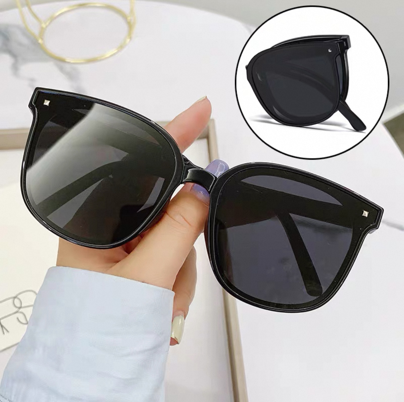 새로운 접는 선글라스 여성 포켓 에어 쿠션 선글라스 UV 보호 유행 남성 운전 선글라스 태양 보호 안경스토어 가기