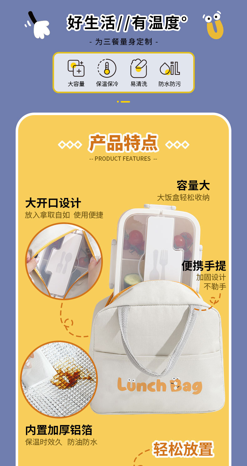 절연 가방 대용량 사무실 학생 휴대용 점심 가방 방수 및 내유성 두꺼운 알루미늄 호일 도시락 가방 휴대용스토어 가기