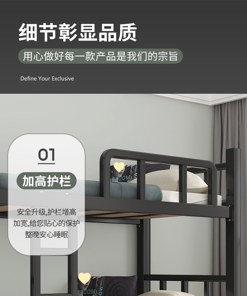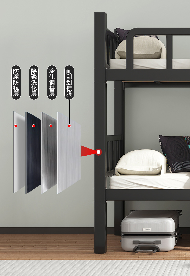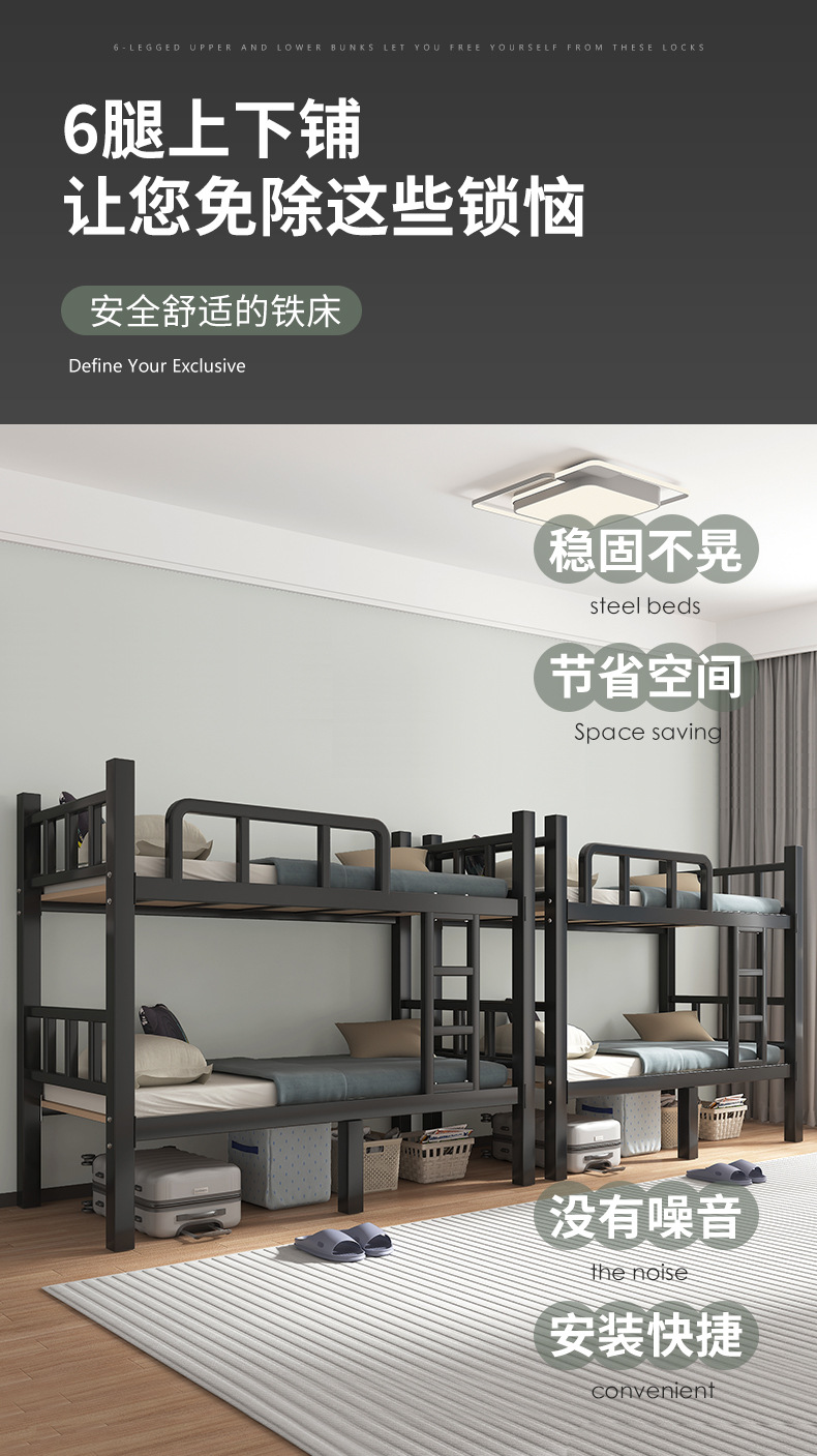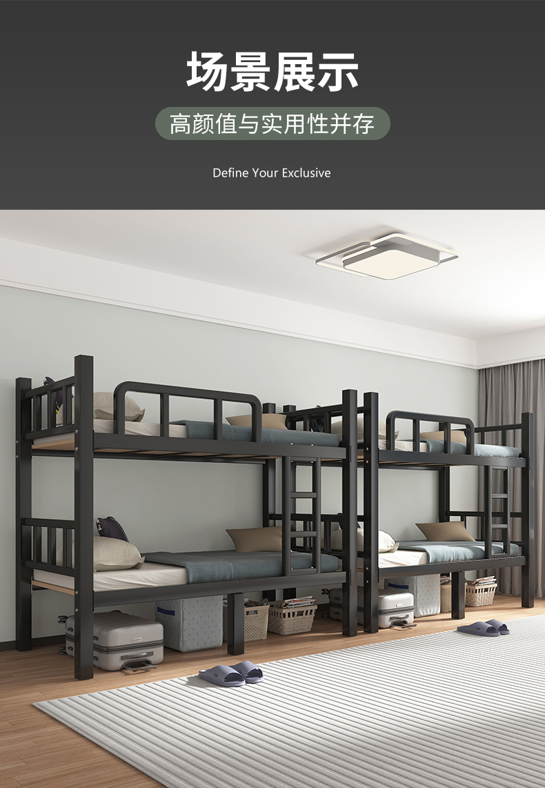두꺼운 이층 침대 아이언 침대 직원 기숙사 침대 선반 학교 더블 아이언 하이 및 로우 아이언 프레임 침대