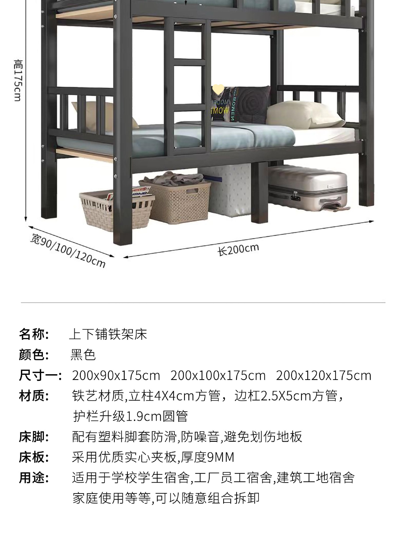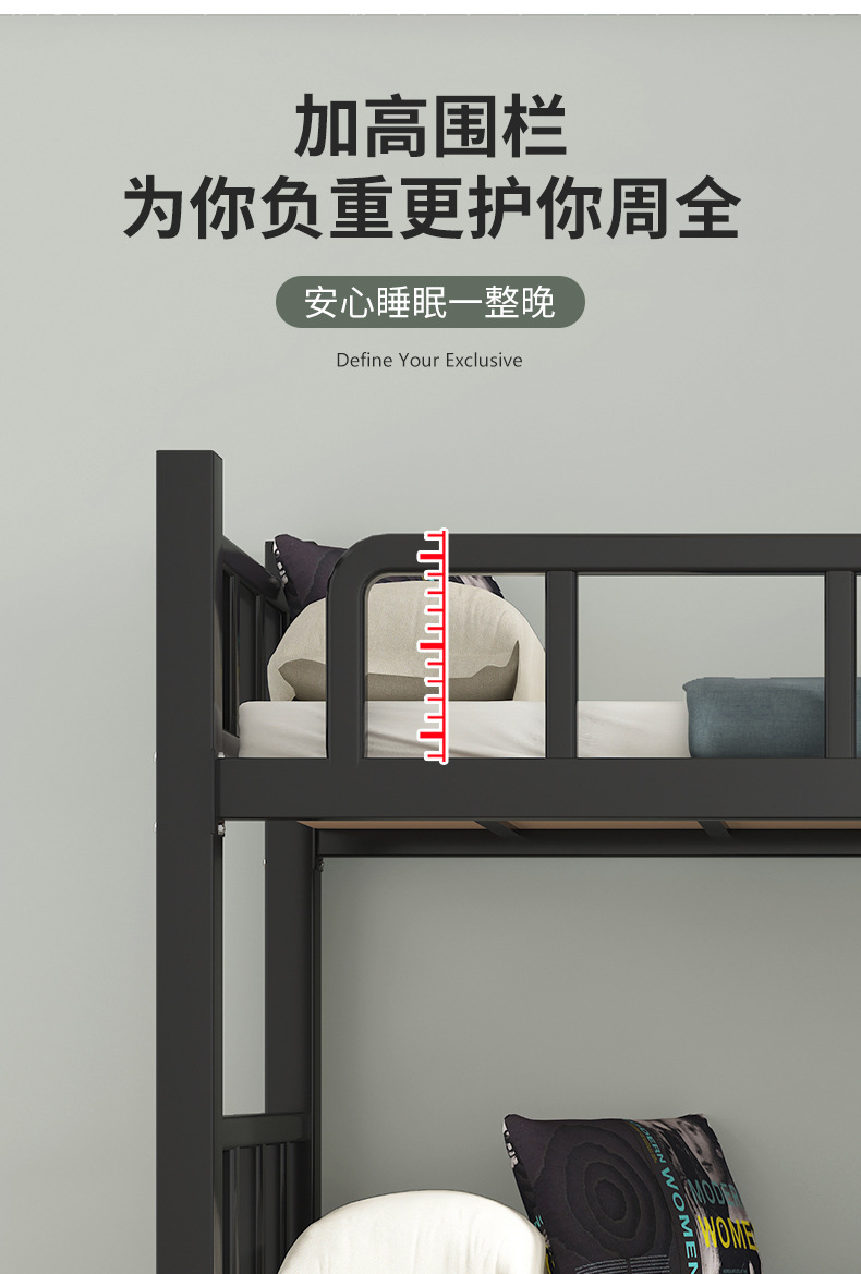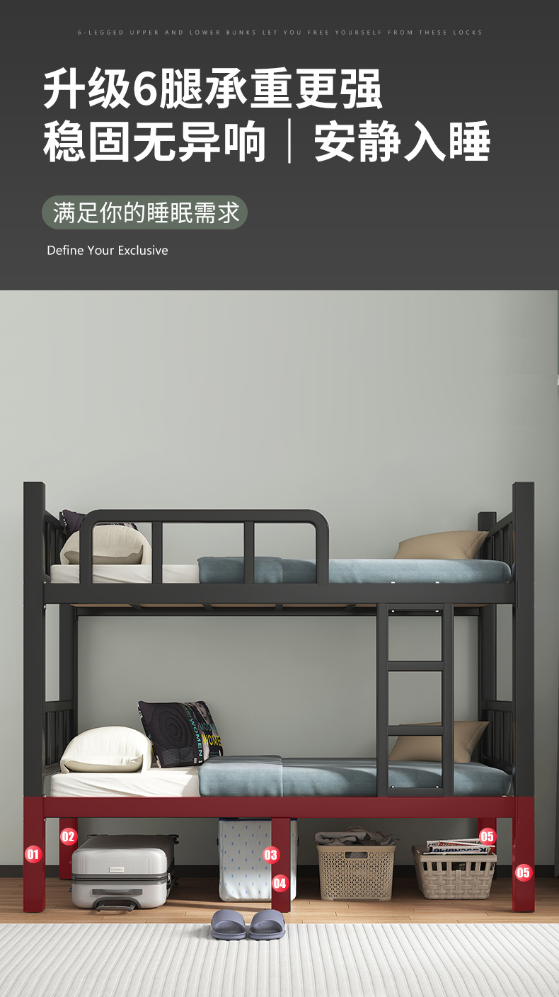 두꺼운 이층 침대 아이언 침대 직원 기숙사 침대 선반 학교 더블 아이언 하이 및 로우 아이언 프레임 침대
