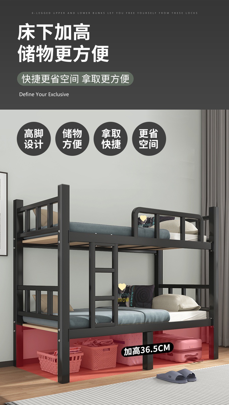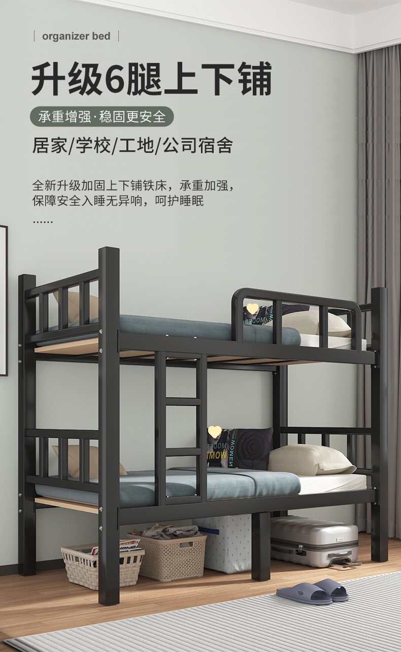 두꺼운 이층 침대 아이언 침대 직원 기숙사 침대 선반 학교 더블 아이언 하이 및 로우 아이언 프레임 침대스토어 가기