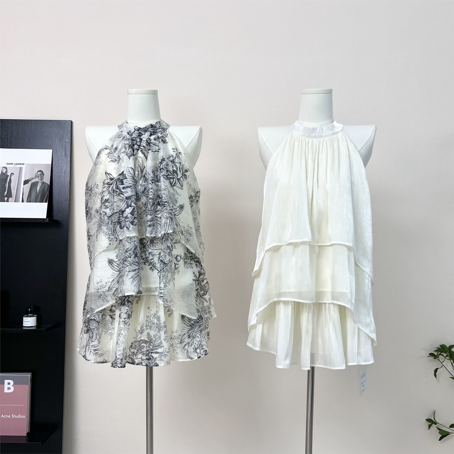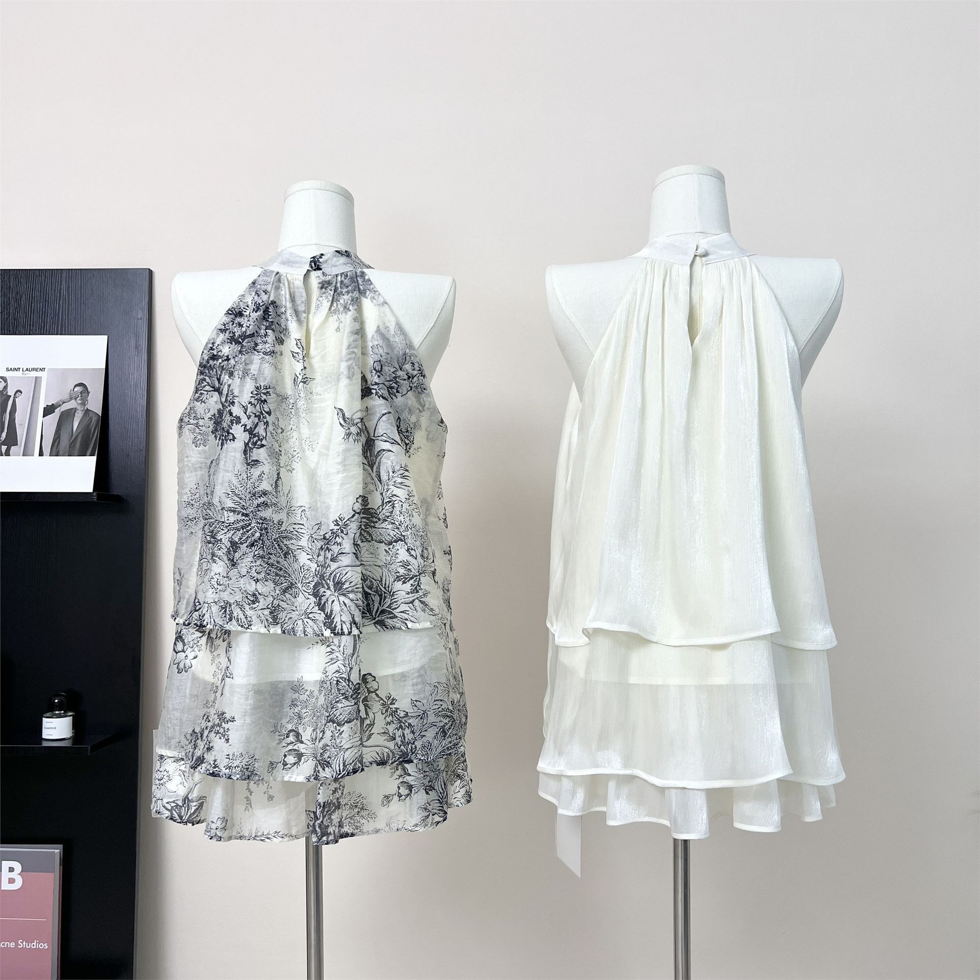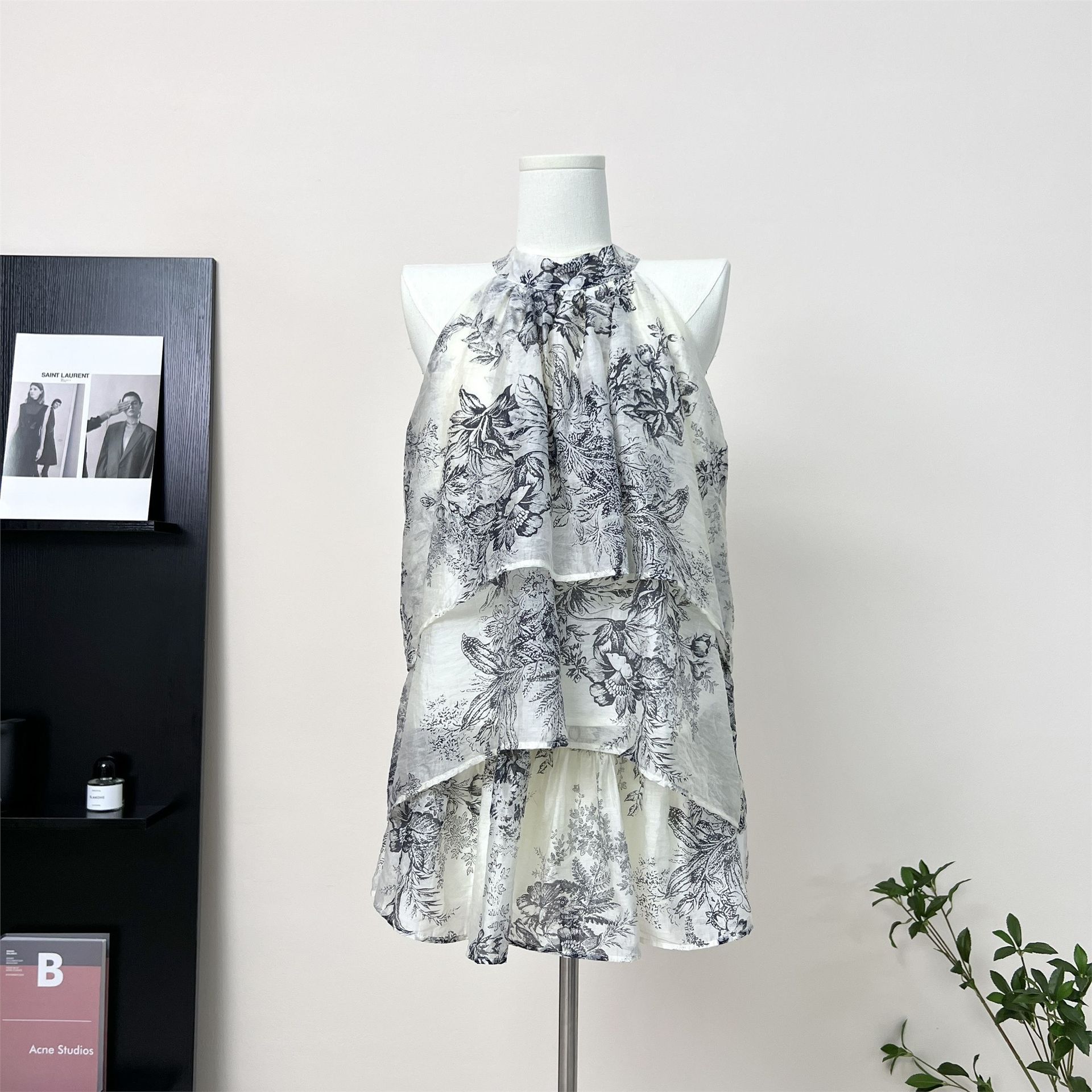 강남 잉크 인쇄 고삐 목 민소매 최고 여성 독특한 세련된 불규칙한 복고풍 슈퍼 요정 치마