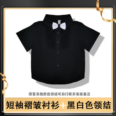 • 22012 블랙 반팔 플리츠 셔츠 (흑백 나비넥타이 포함)