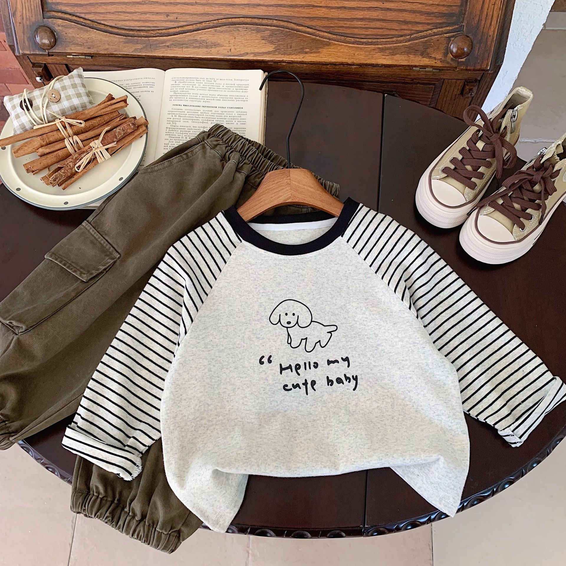 어린이 티셔츠 Bangcheng 2026 봄 신상품 남아용 스트라이프 긴팔 셔츠 래글런 슬리브 캐주얼 탑 G0365