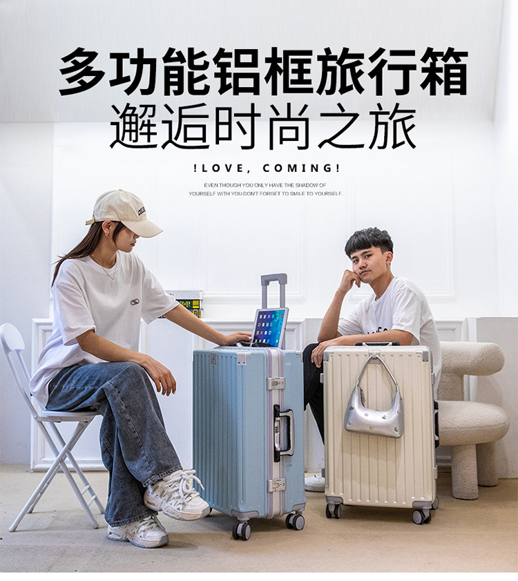 알루미늄 프레임 여행가방, 대용량 여행가방, 학생용 트롤리 케이스, 남녀 공용 탑승가방, 패셔너블한 다기능 비밀번호 케이스스토어 가기