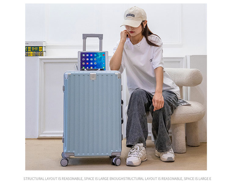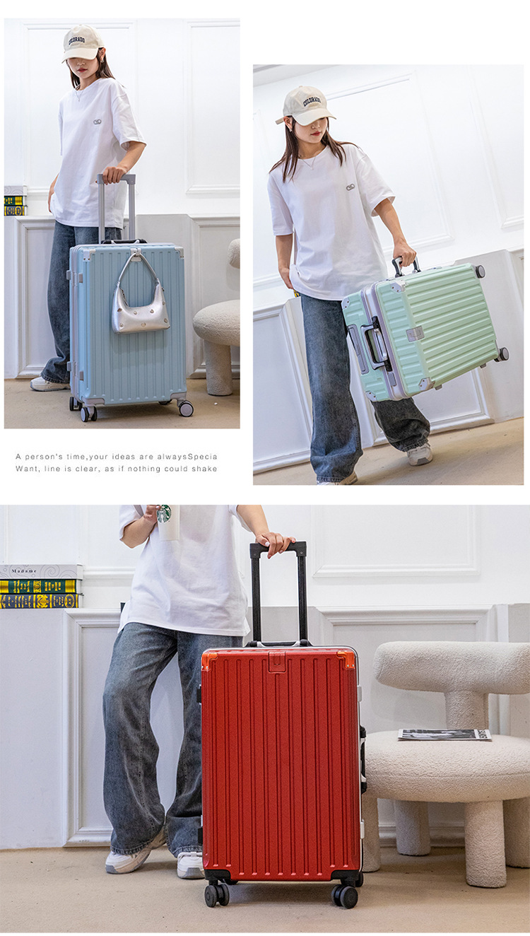 알루미늄 프레임 여행가방, 대용량 여행가방, 학생용 트롤리 케이스, 남녀 공용 탑승가방, 패셔너블한 다기능 비밀번호 케이스