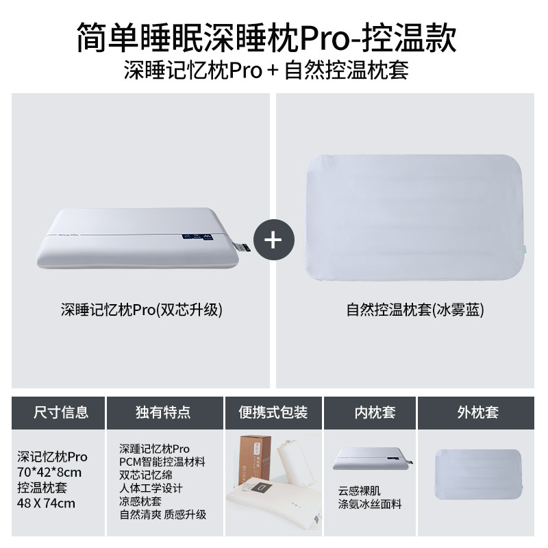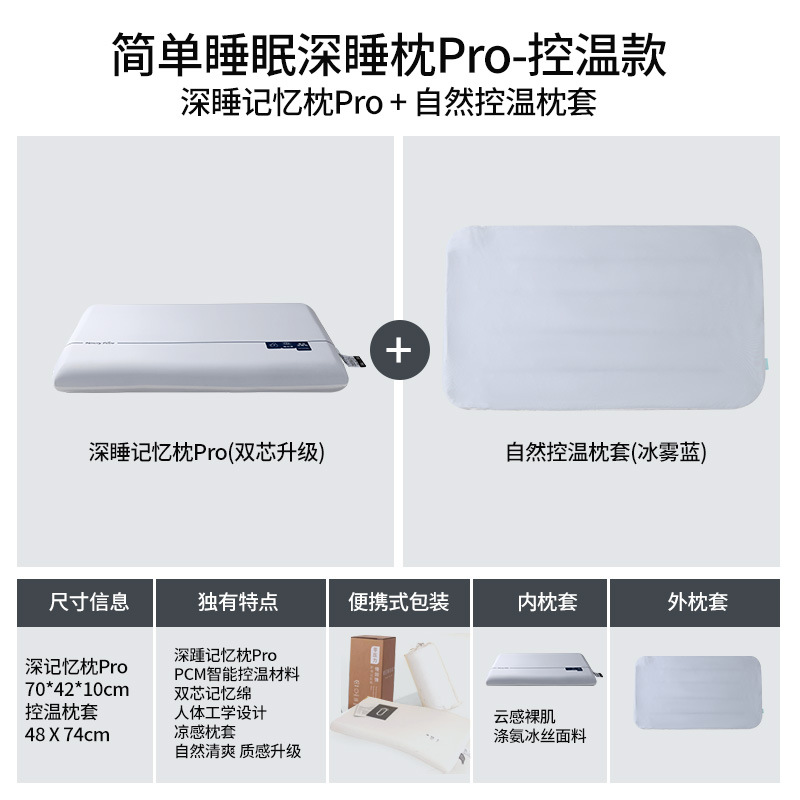 • 제로 프레셔 딥 슬리핑 필로우 프로 [더블 코어 업그레이드 + 아이스 미스트 블루 온도 조절 베개 커버] (10cm)