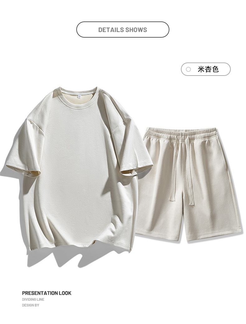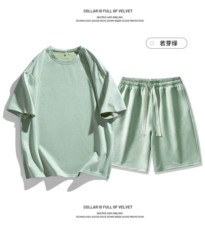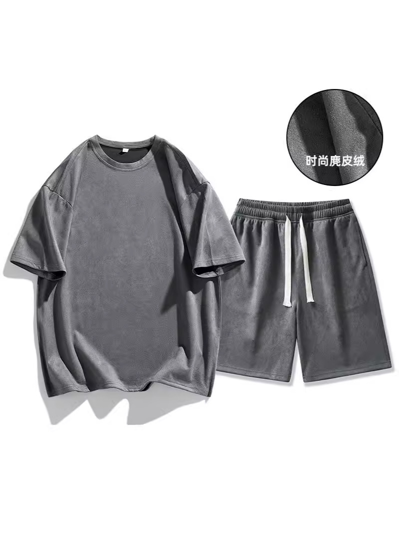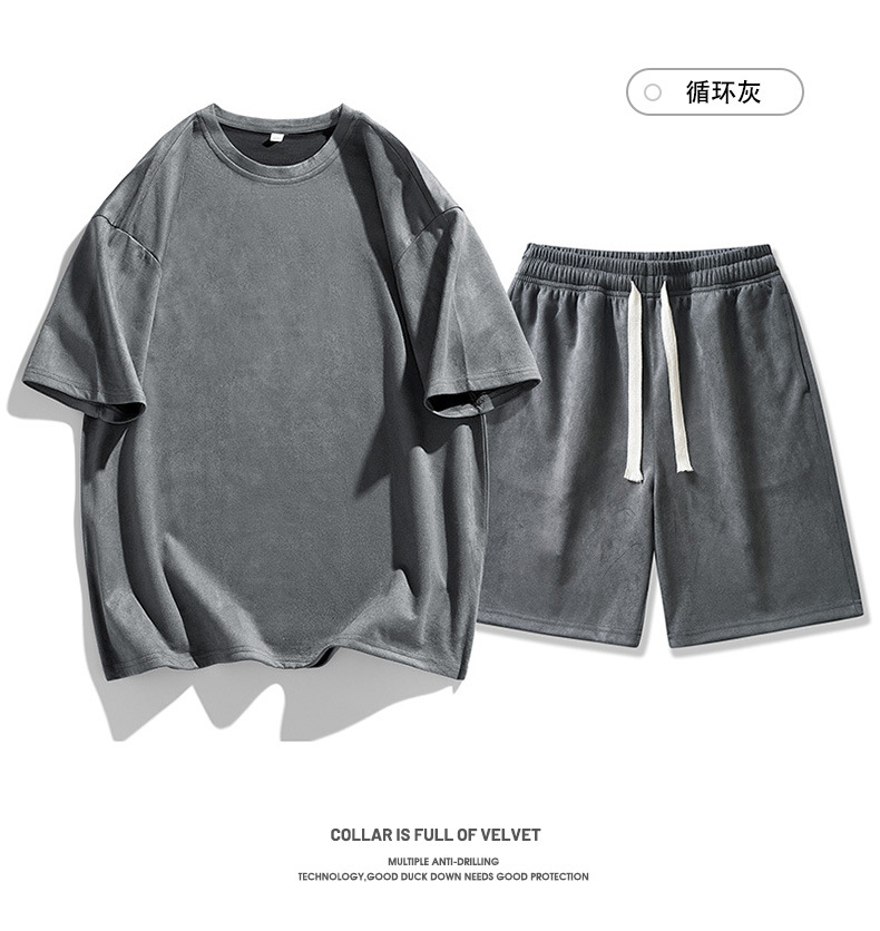 NASA 여름 스웨이드 남자 캐주얼 반팔 반바지 세트 느슨한 스포츠 트렌디 한 레트로 프리미엄 센스 세트스토어 가기