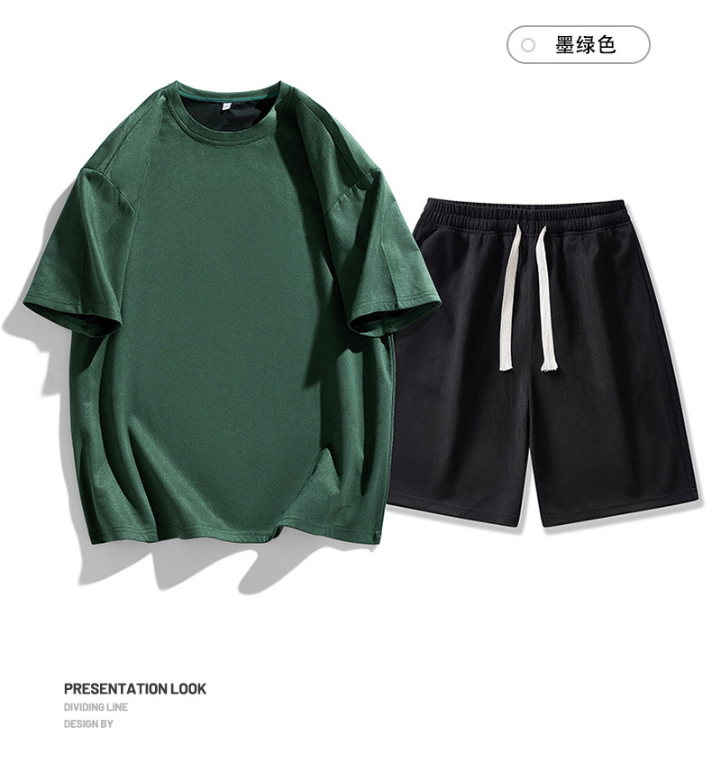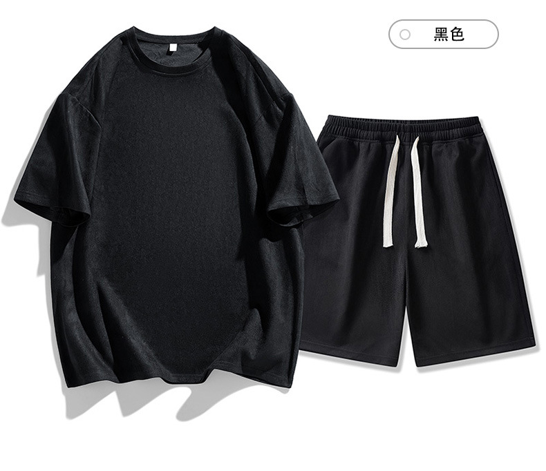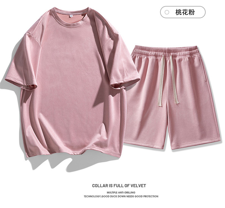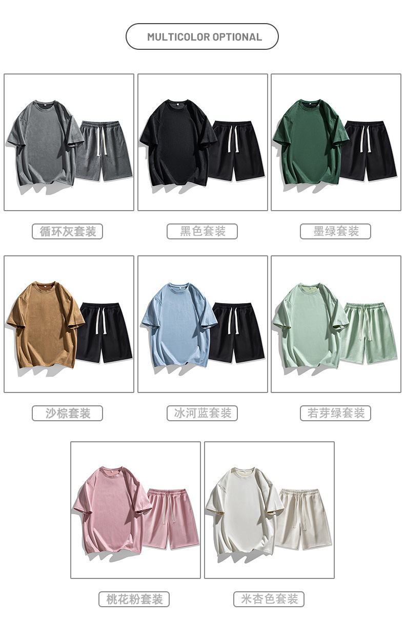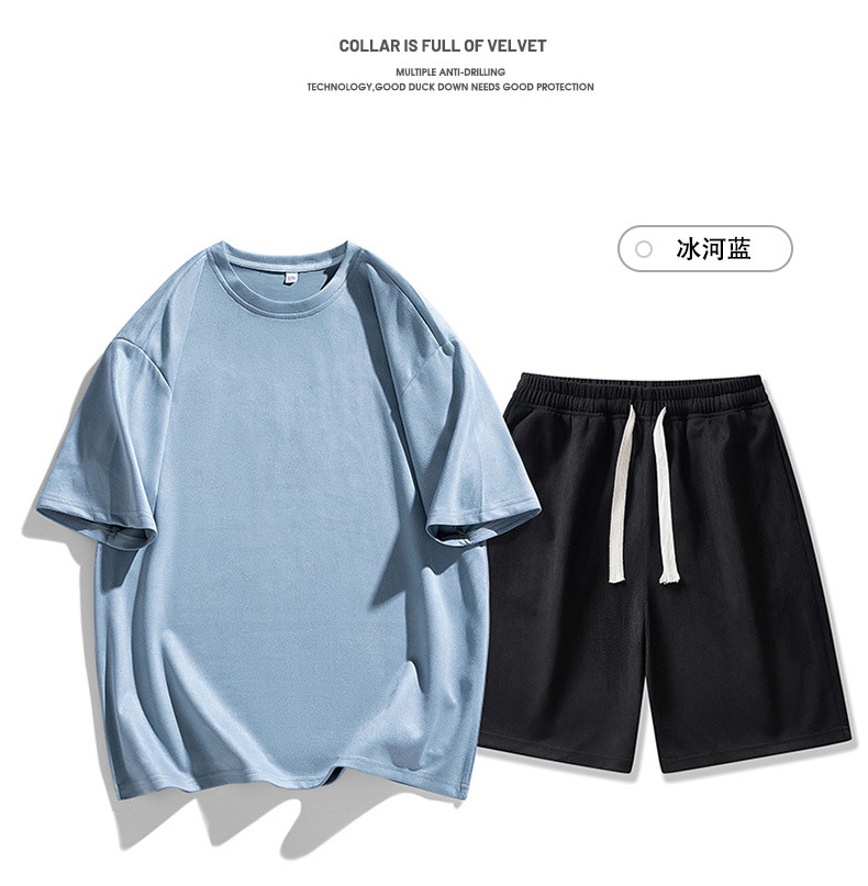 NASA 여름 스웨이드 남자 캐주얼 반팔 반바지 세트 느슨한 스포츠 트렌디 한 레트로 프리미엄 센스 세트스토어 가기