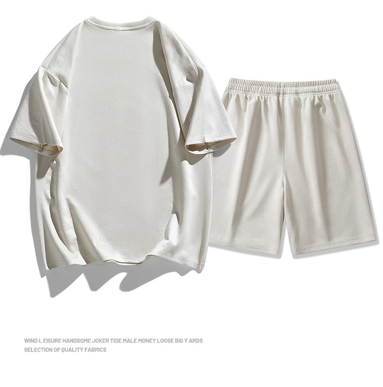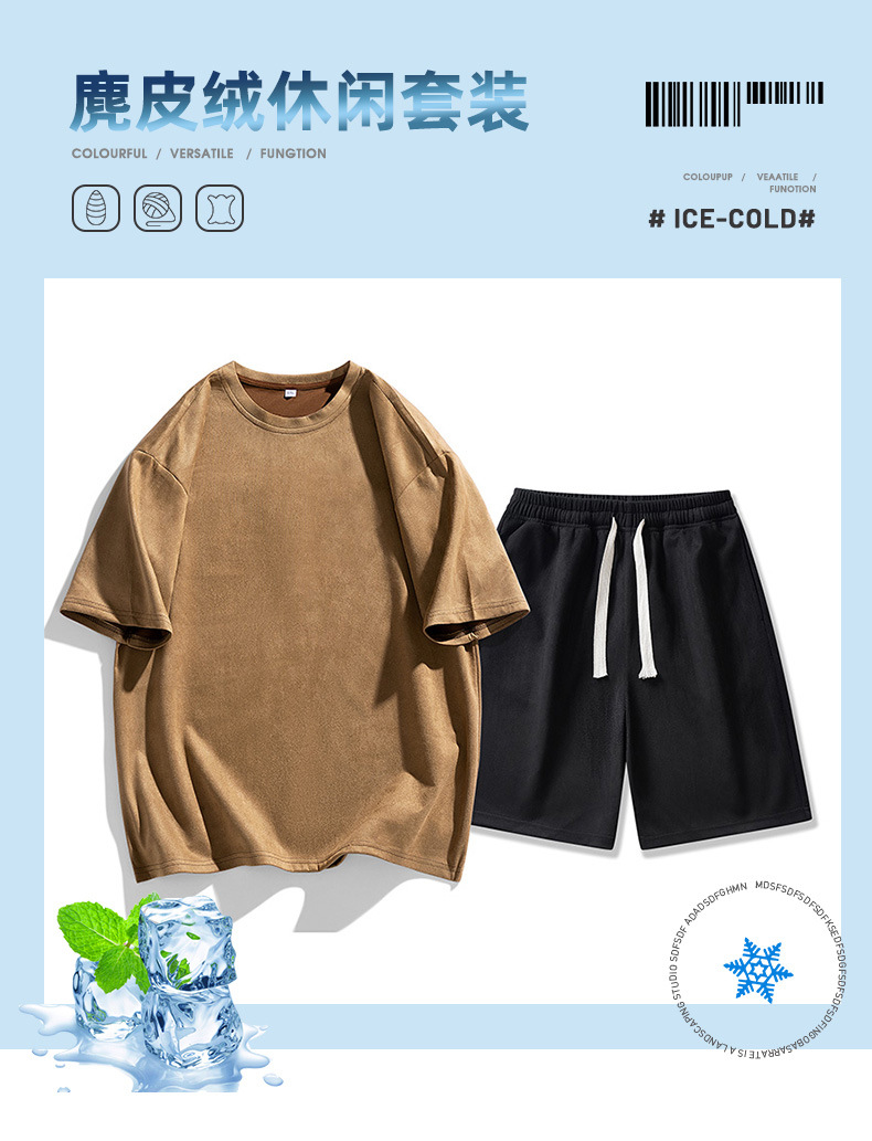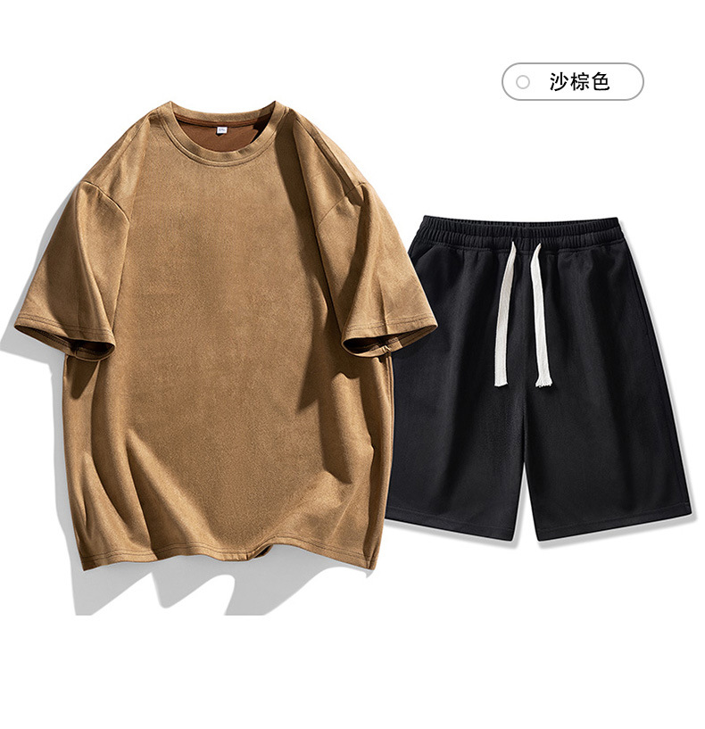 NASA 여름 스웨이드 남자 캐주얼 반팔 반바지 세트 느슨한 스포츠 트렌디 한 레트로 프리미엄 센스 세트
