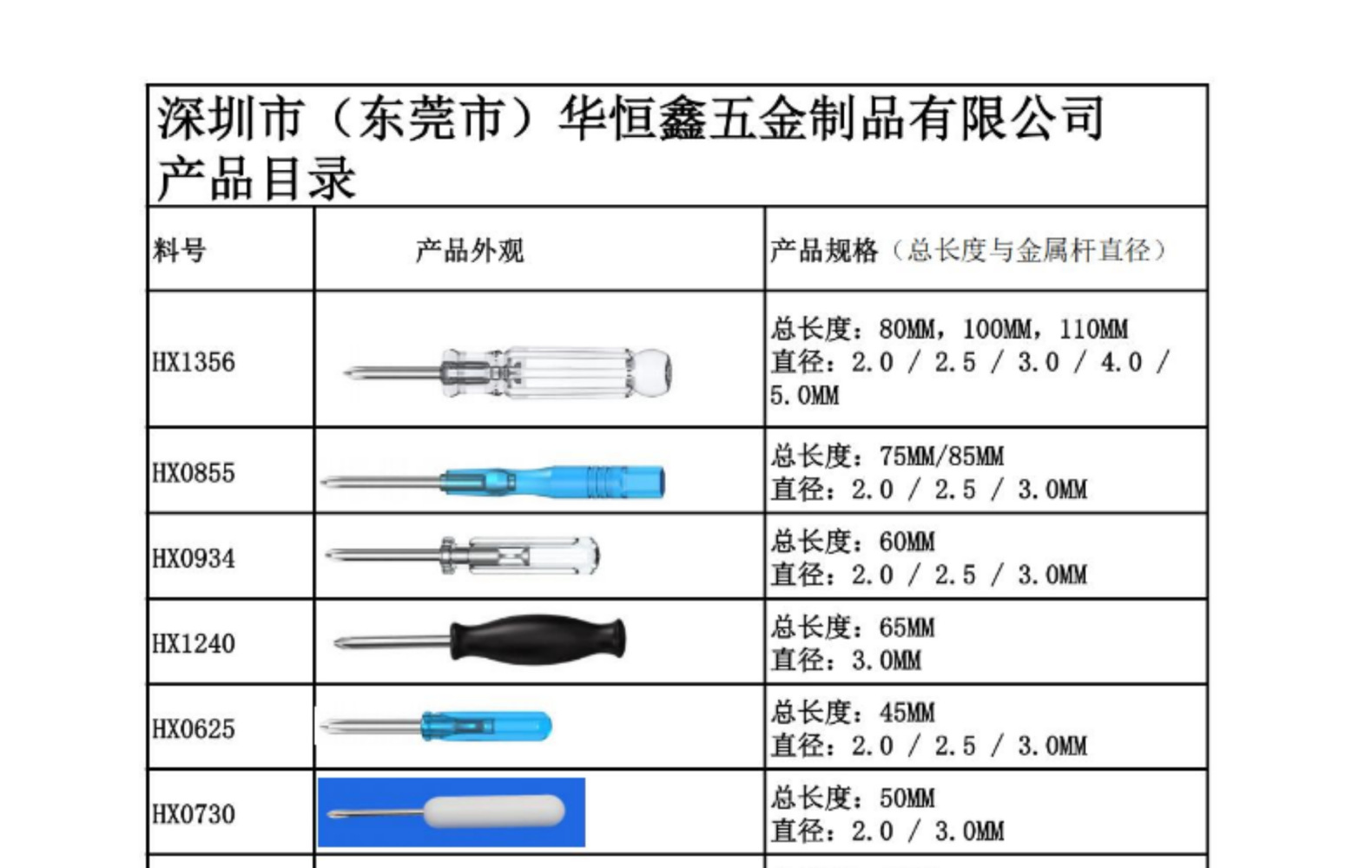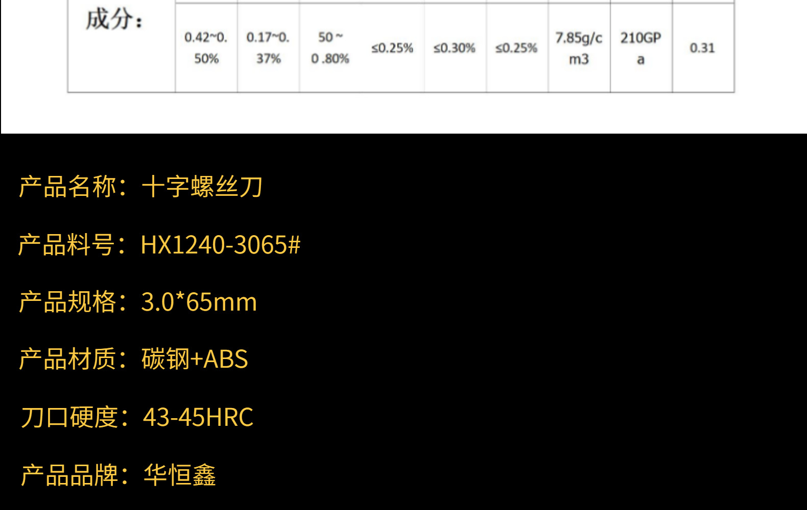Hua Hengxin 환경 보호 ABS 소재 하드 벨트 마그네틱 소금 스프레이 테스트 48H 투명 3.0*80mm 필립스 드라이버 추가