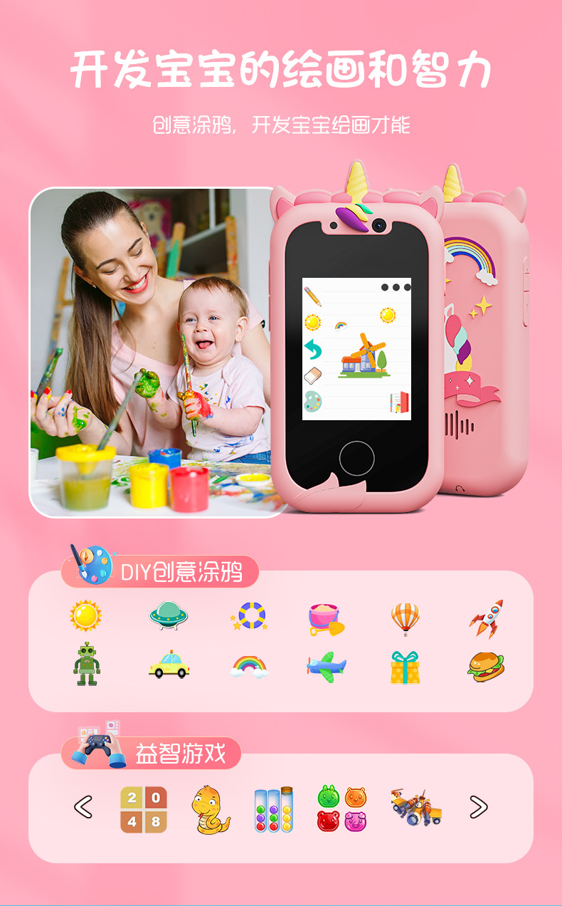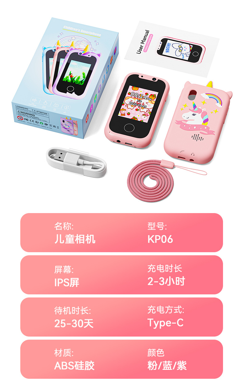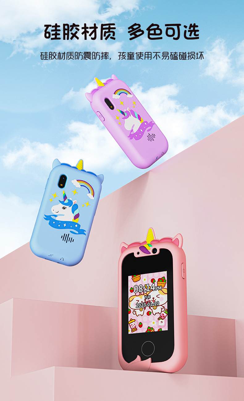 국경 새 어린이 휴대 전화 카메라 유니콘 스마트 장난감 24 백만 HD 사진 녹화 선물 퍼즐