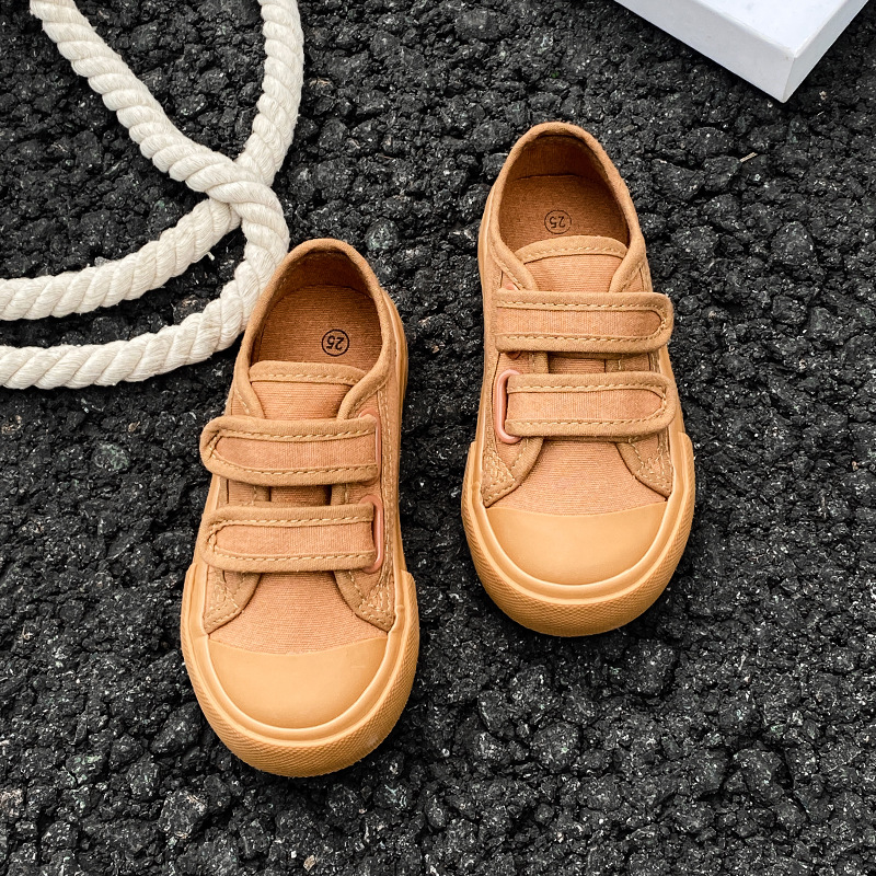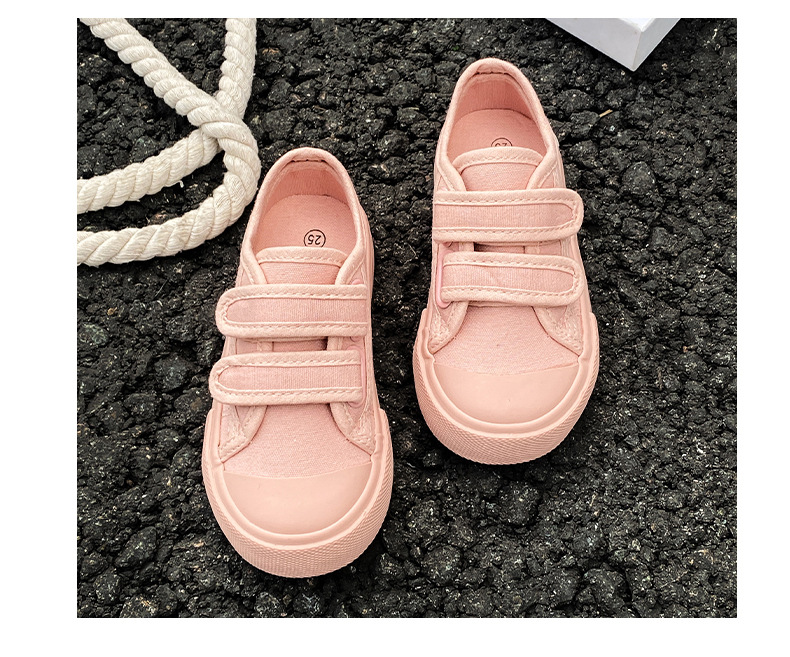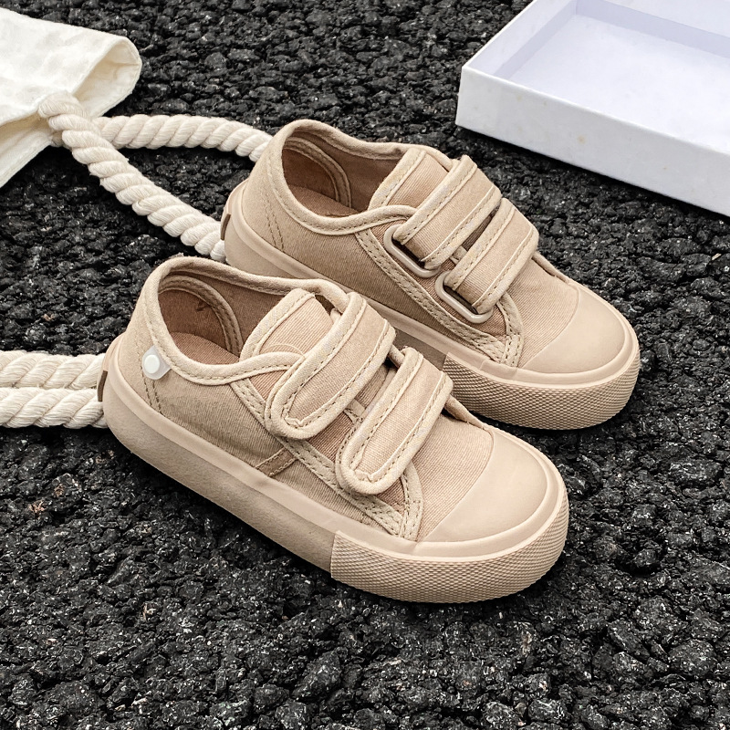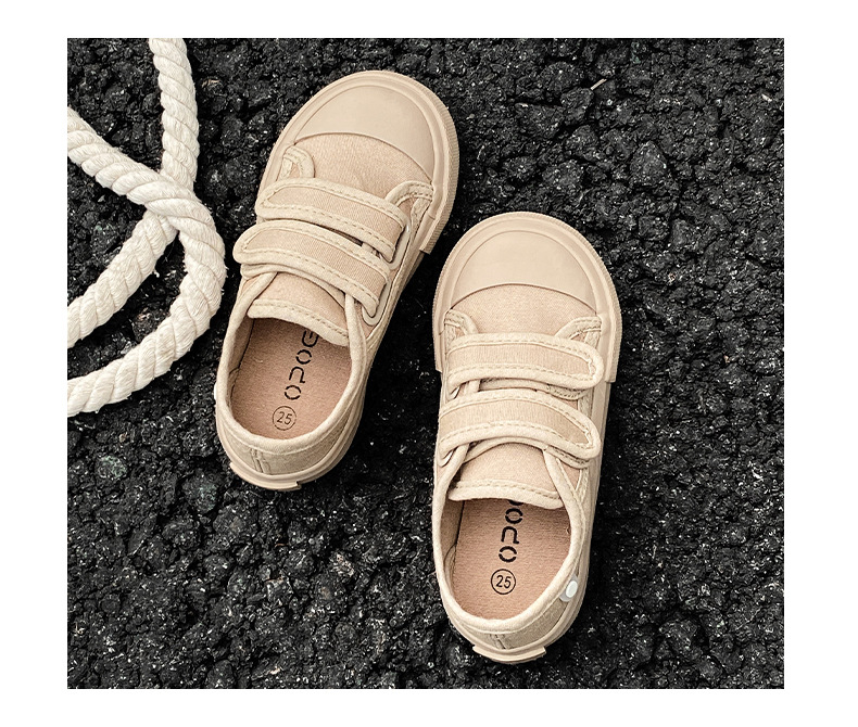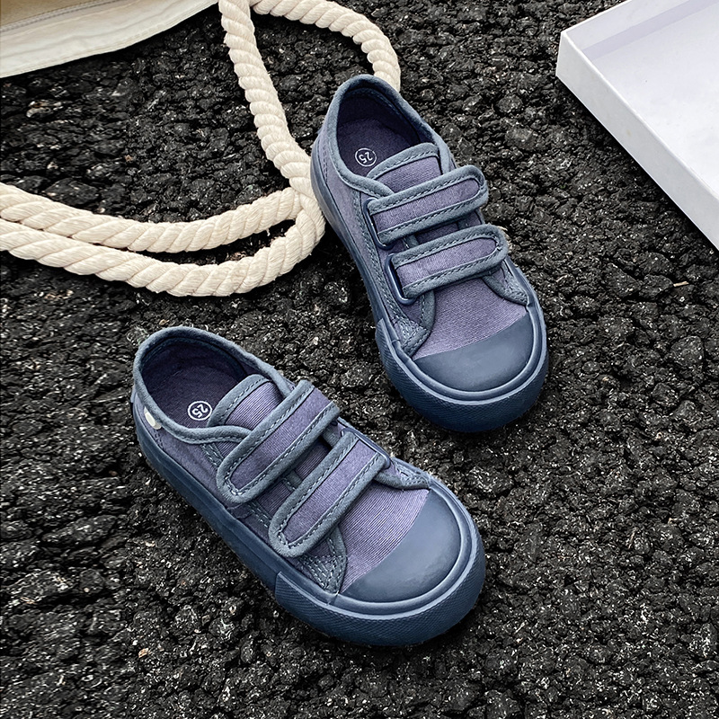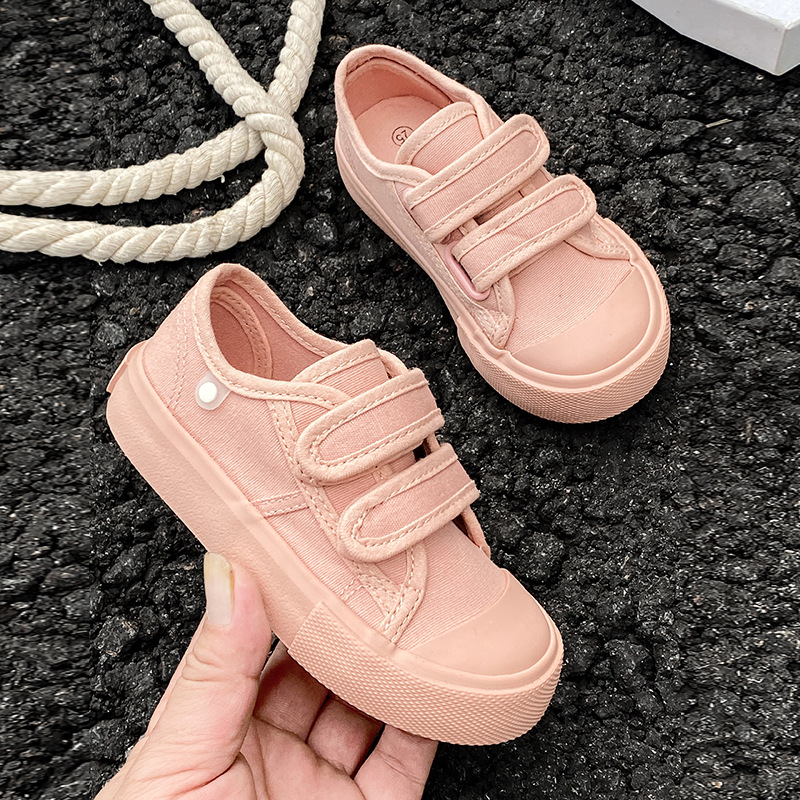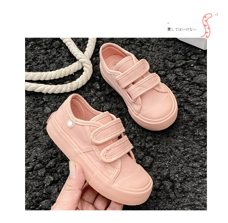 패션 한국 스타일 아동 신발 캔디 컬러 로우 탑 아동 캔버스 신발 벨크로 2025 봄, 가을 스타일 남성과 여성 아기 부드러운 밑창스토어 가기