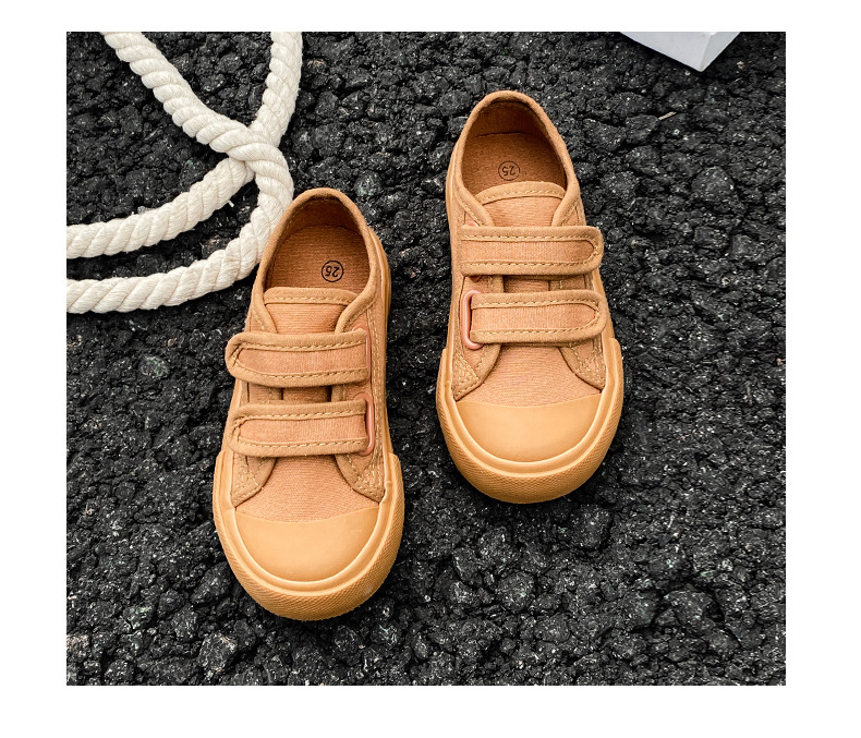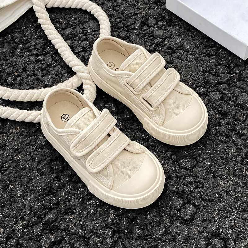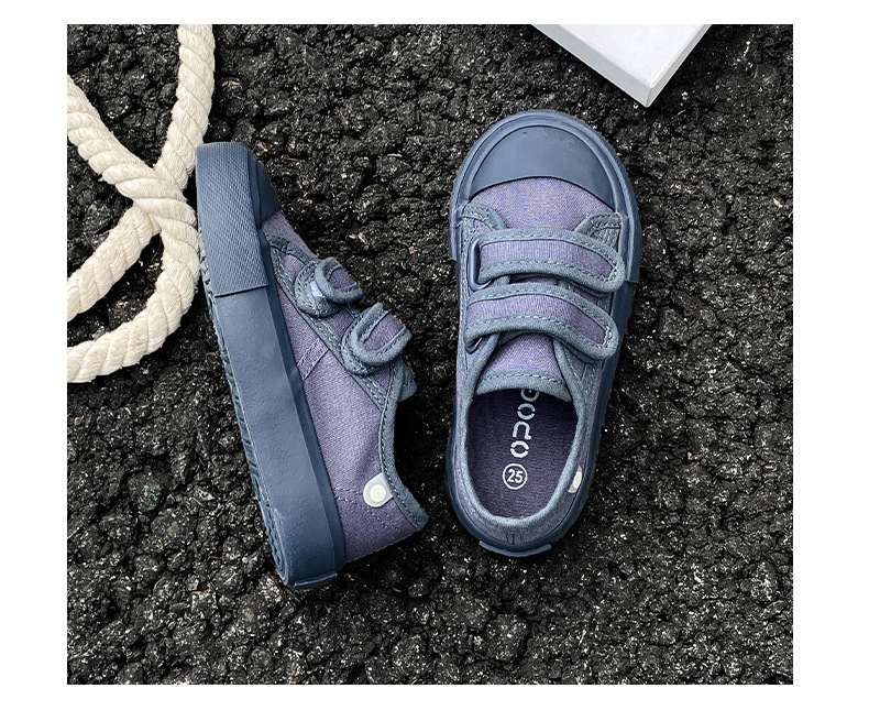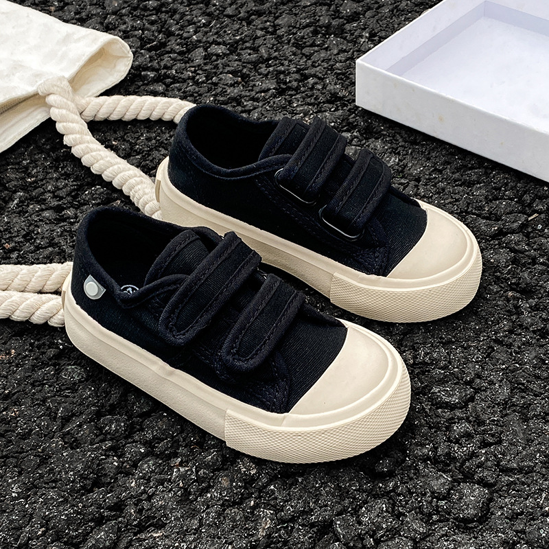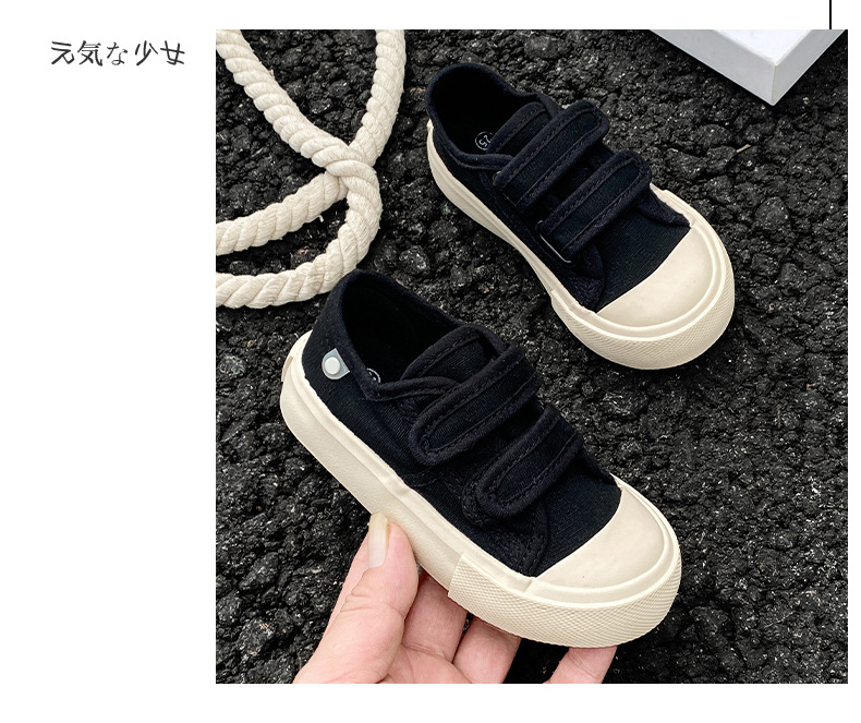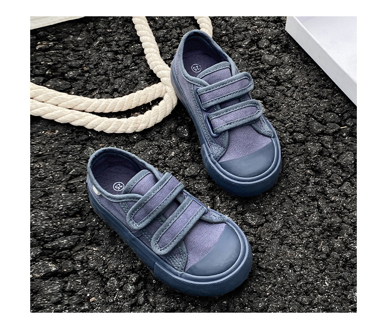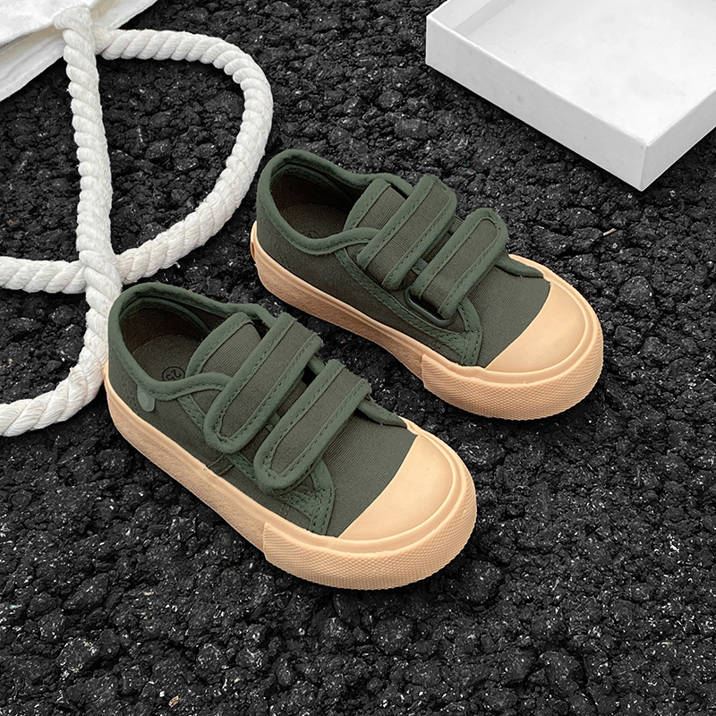 패션 한국 스타일 아동 신발 캔디 컬러 로우 탑 아동 캔버스 신발 벨크로 2025 봄, 가을 스타일 남성과 여성 아기 부드러운 밑창스토어 가기