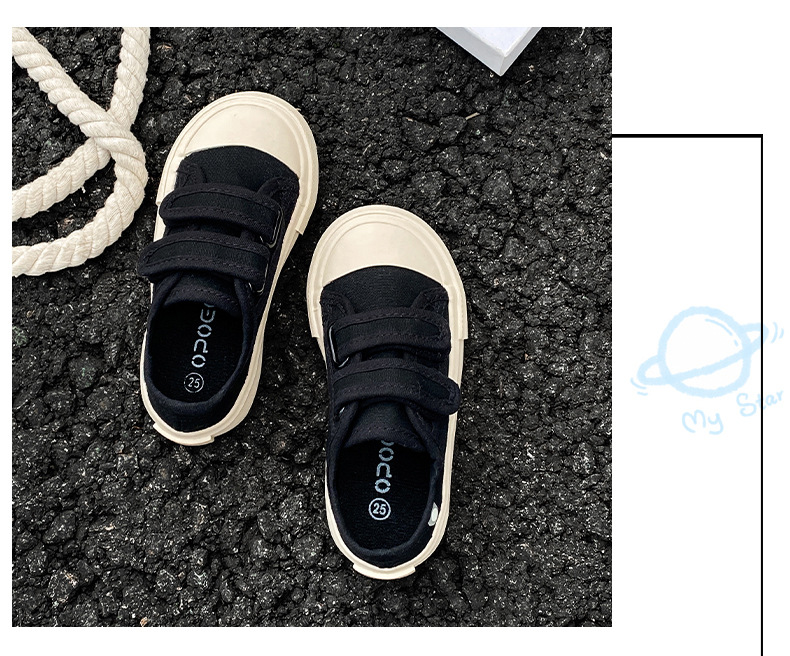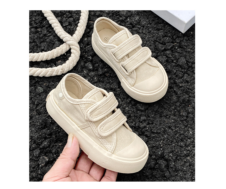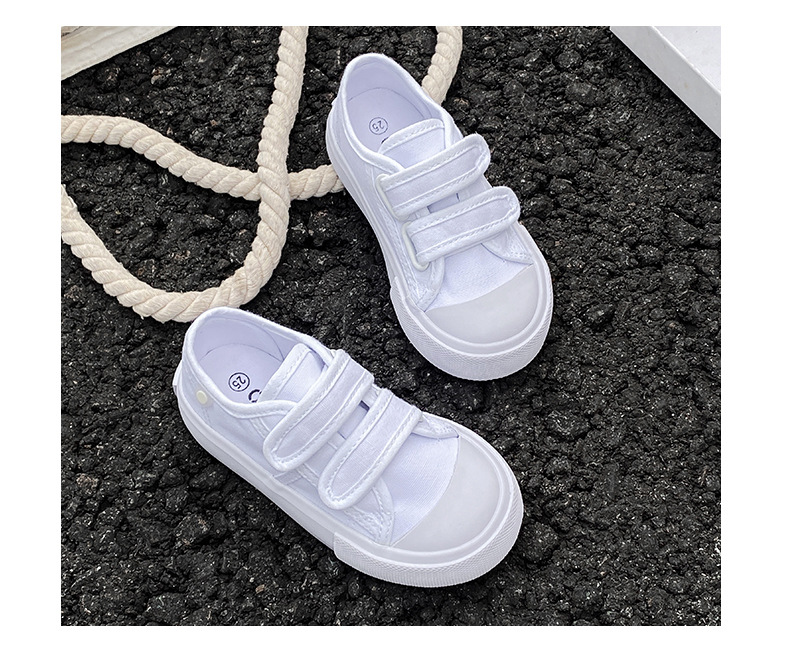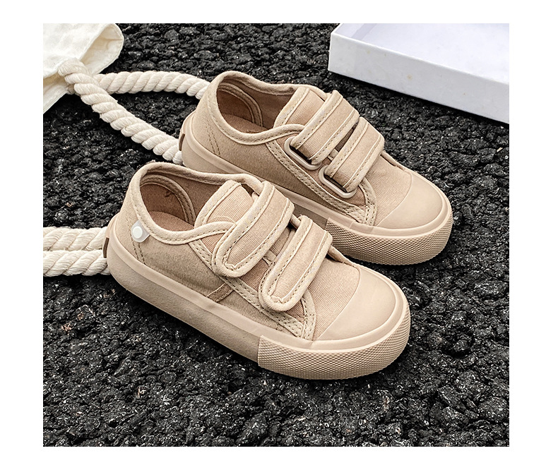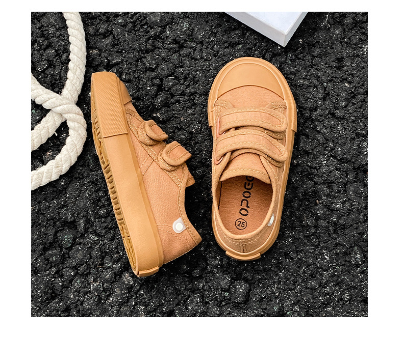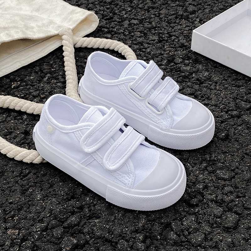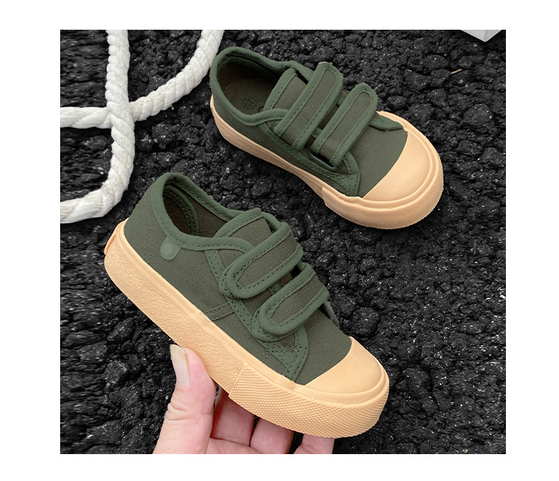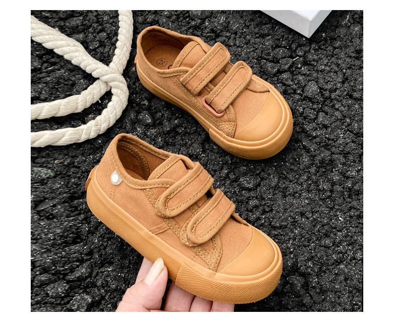 패션 한국 스타일 아동 신발 캔디 컬러 로우 탑 아동 캔버스 신발 벨크로 2025 봄, 가을 스타일 남성과 여성 아기 부드러운 밑창스토어 가기