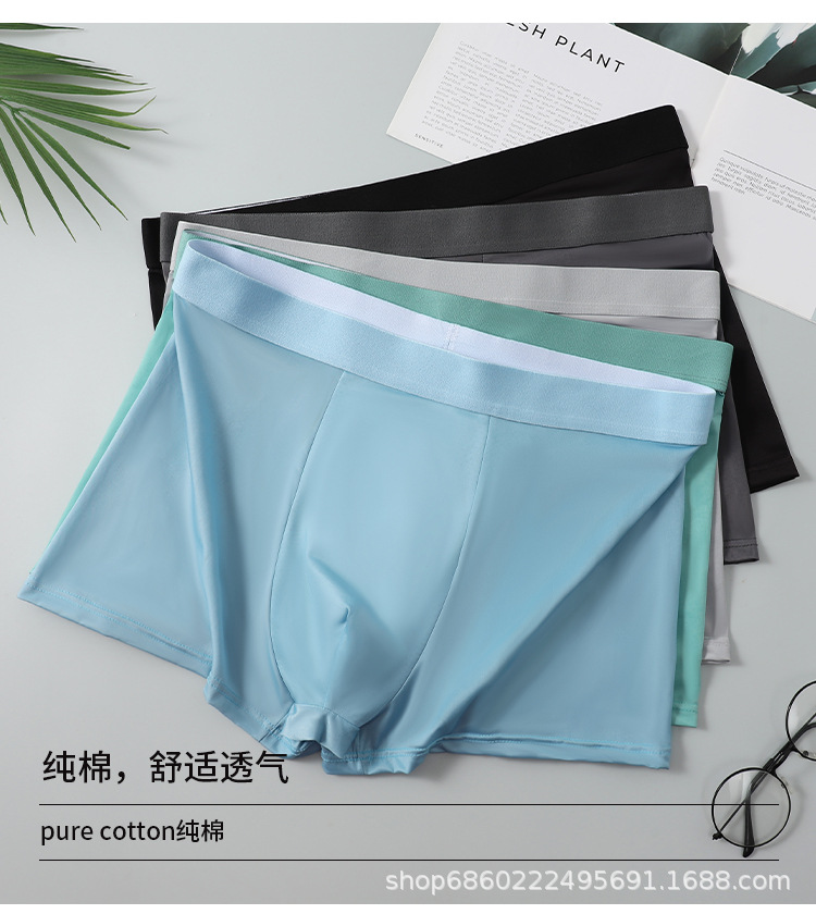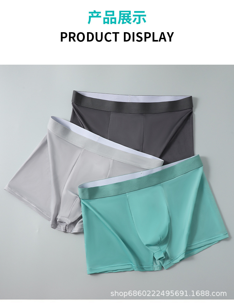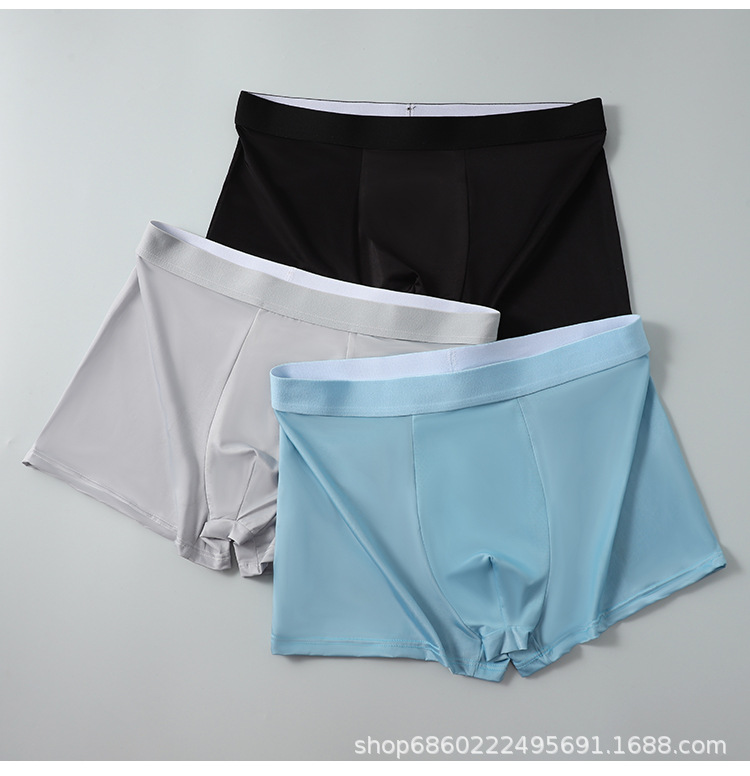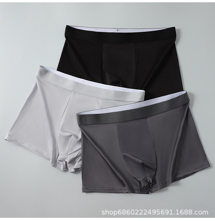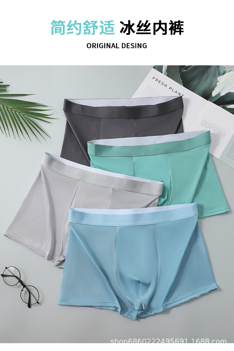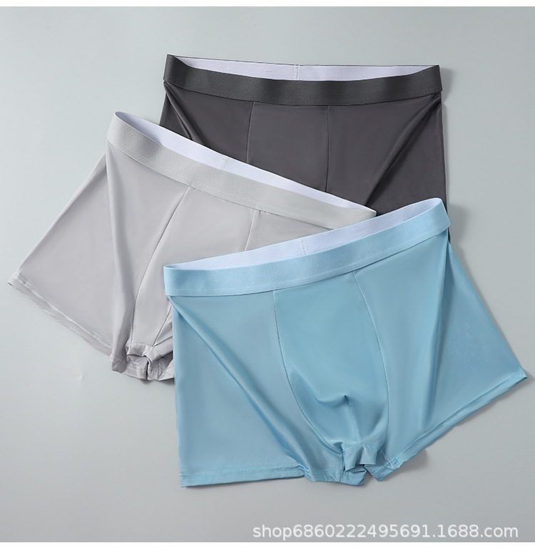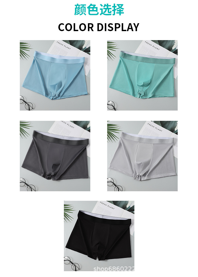 남성 속옷 남성용 아이스 실크 무봉제 여름 얇은 복서 팬티 통기성 소년 복서 스포츠 반바지 남성용