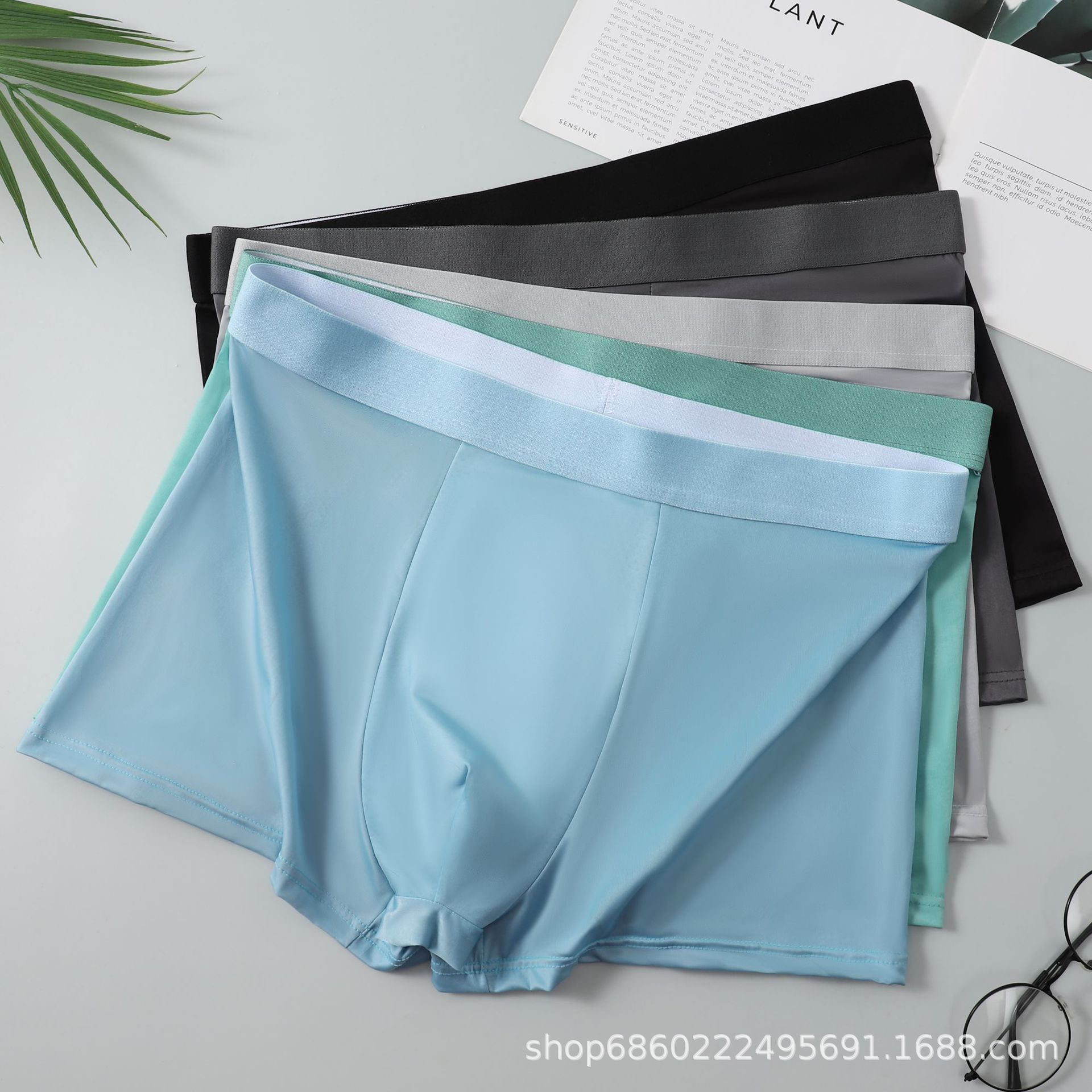 남성 속옷 남성용 아이스 실크 무봉제 여름 얇은 복서 팬티 통기성 소년 복서 스포츠 반바지 남성용스토어 가기
