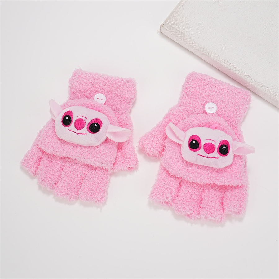 장갑 가을과 겨울 딸기 색 곰 만화 장갑 산호 양털 따뜻한 야외 다섯 손가락 귀여운 어린이 장갑스토어 가기