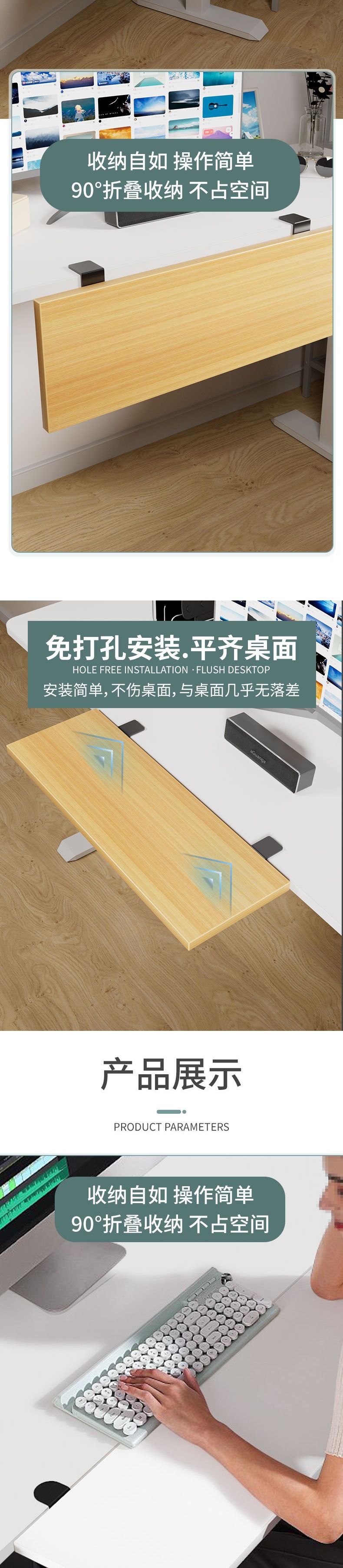 데스크탑 스토리지 랙 컴퓨터 테이블 확장 보드 펀치없는 확장 테이블 확장 보드 브래킷 접이식 보드
