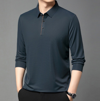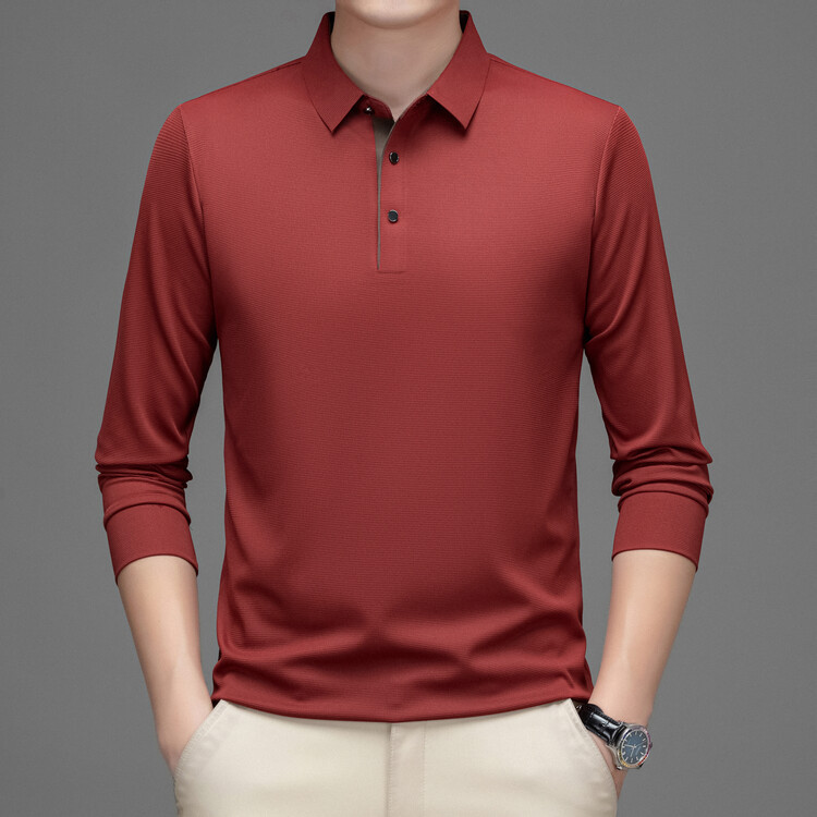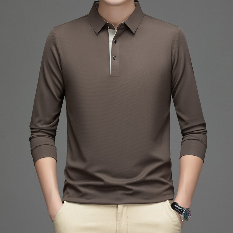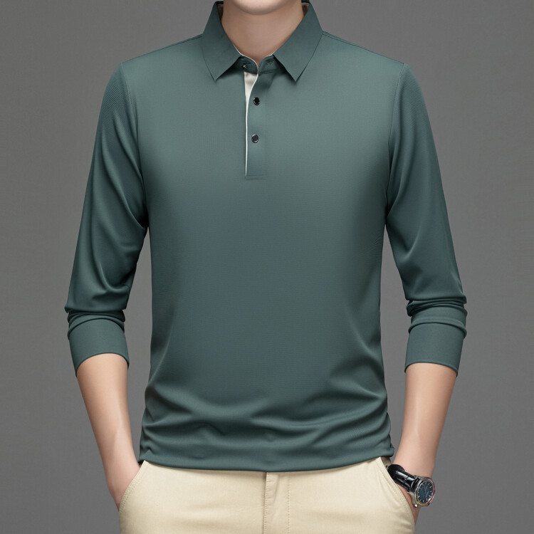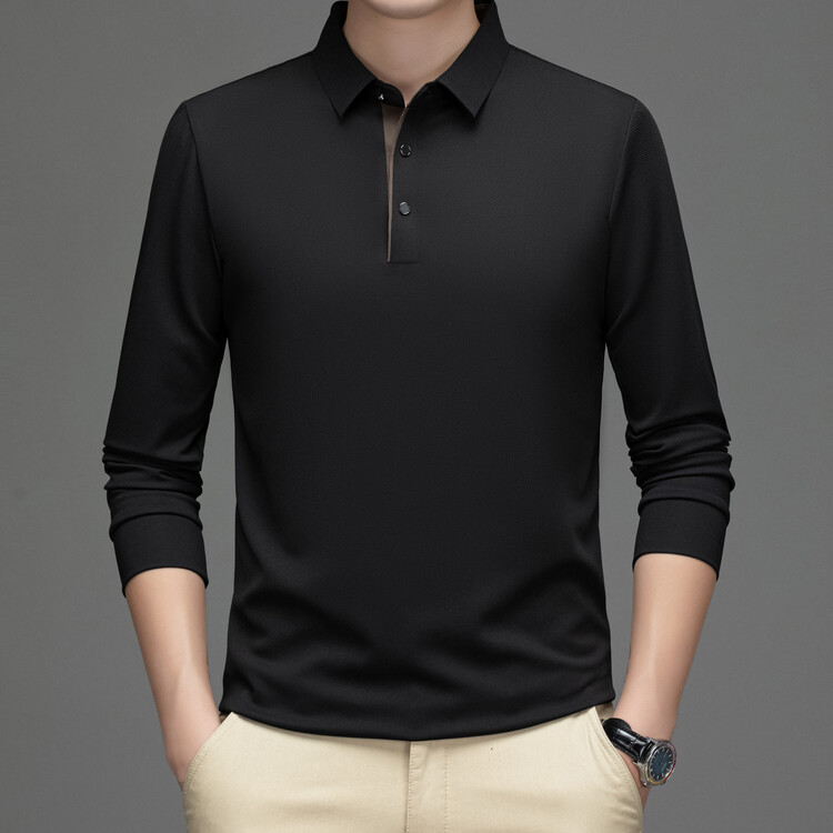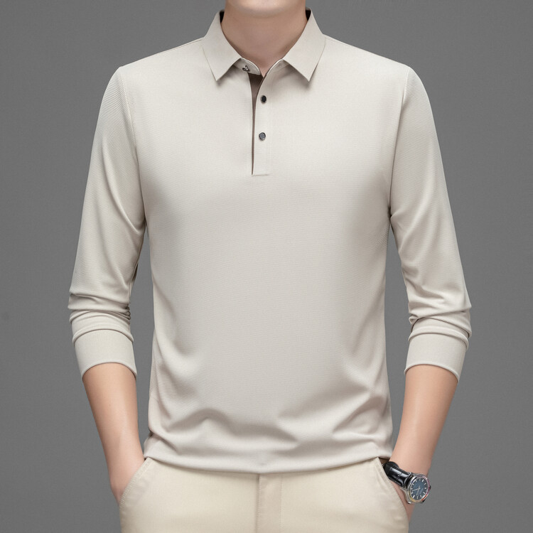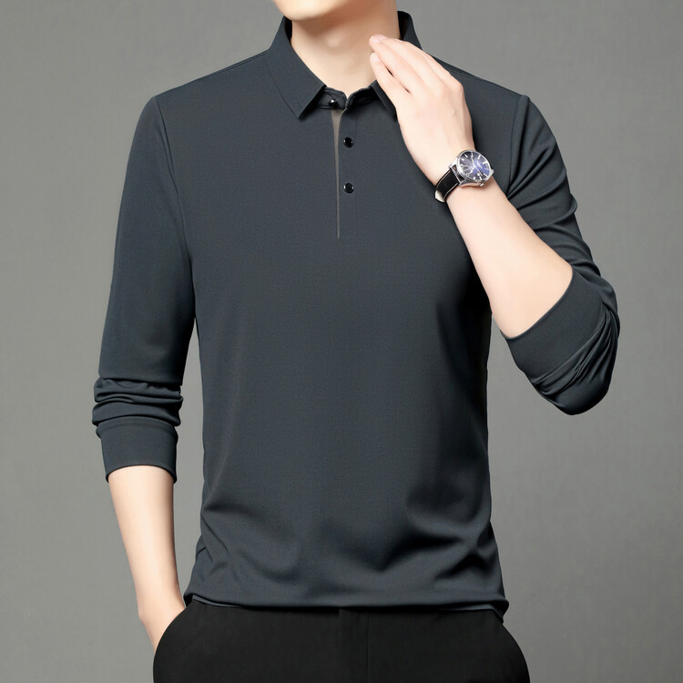 남성 티셔츠 봄과 가을 새로운 원활한 긴 소매 중년 남성 옷깃 POLO 캐주얼 남성 비즈니스 탑
