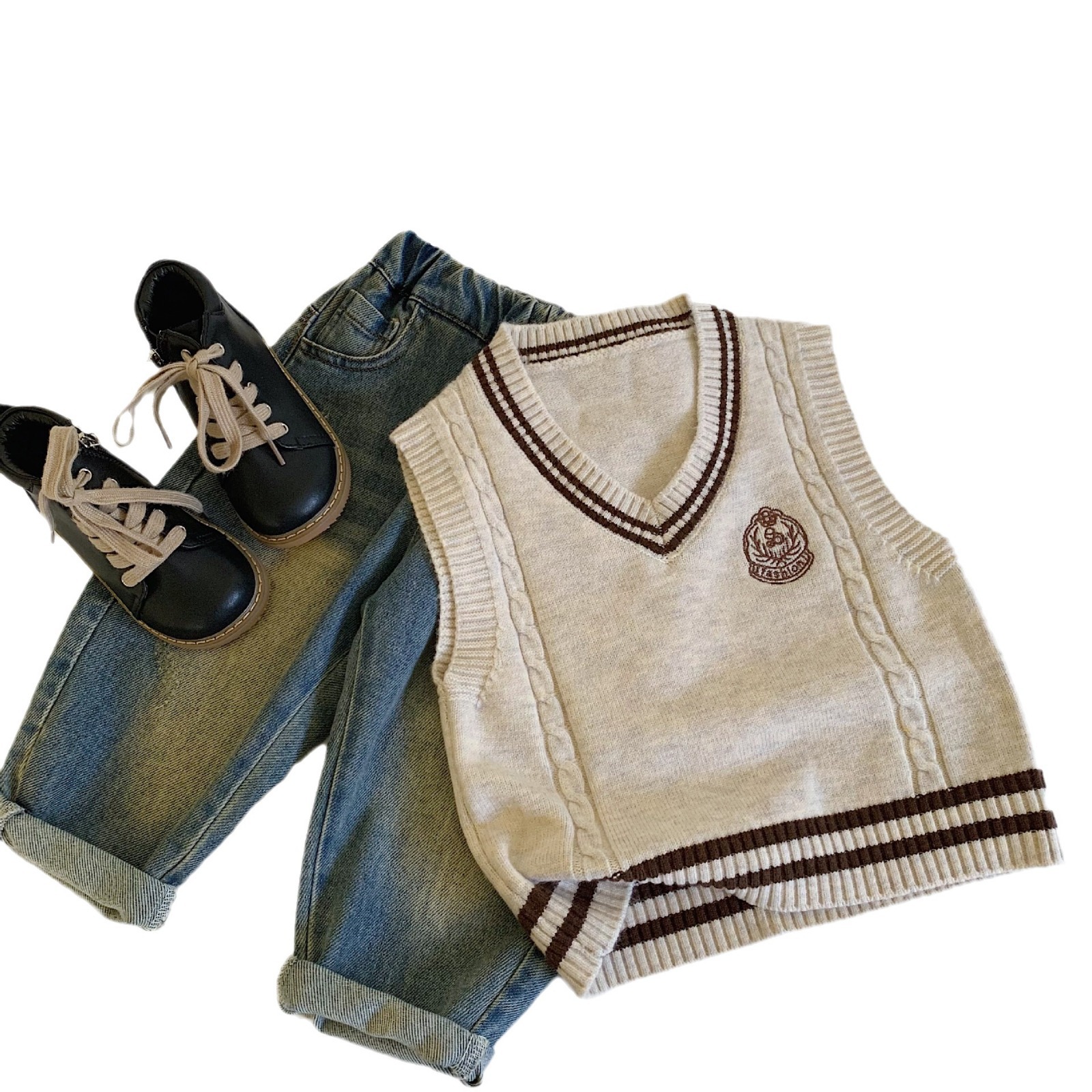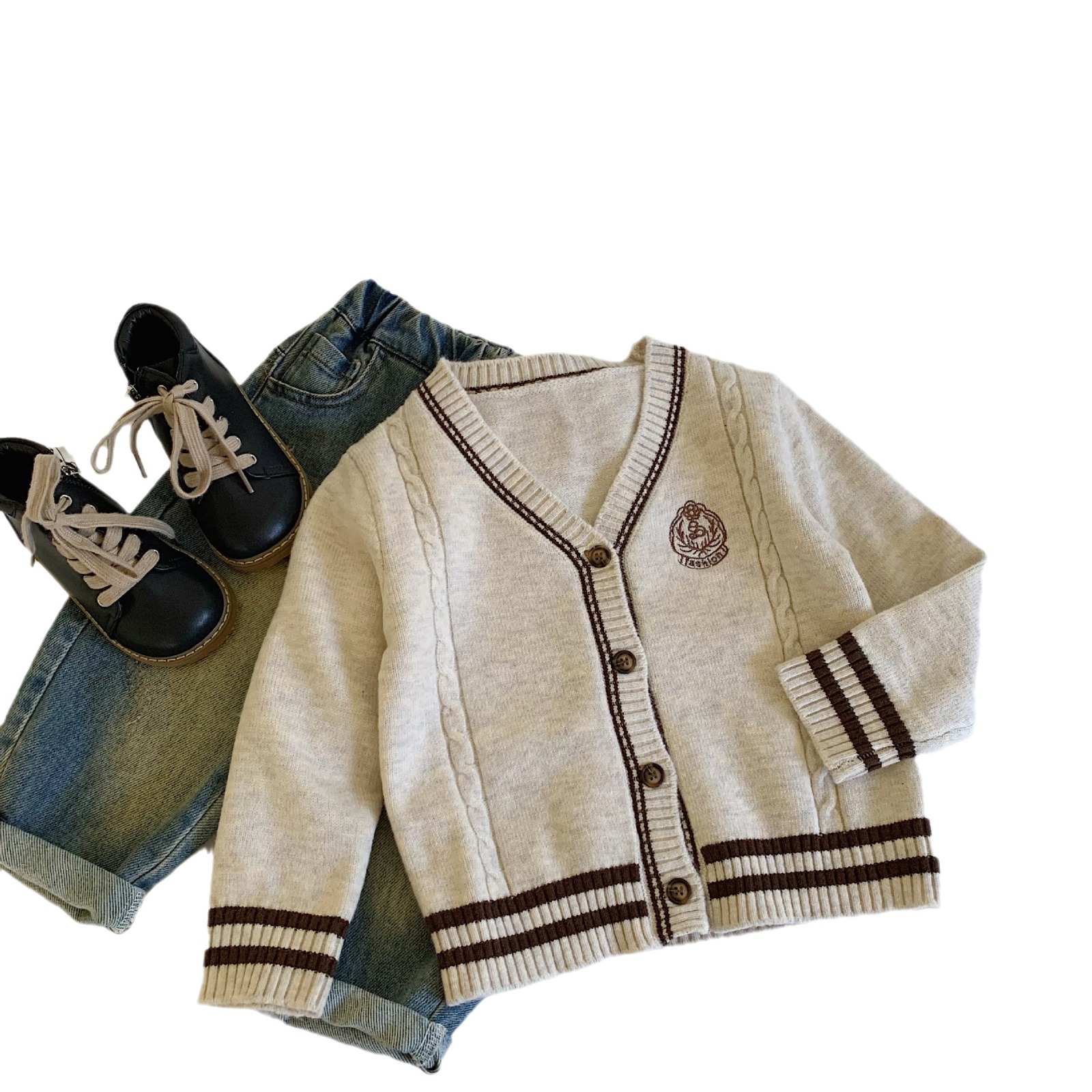 어린이 스웨터 Bangcheng 2025 가을 새 소년과 소녀 스트라이프 조끼 아동 의류 카디건 코트 다목적 MY0032스토어 가기