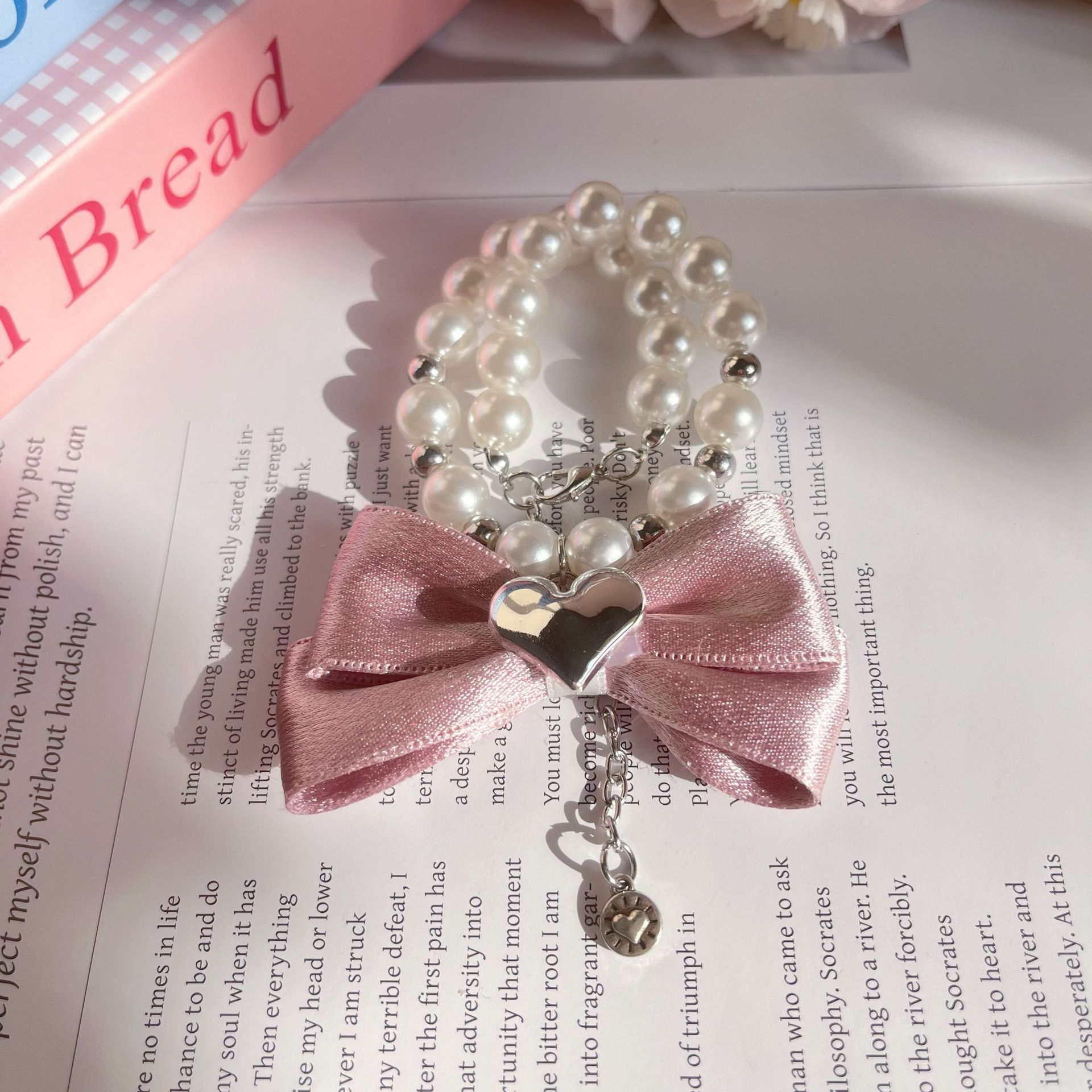 INS 애완 동물 진주 목걸이 사랑 한국 분말 활 공주 스타일 고양이 개 목 애완 동물 액세서리스토어 가기
