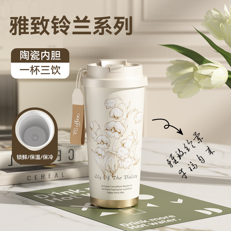 316 스테인레스 스틸 커피 컵 세라믹 라이너 보온병 컵 홈 오피스 빨대 편리한 컵 자동차 더블 마시는 컵