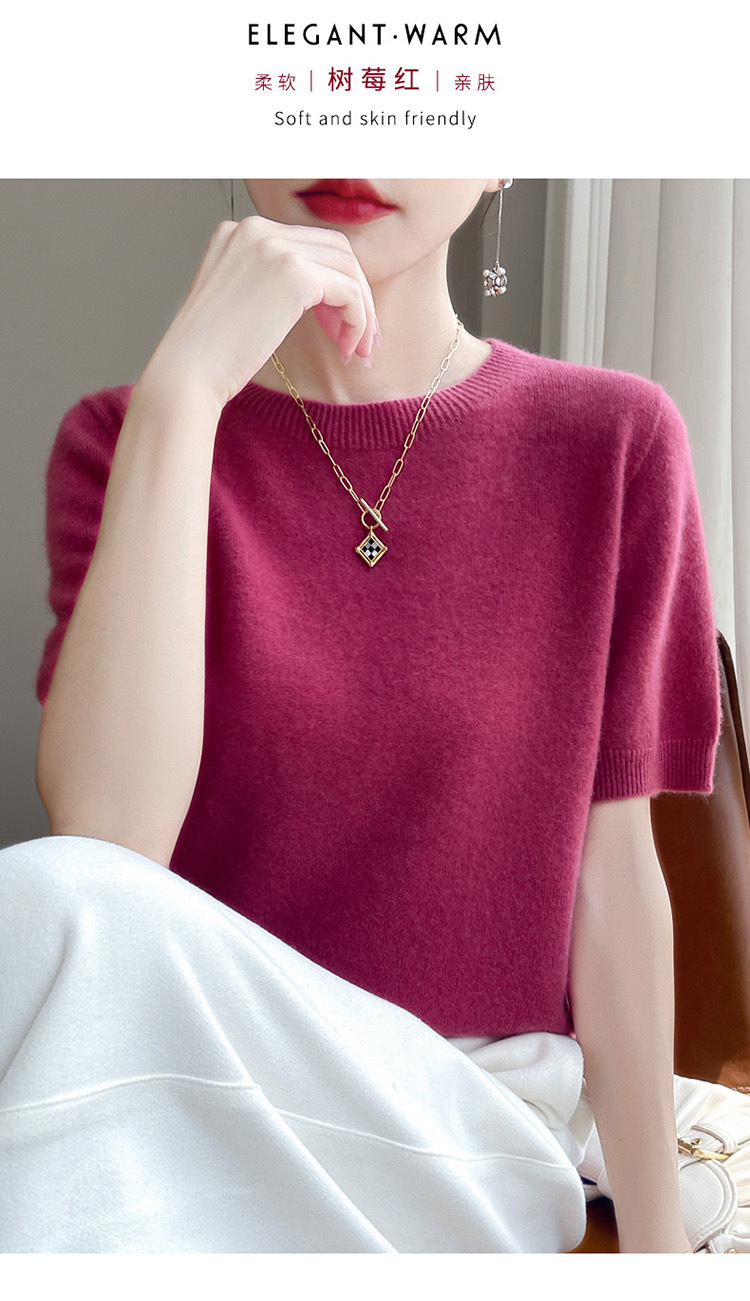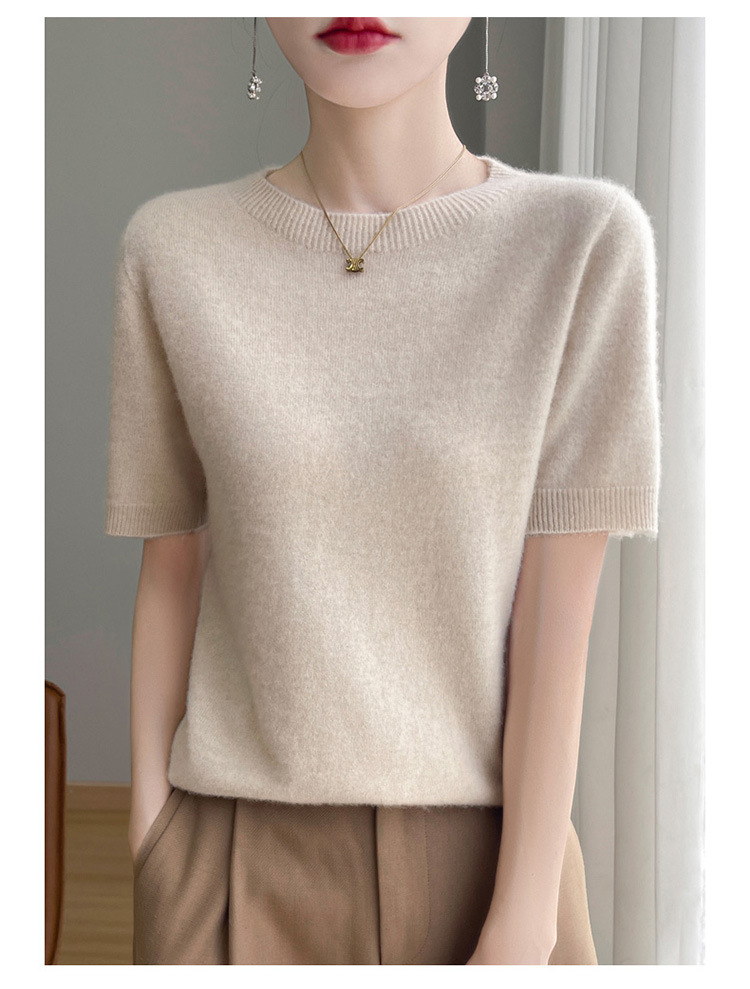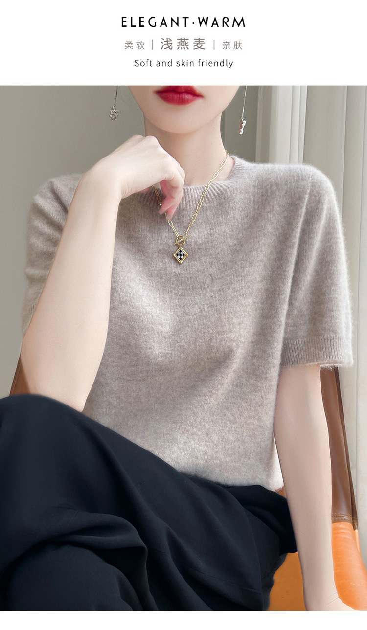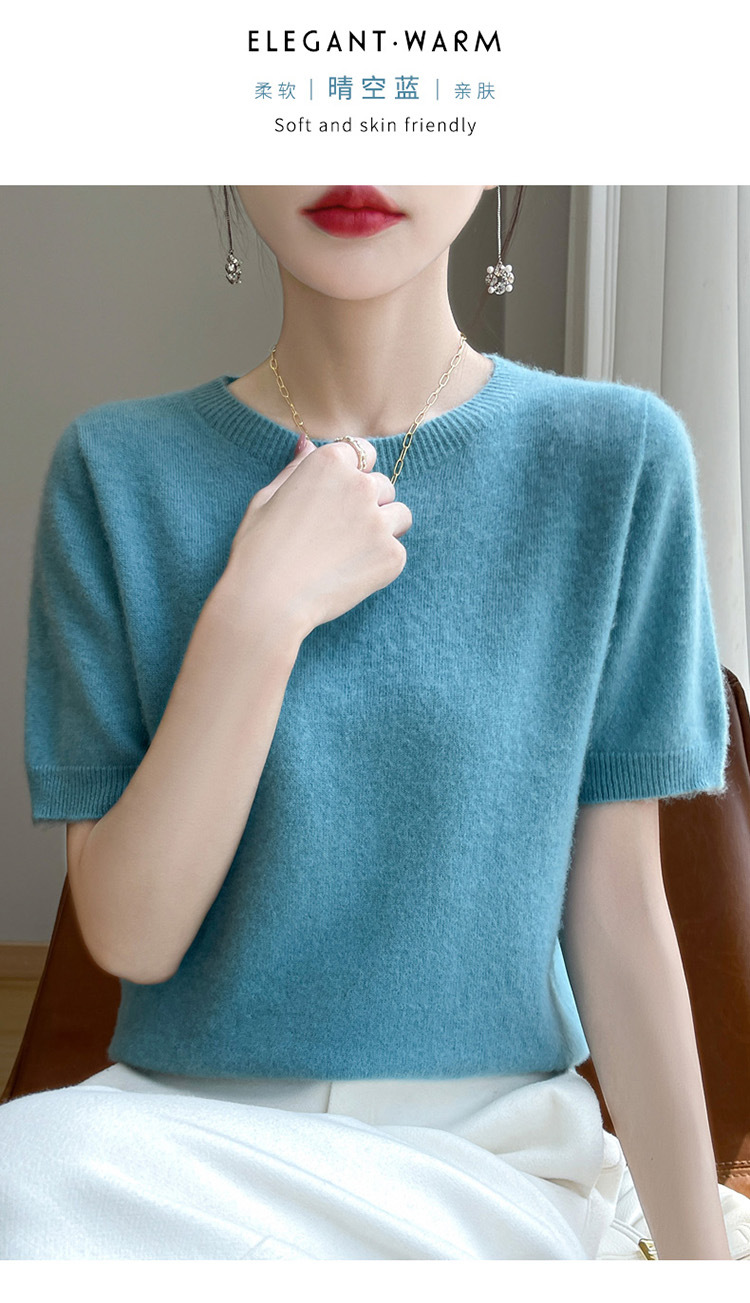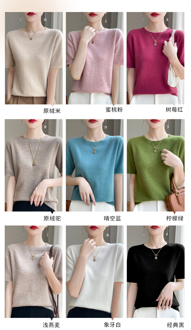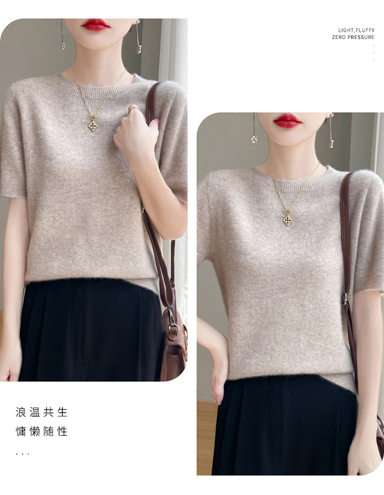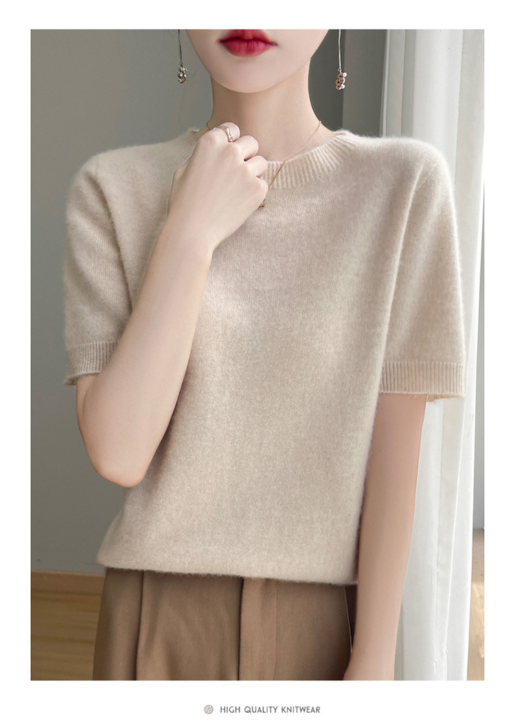 양모 혼방 2025 가을 겨울 신상 여성 원피스 라운드넥 풀오버 숏 니트 티셔츠 반팔 이너웨어스토어 가기