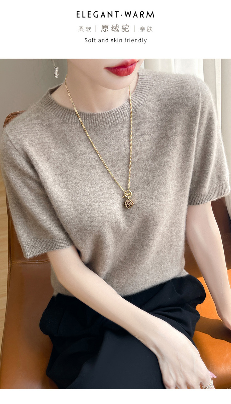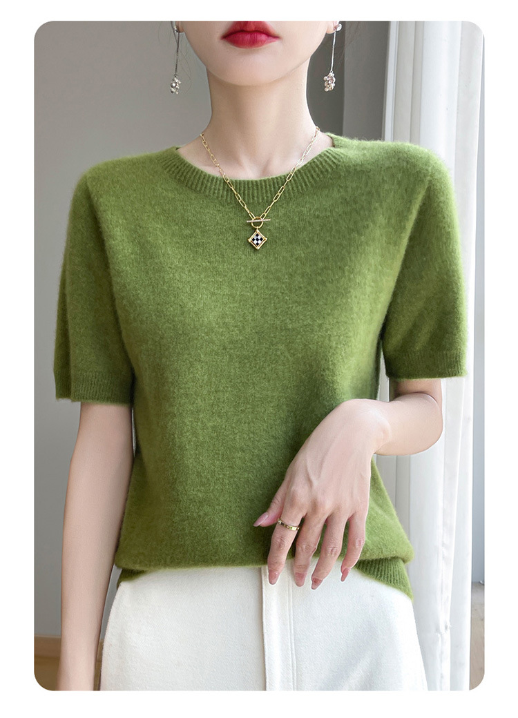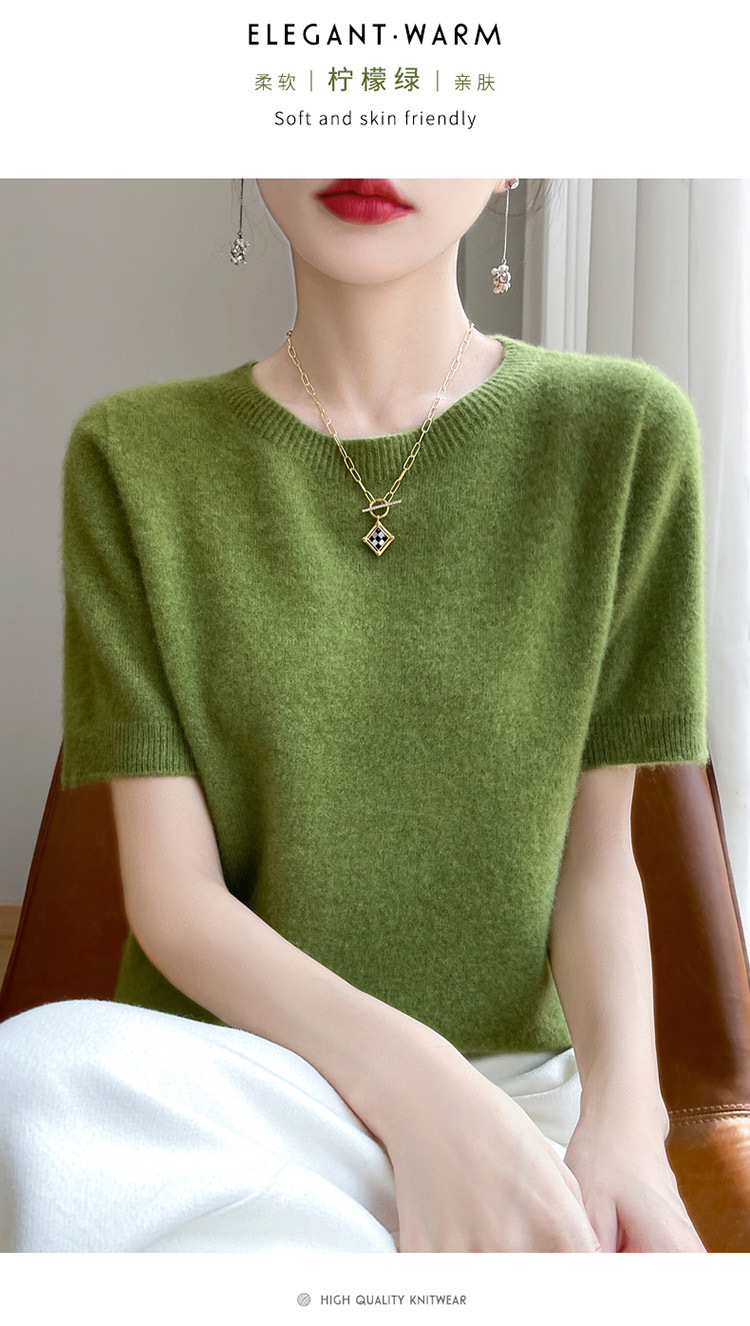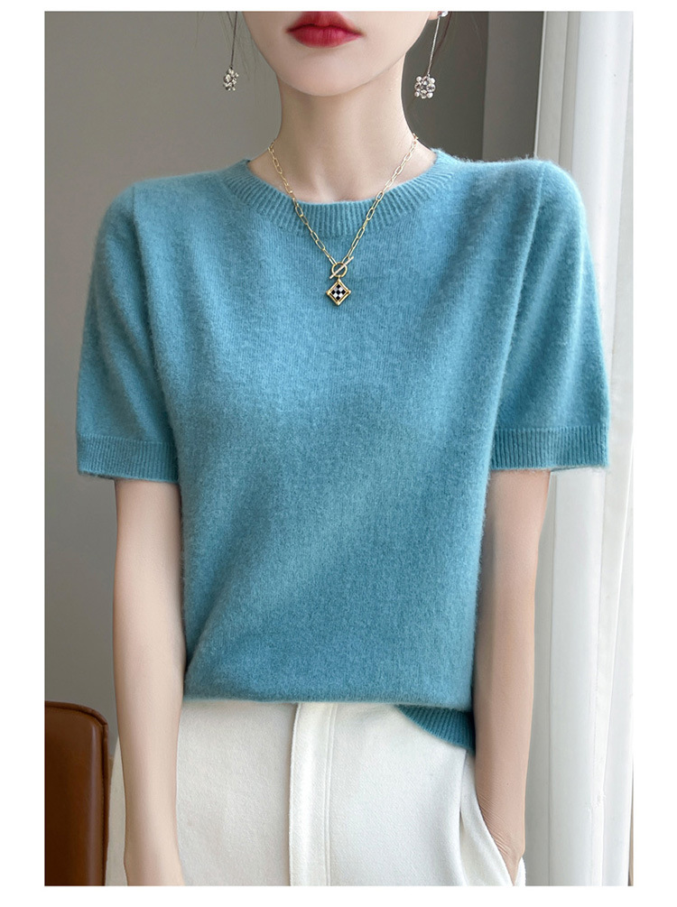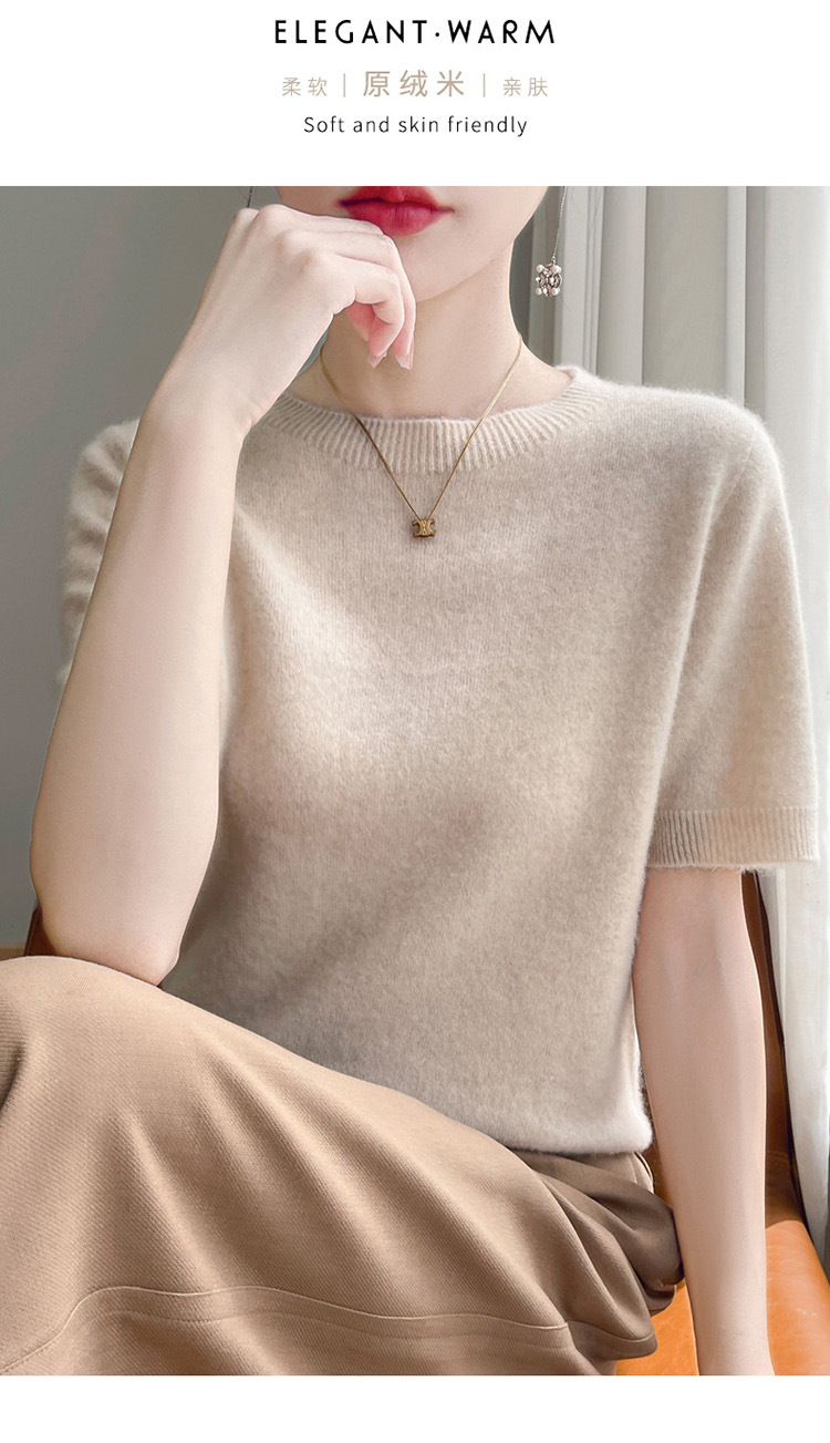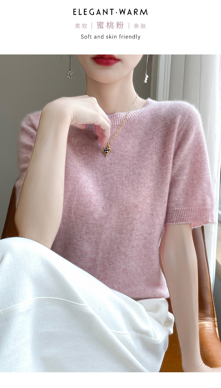 양모 혼방 2025 가을 겨울 신상 여성 원피스 라운드넥 풀오버 숏 니트 티셔츠 반팔 이너웨어스토어 가기