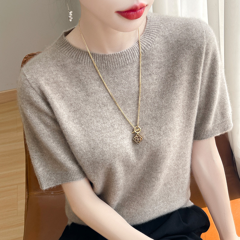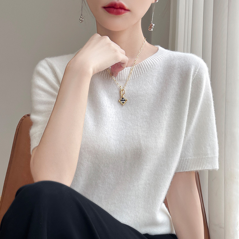 양모 혼방 2025 가을 겨울 신상 여성 원피스 라운드넥 풀오버 숏 니트 티셔츠 반팔 이너웨어