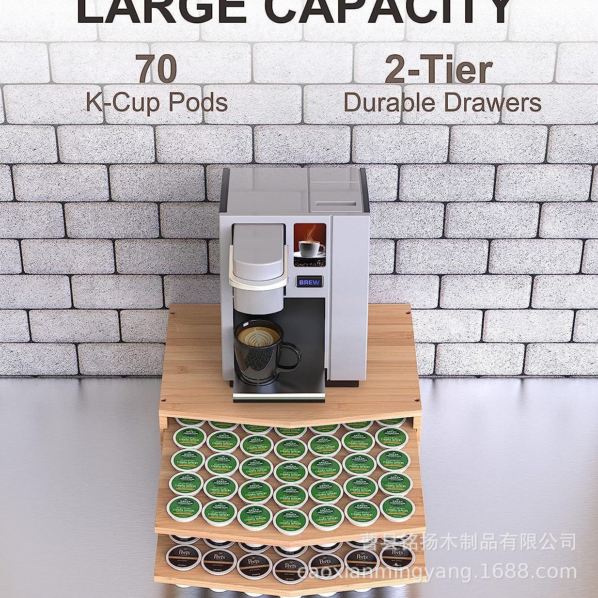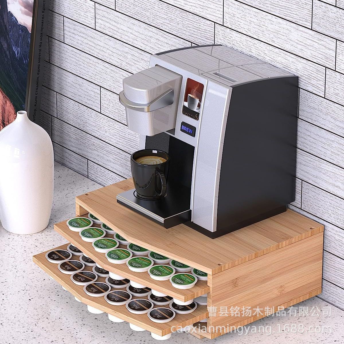 커피 머신 나무 액세서리 디스플레이 스탠드 더블 레이어 드로잉 커피 캡슐 저장 상자 단단한 나무 커피 머신 베이스스토어 가기