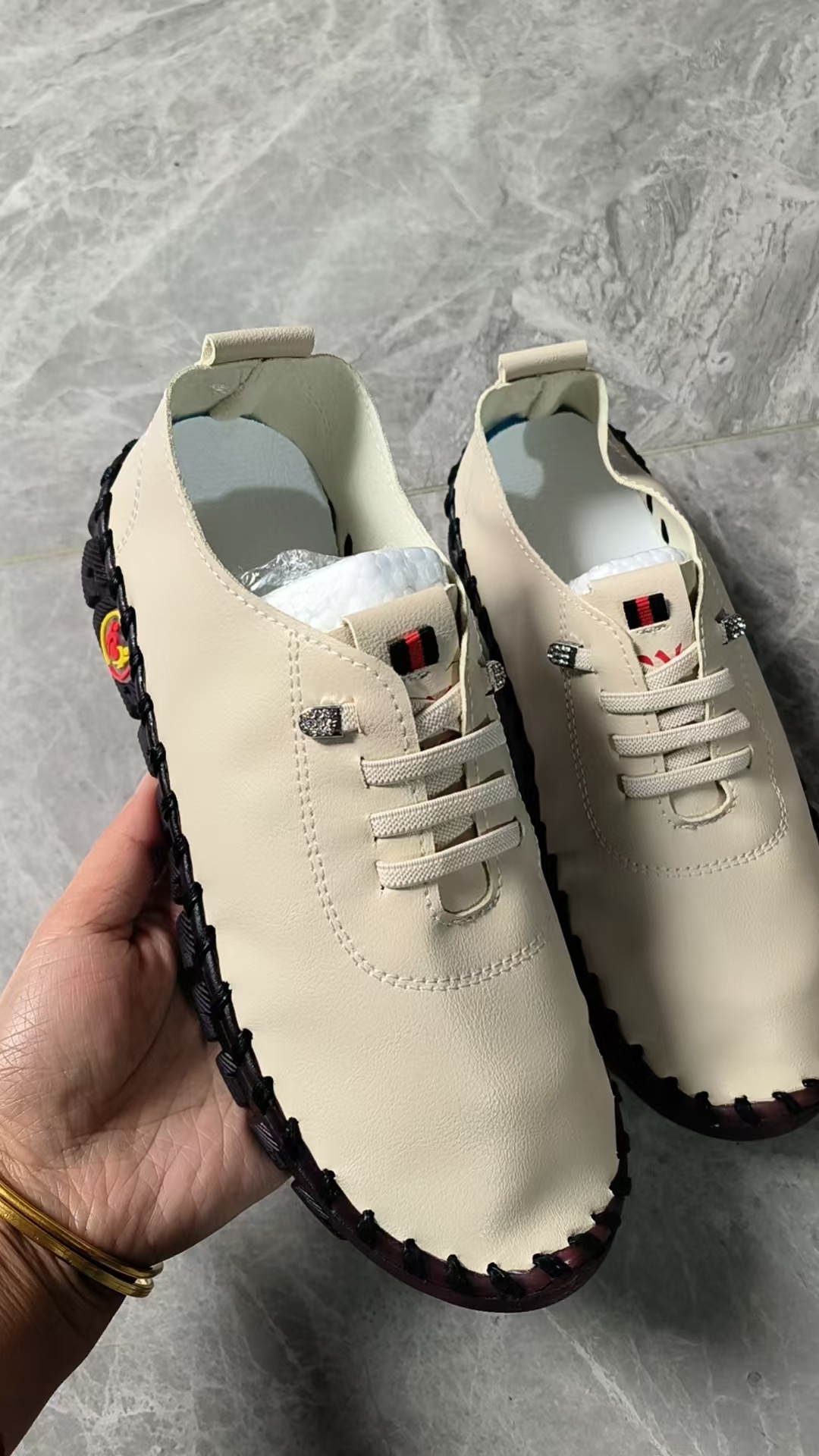 26 가을 신상 캐주얼 여성화 소가죽 부드러운 밑창 수제 바느질 중년 및 노년 여성 신발 도매스토어 가기